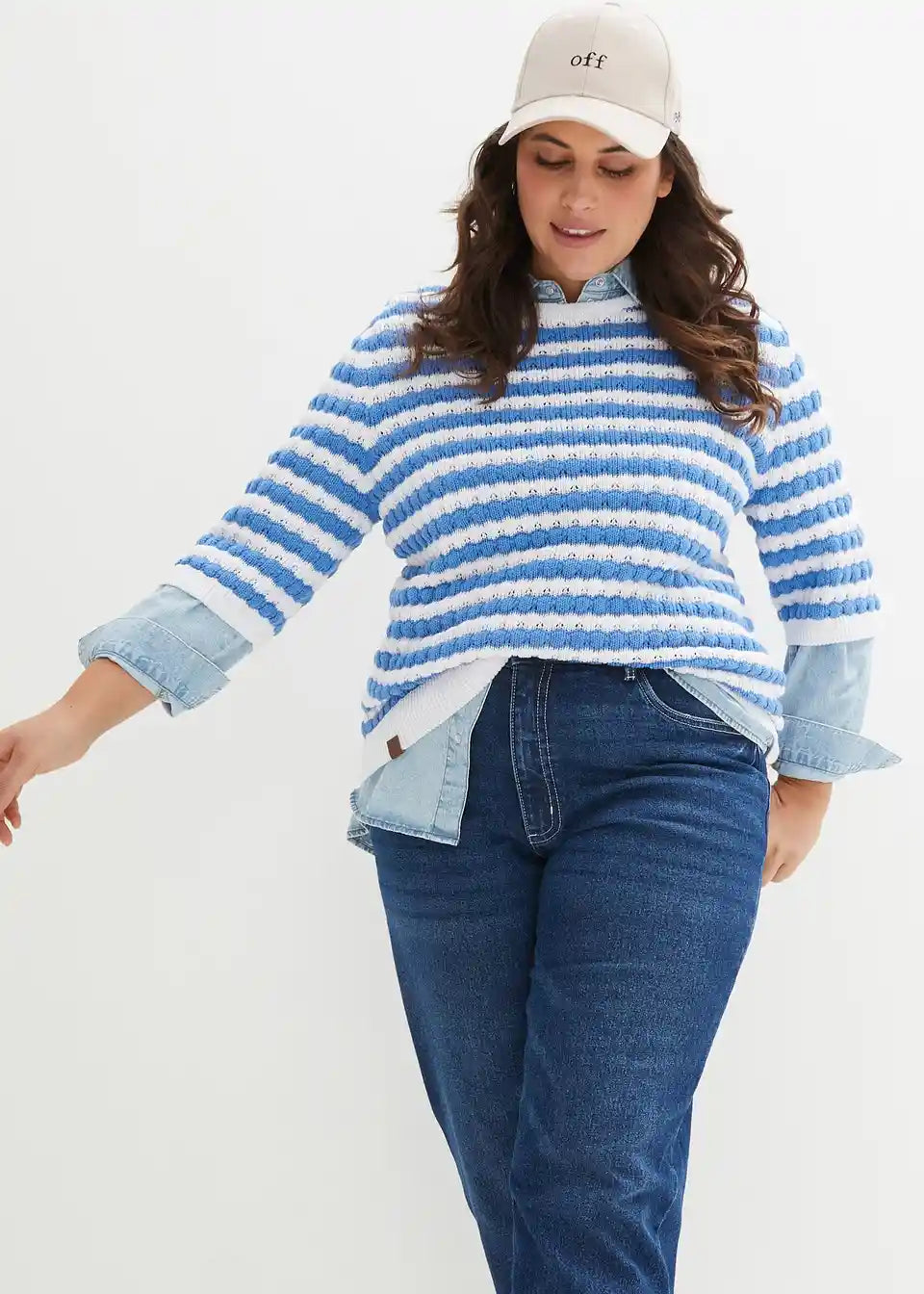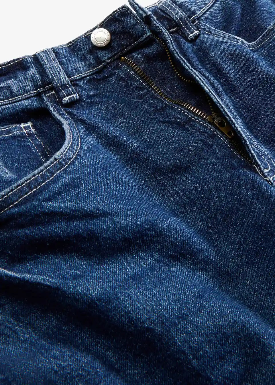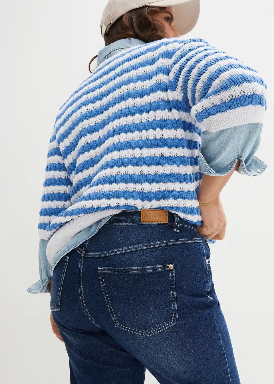 Mom Jeans mit hohem Bund aus einem festen Baumwolldenim, der sich zunächst etwas steif anfühlt und durch häufiges Tragen weicher und lockerer wird.