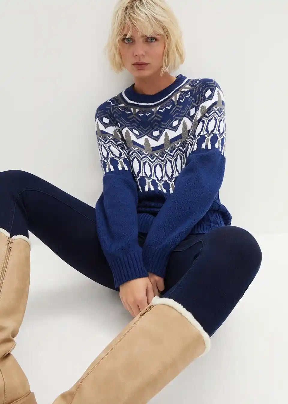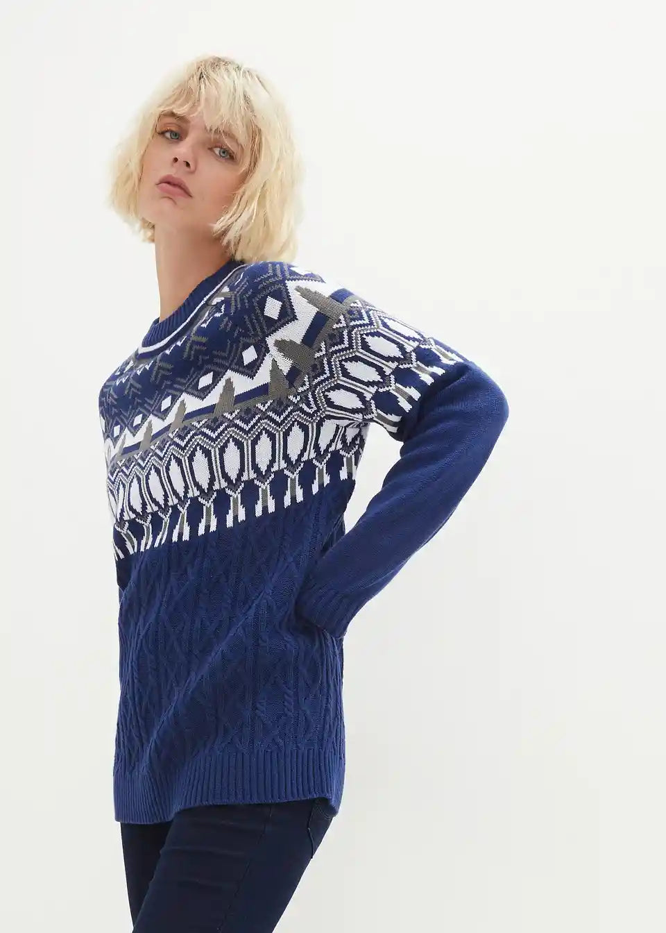 Lockerer Pullover mit Norweger Muster