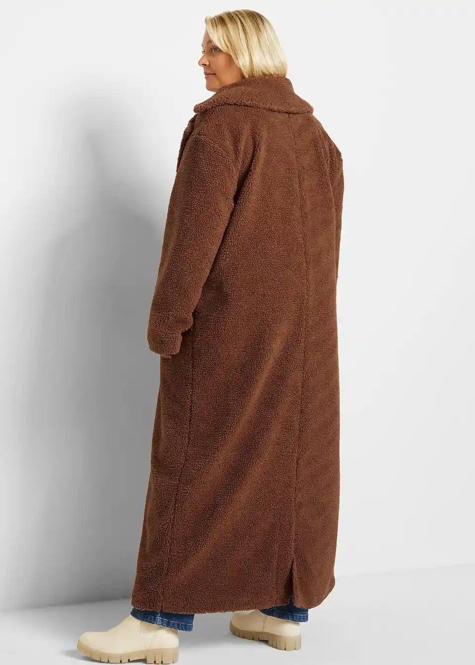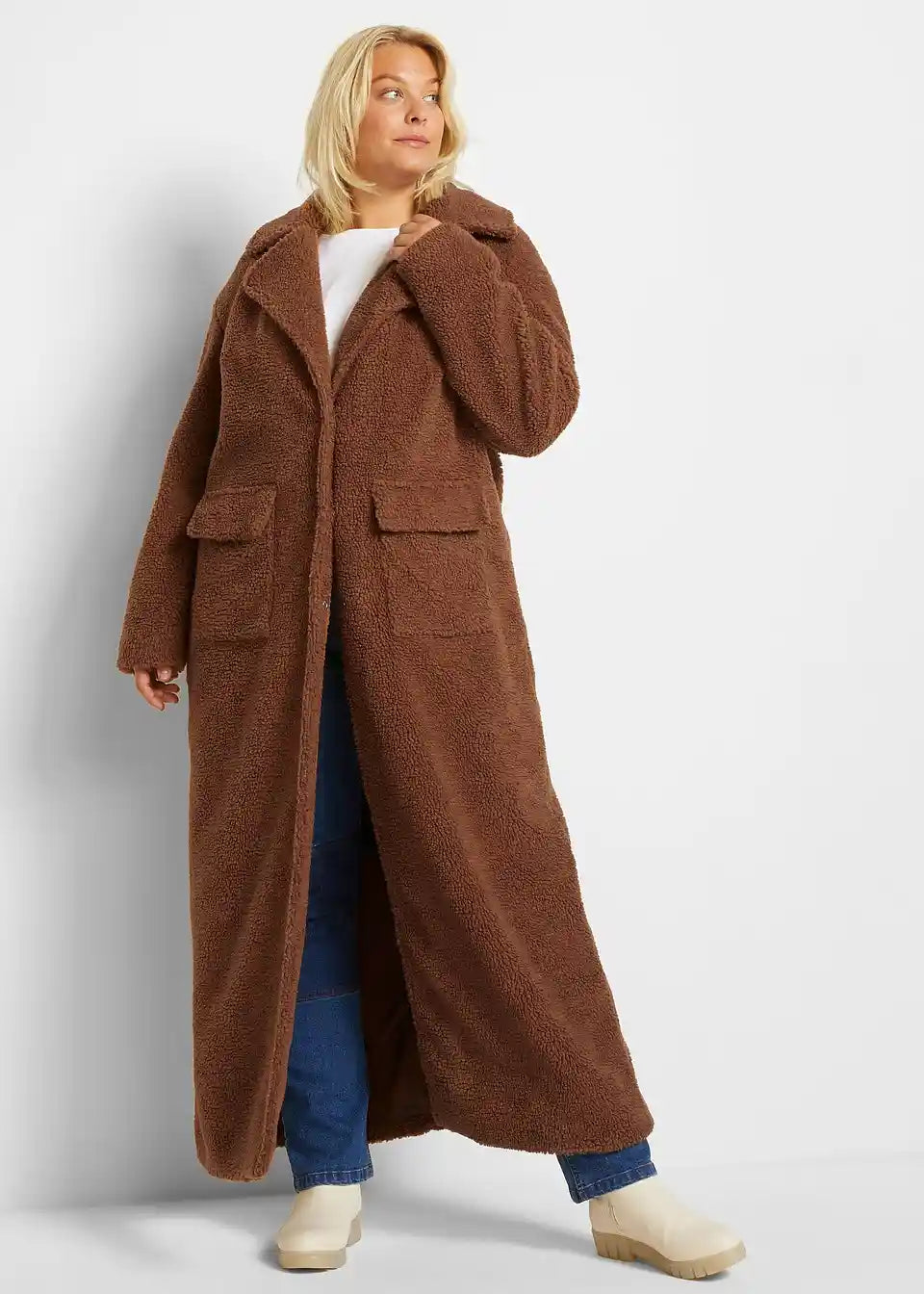 Warmer Teddy-Mantel mit Taschen und hohem Kragen