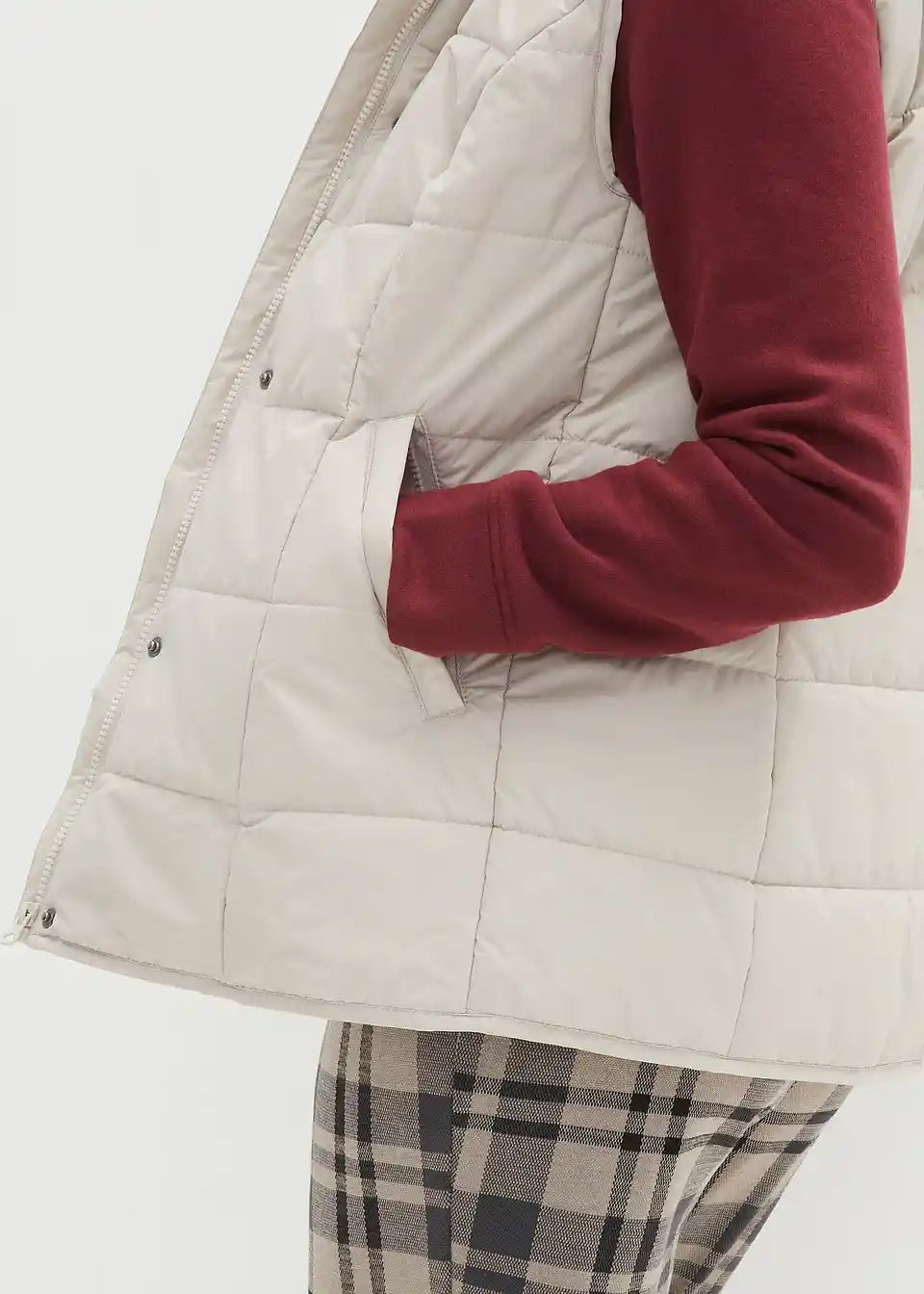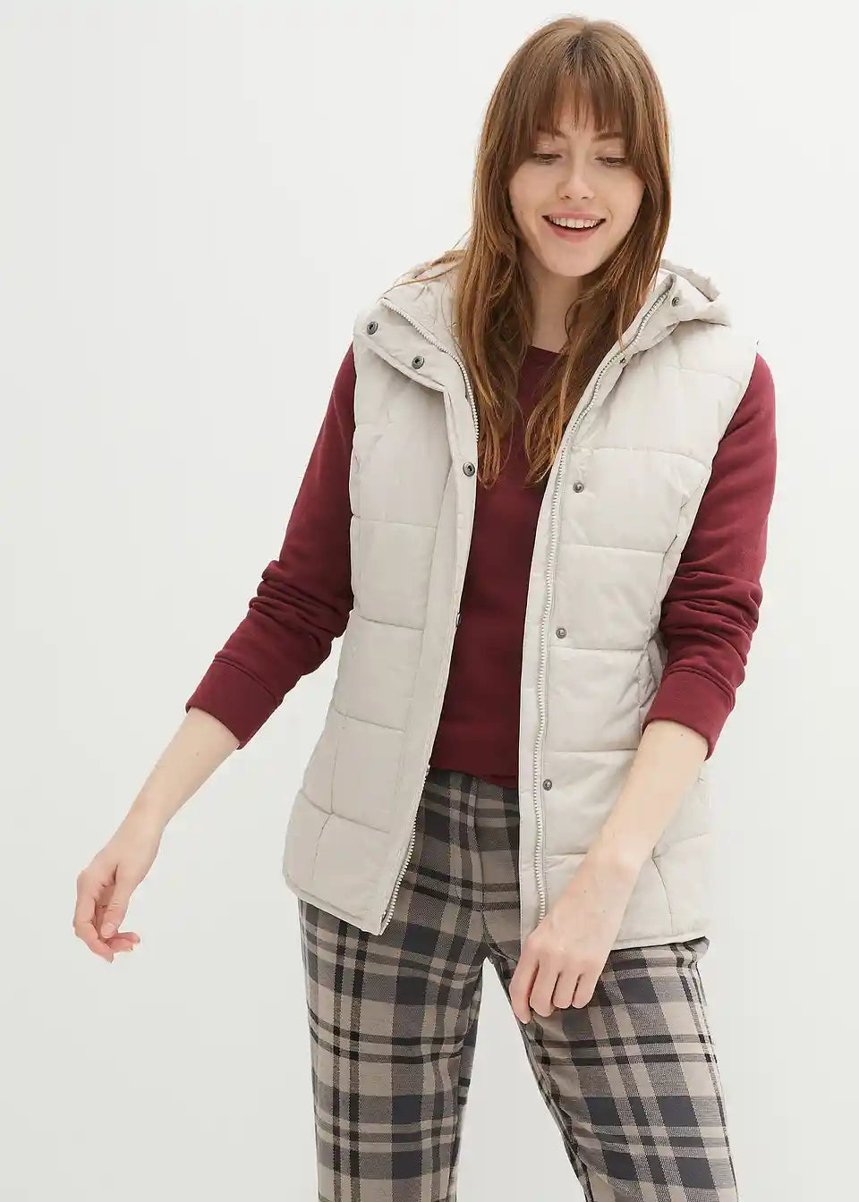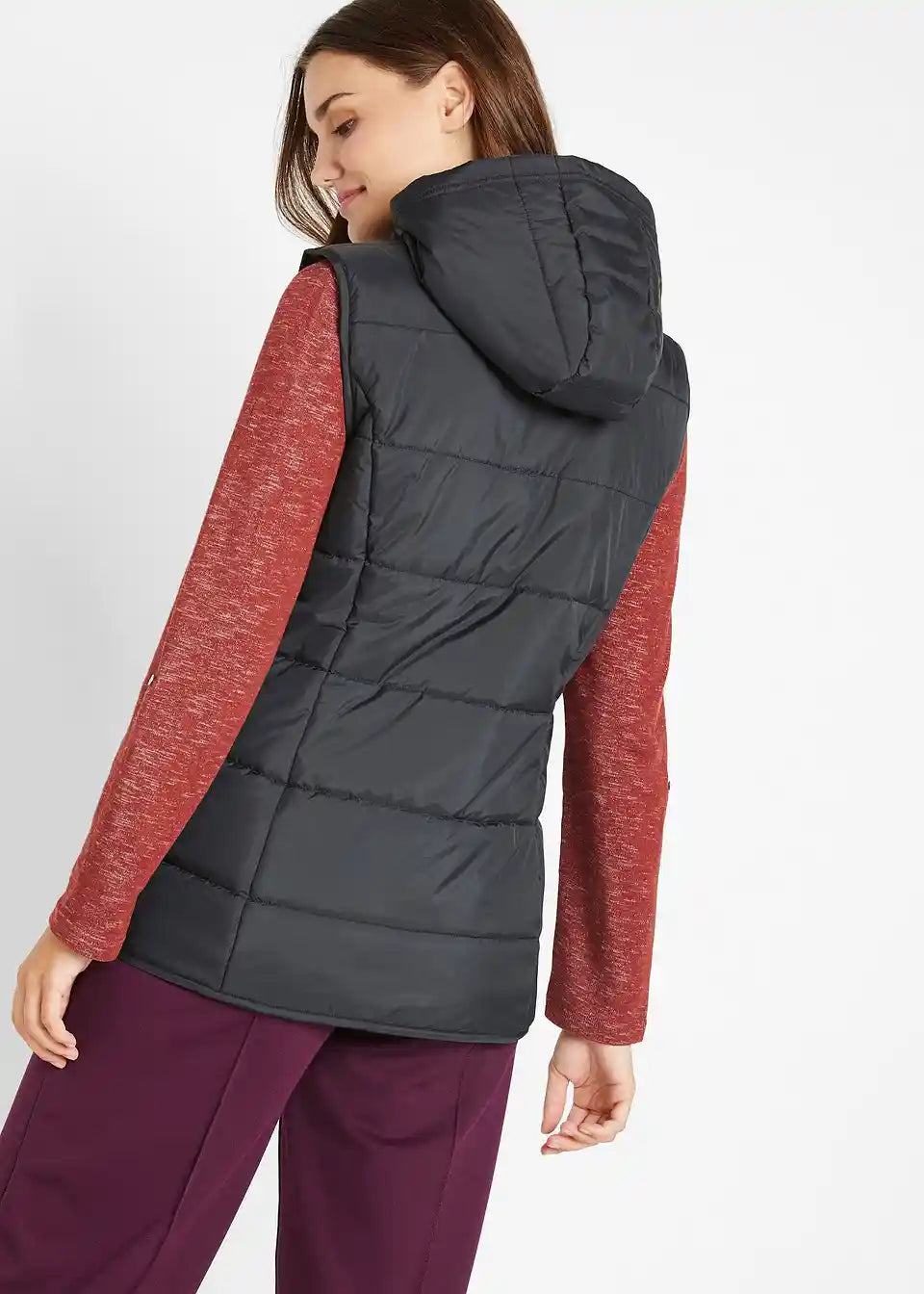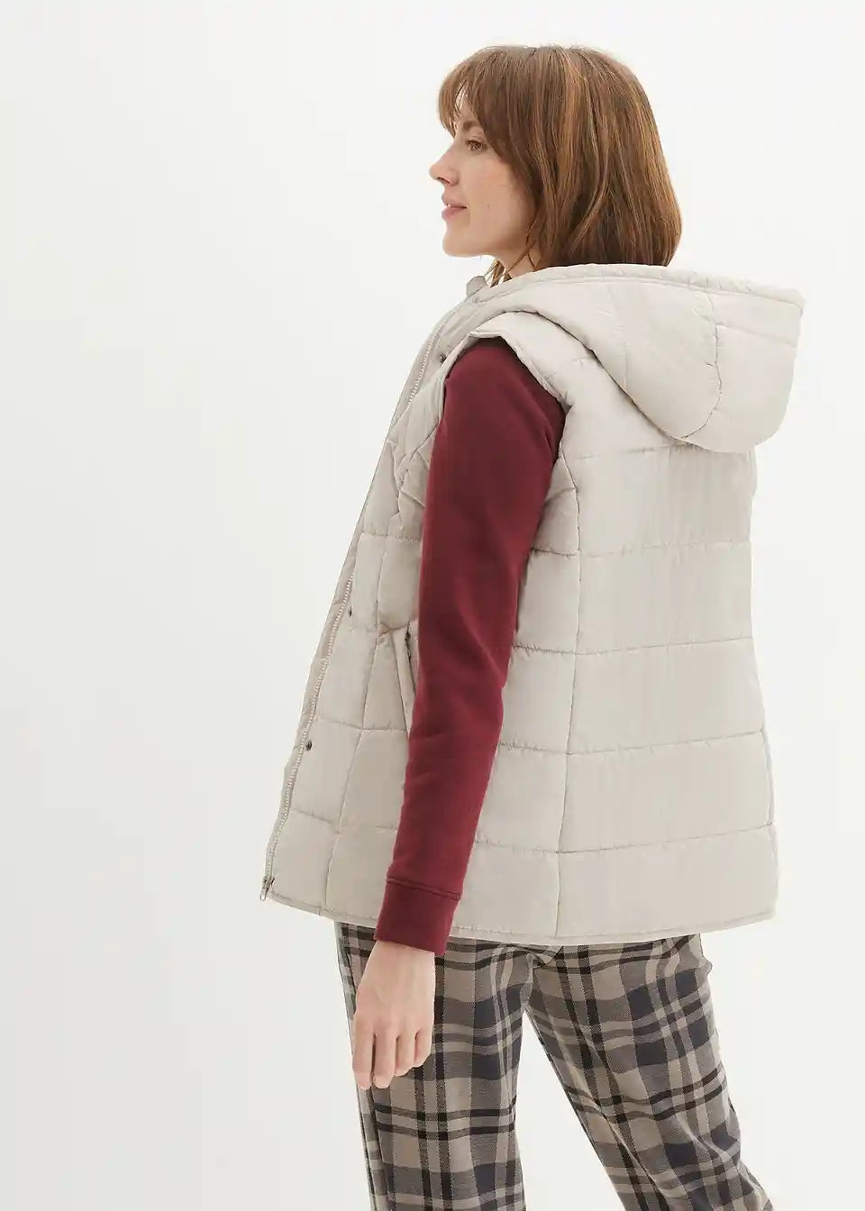 Wattierte Weste mit Steppung und Kapuze, Eingriffstaschen mit Reißverschluss