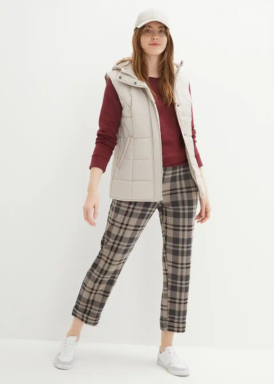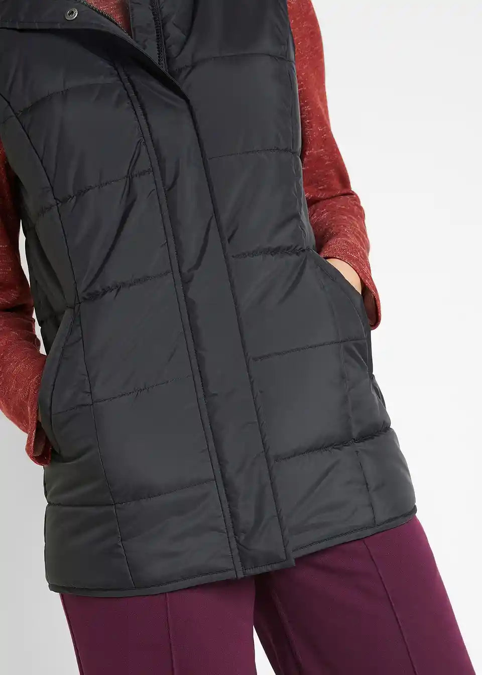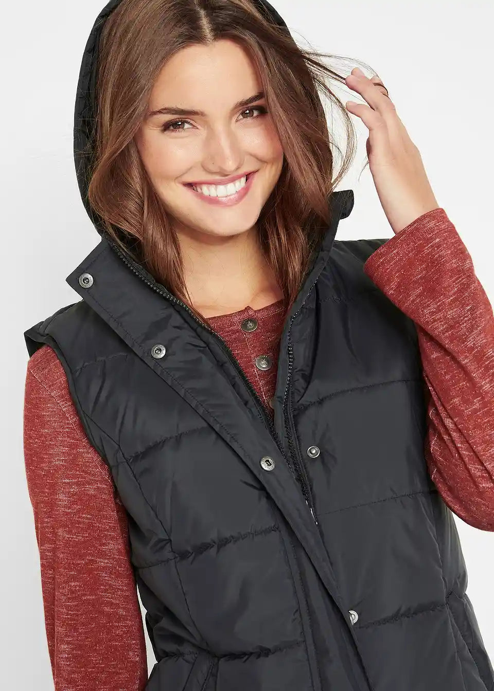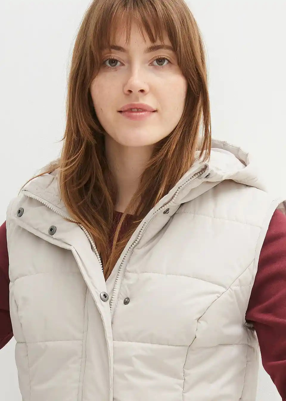 Wattierte Weste mit Steppung und Kapuze, Eingriffstaschen mit Reißverschluss