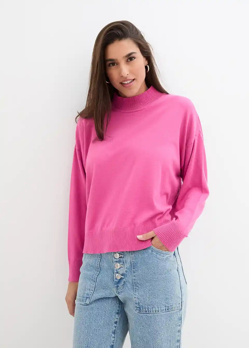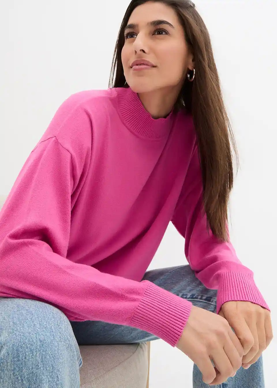 Oversized Feinstrick-Pullover mit Stehkragen