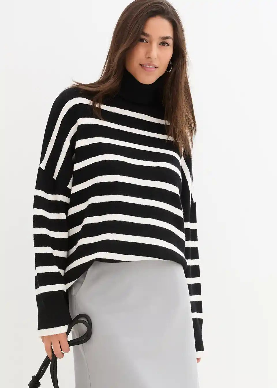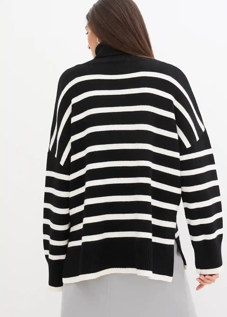 Moderner gestreifter Pullover mit seitlichen Schlitzen
