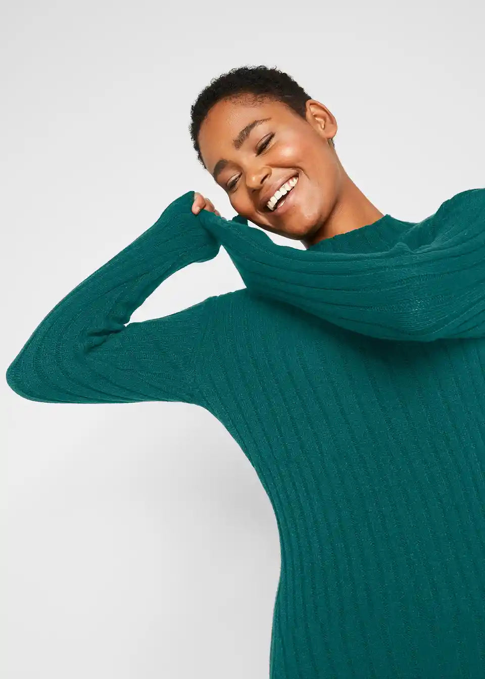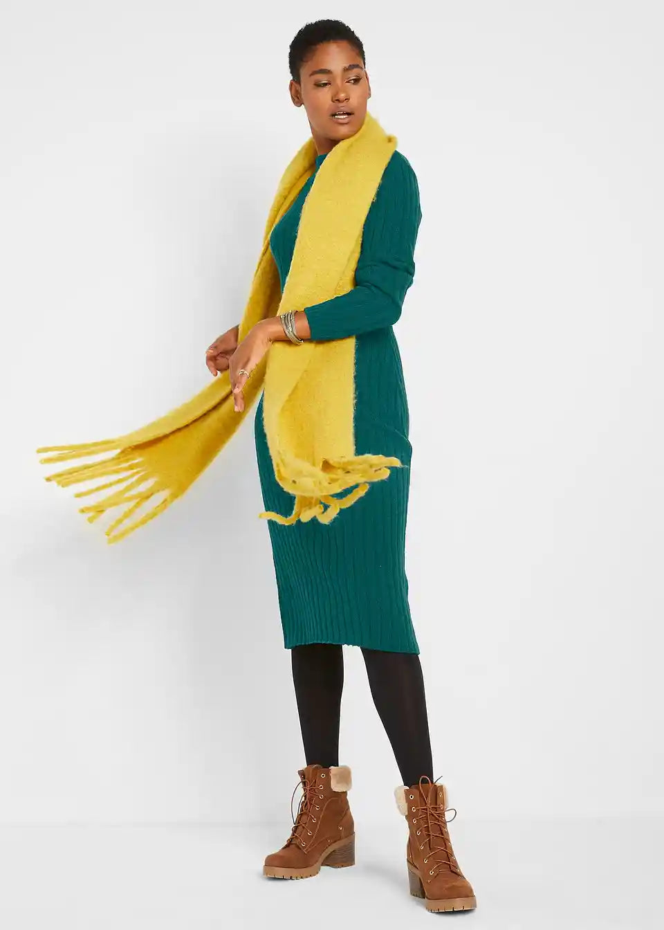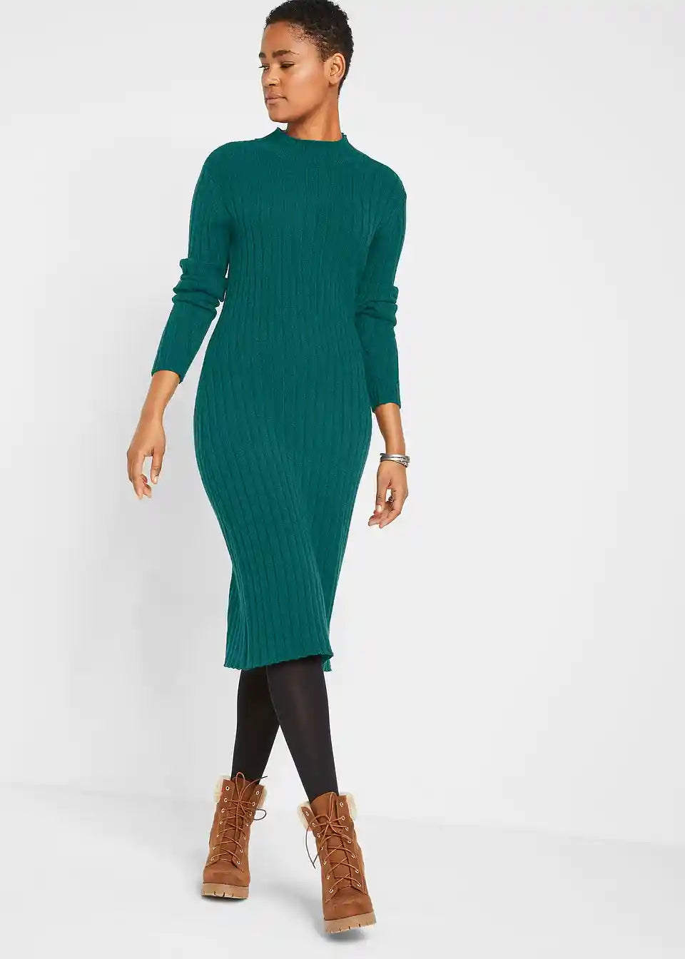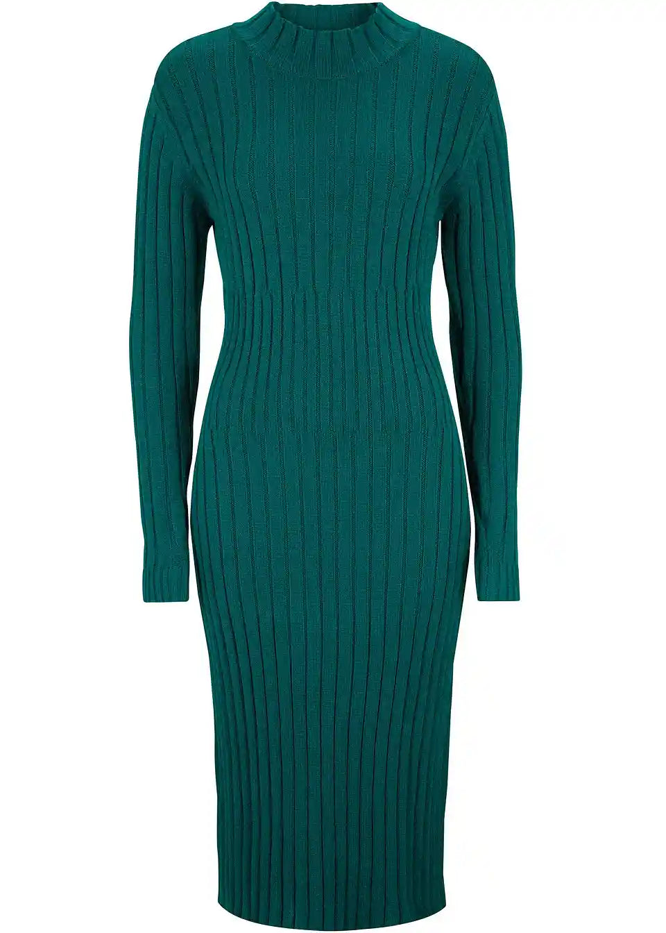 Hübsches Kleid mit Ripp-Struktur und Stehkragen