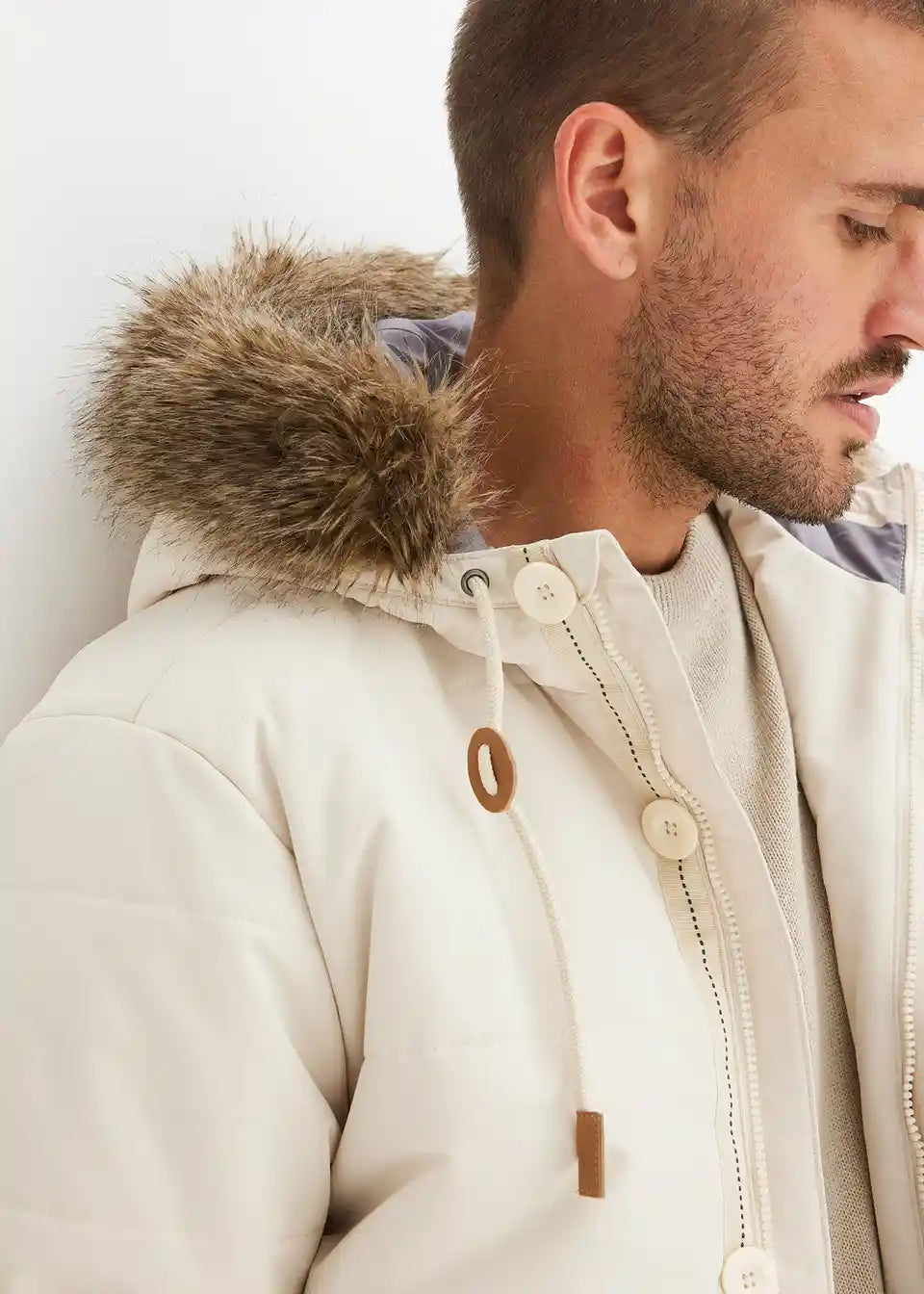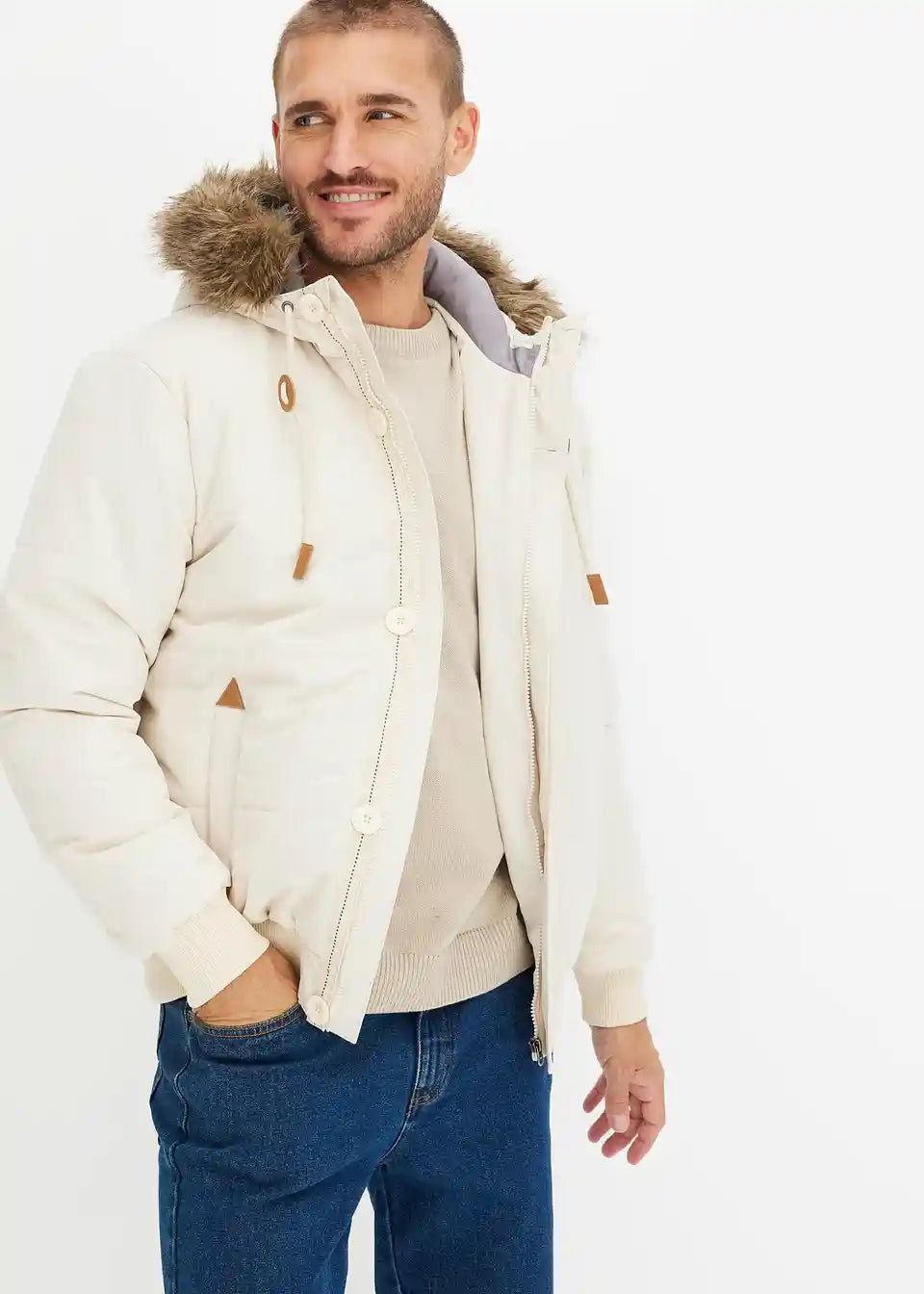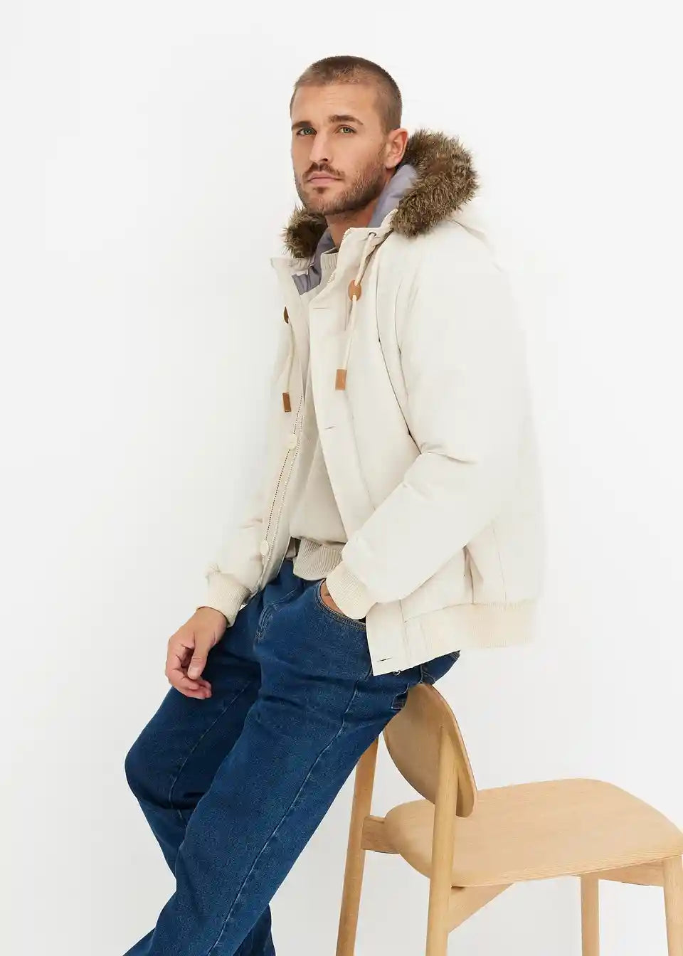 moderne Funktions-Jacke mit Fellimitat an der Kapuze