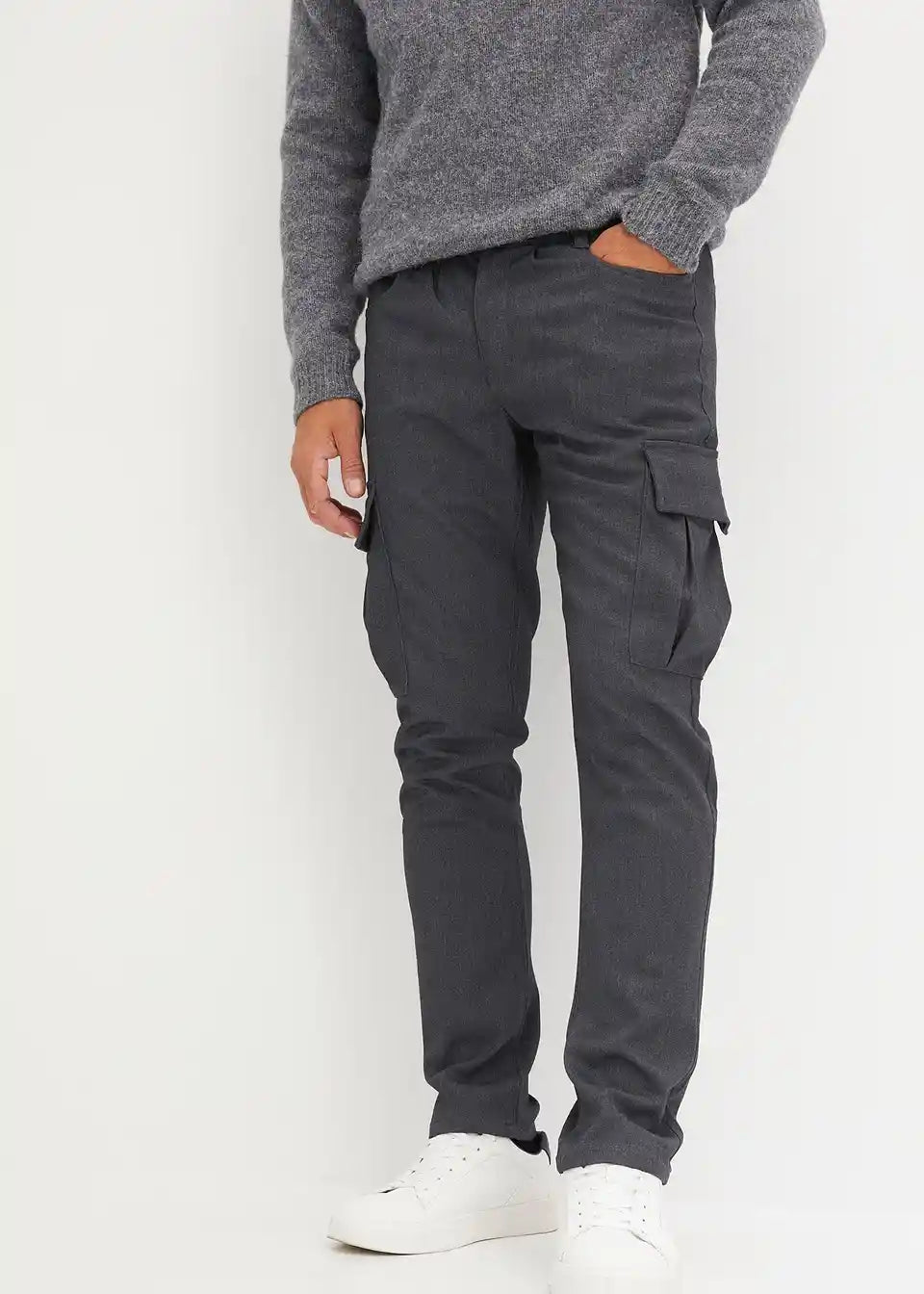 Regular Fit Flanell Cargohose mit Bundfalte, Straight