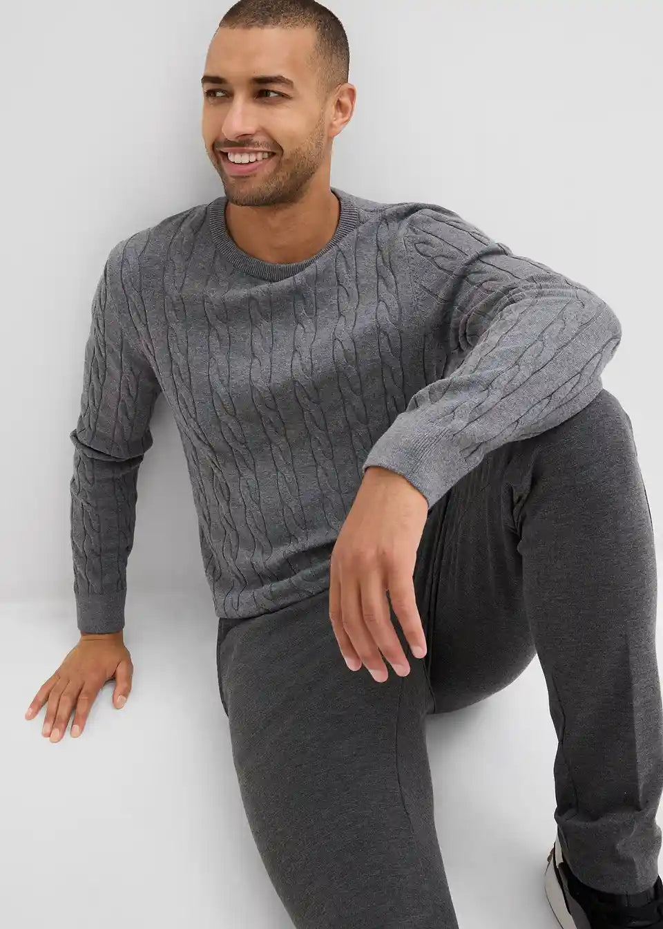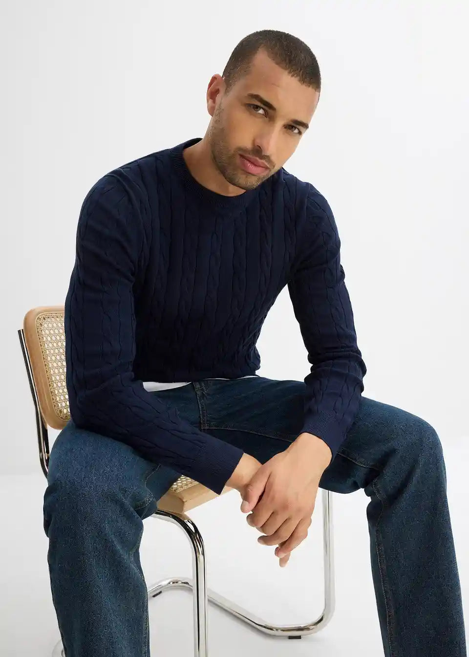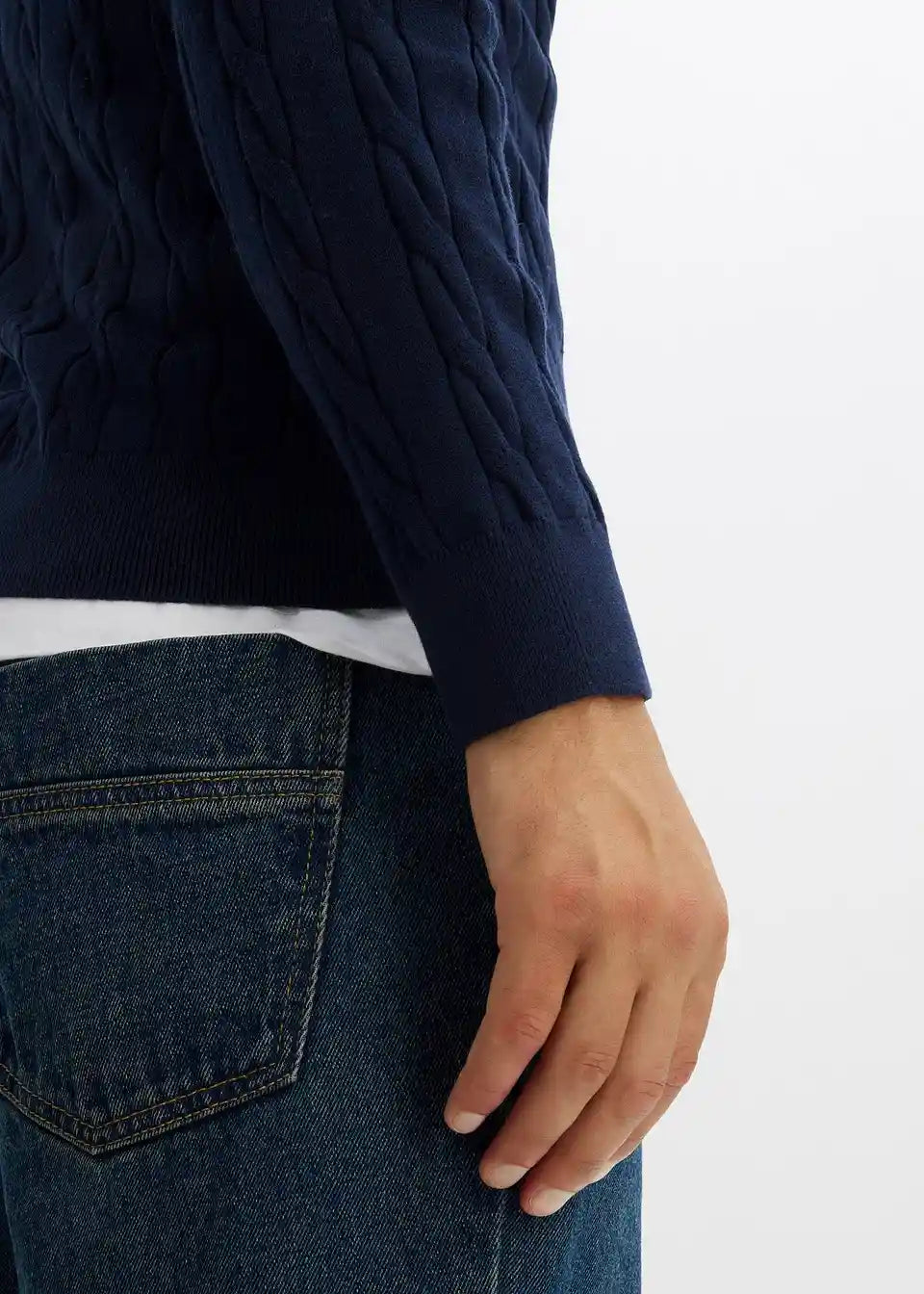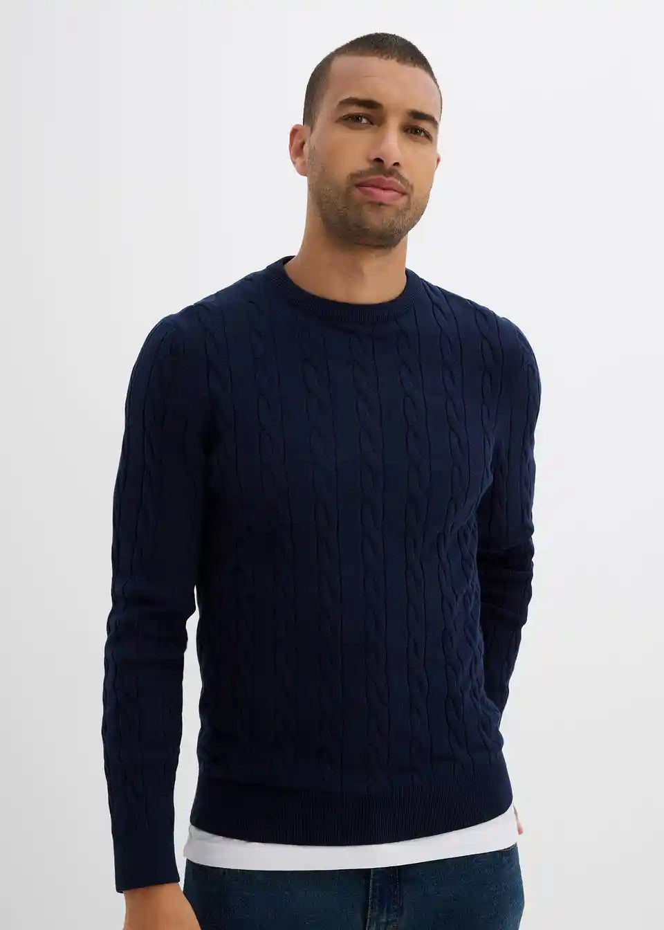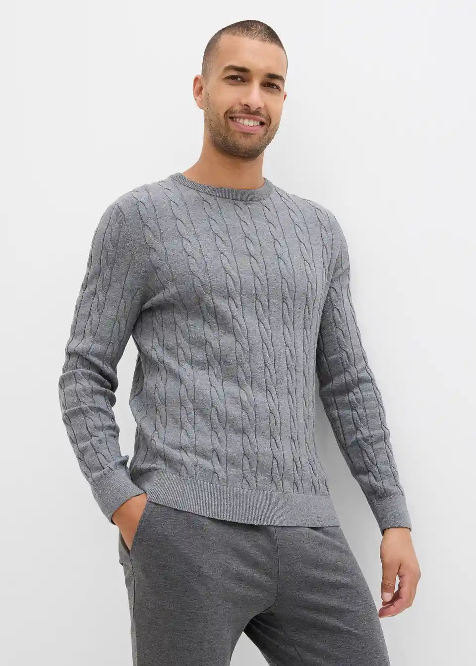 Feinstrickpullover mit Zopfmuster, Slim Fit