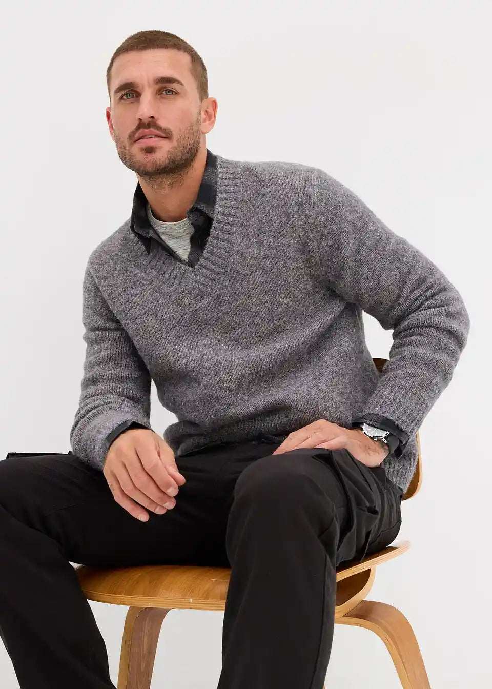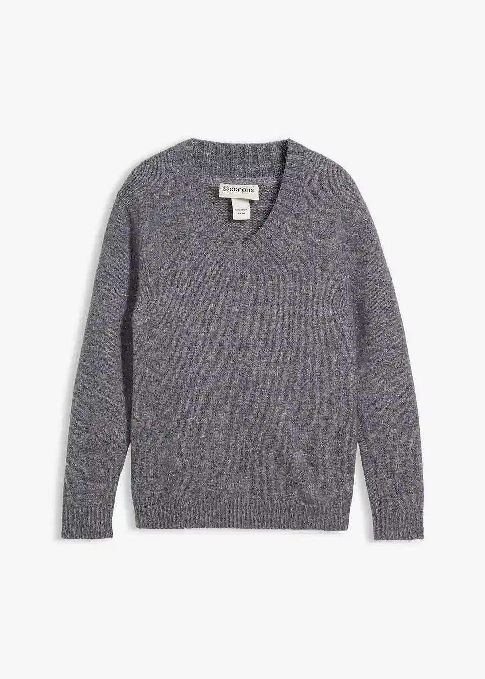 Schöner flauschiger Pullover mit V-Ausschnitt