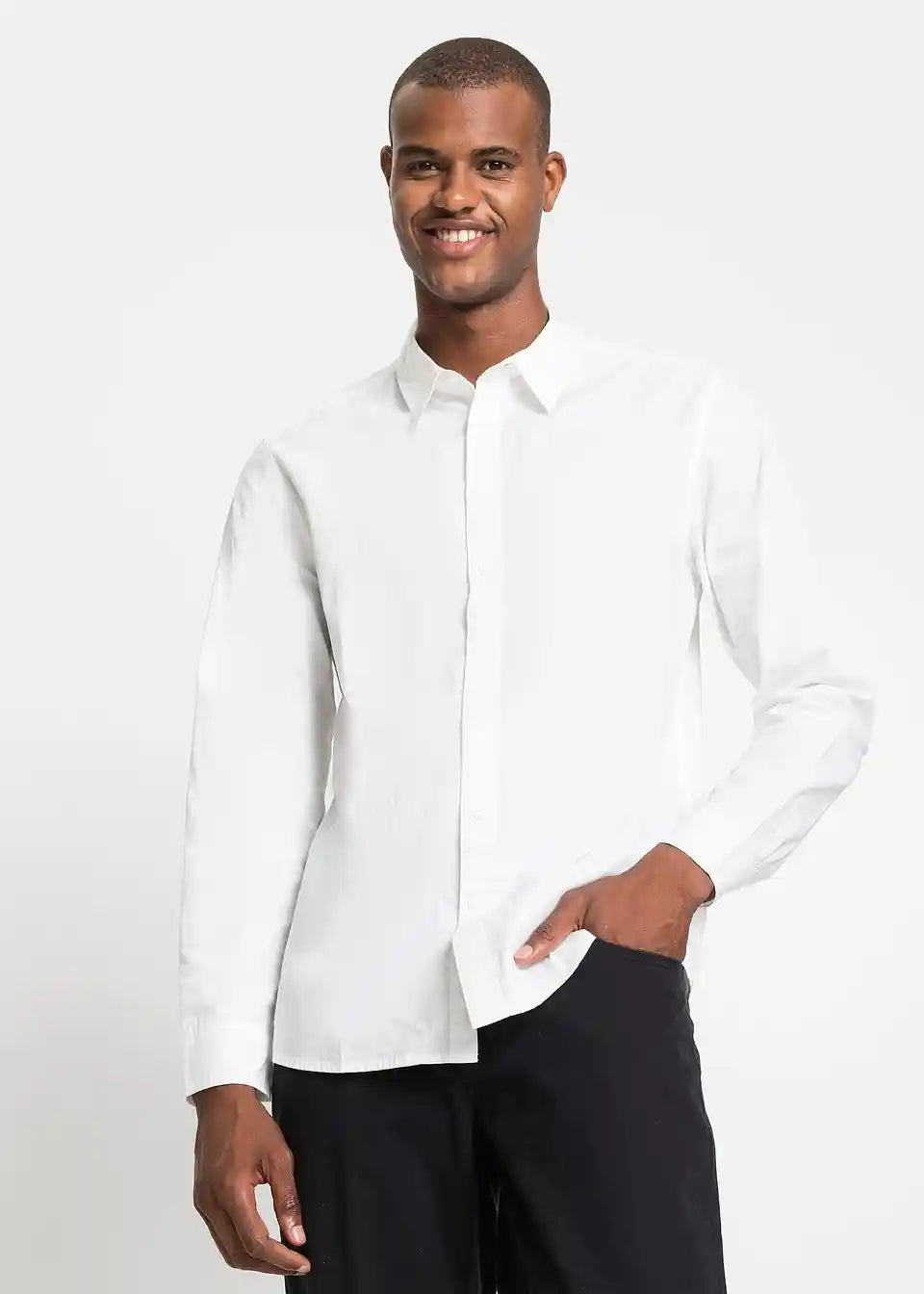 Schönes Langarmhemd mit Komfortschnitt und einem gewebten Label am Saum, maschinenwaschbar