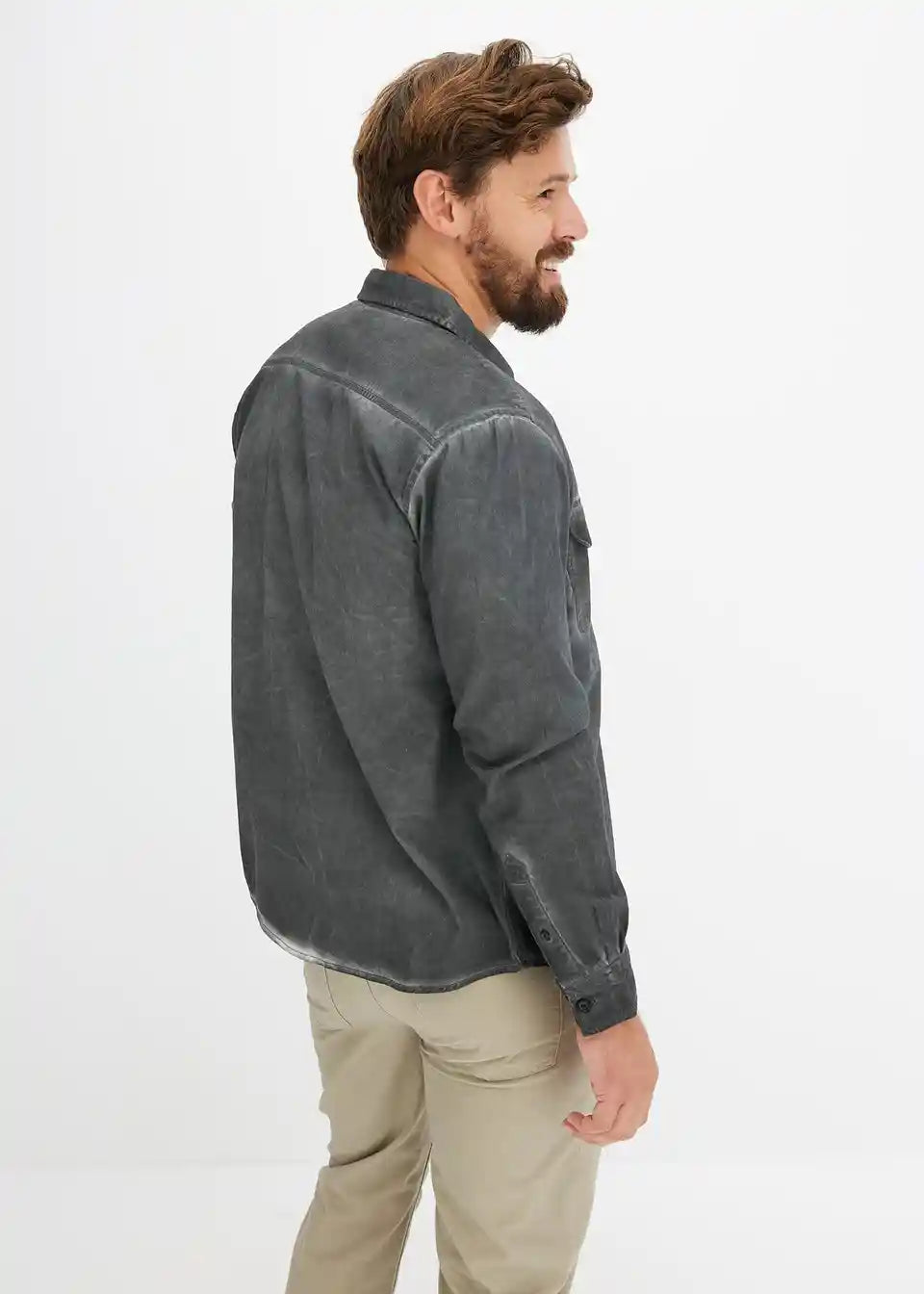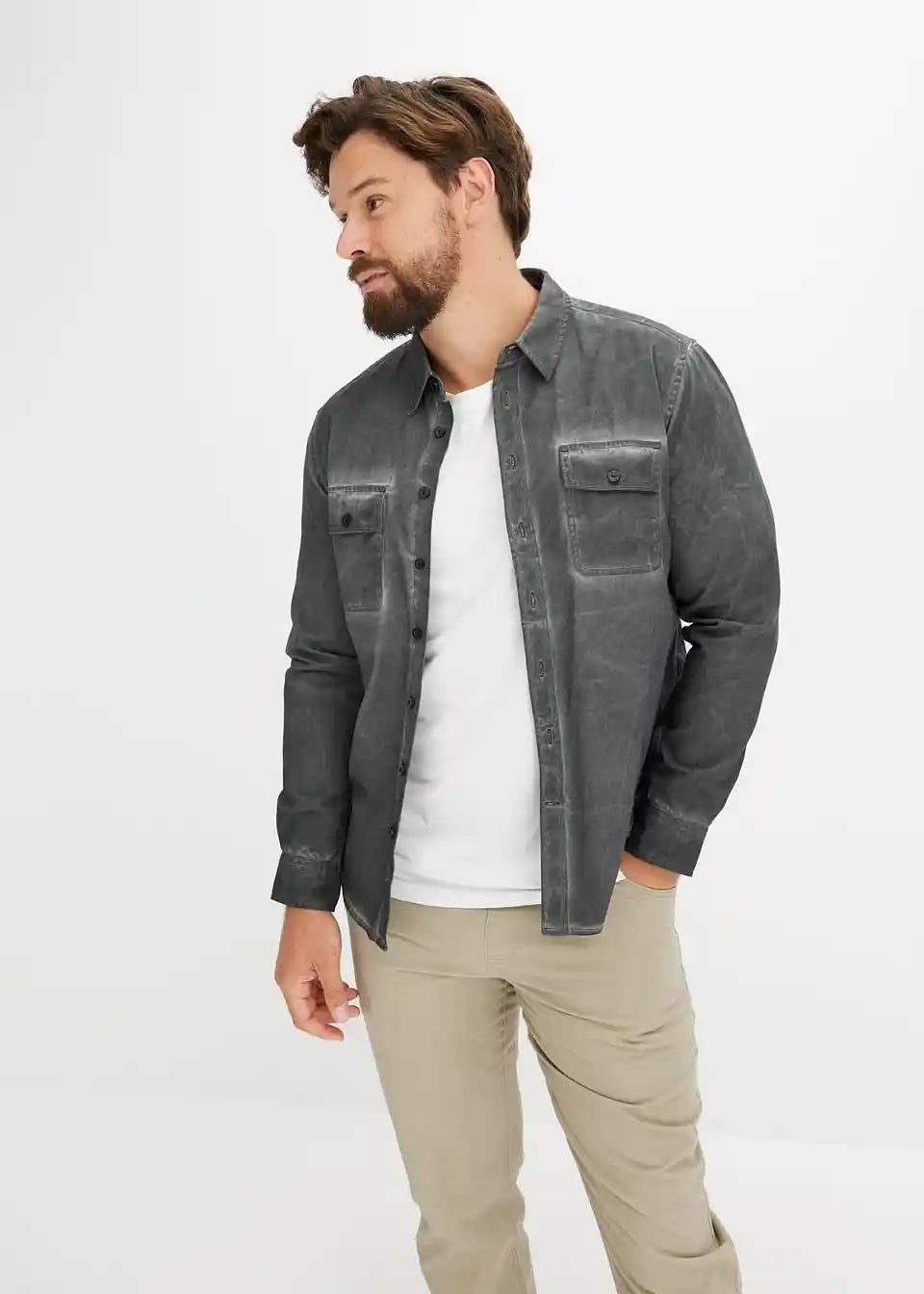 Schönes Langarmhemd mit rundem Saum und einer Brusttasche, jedes Teil ein Unikat.