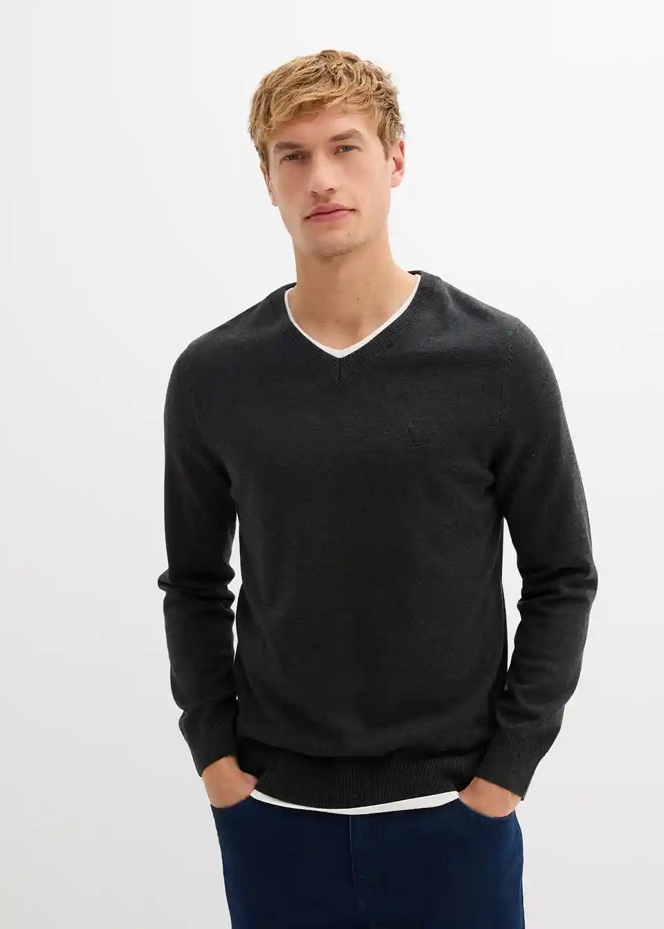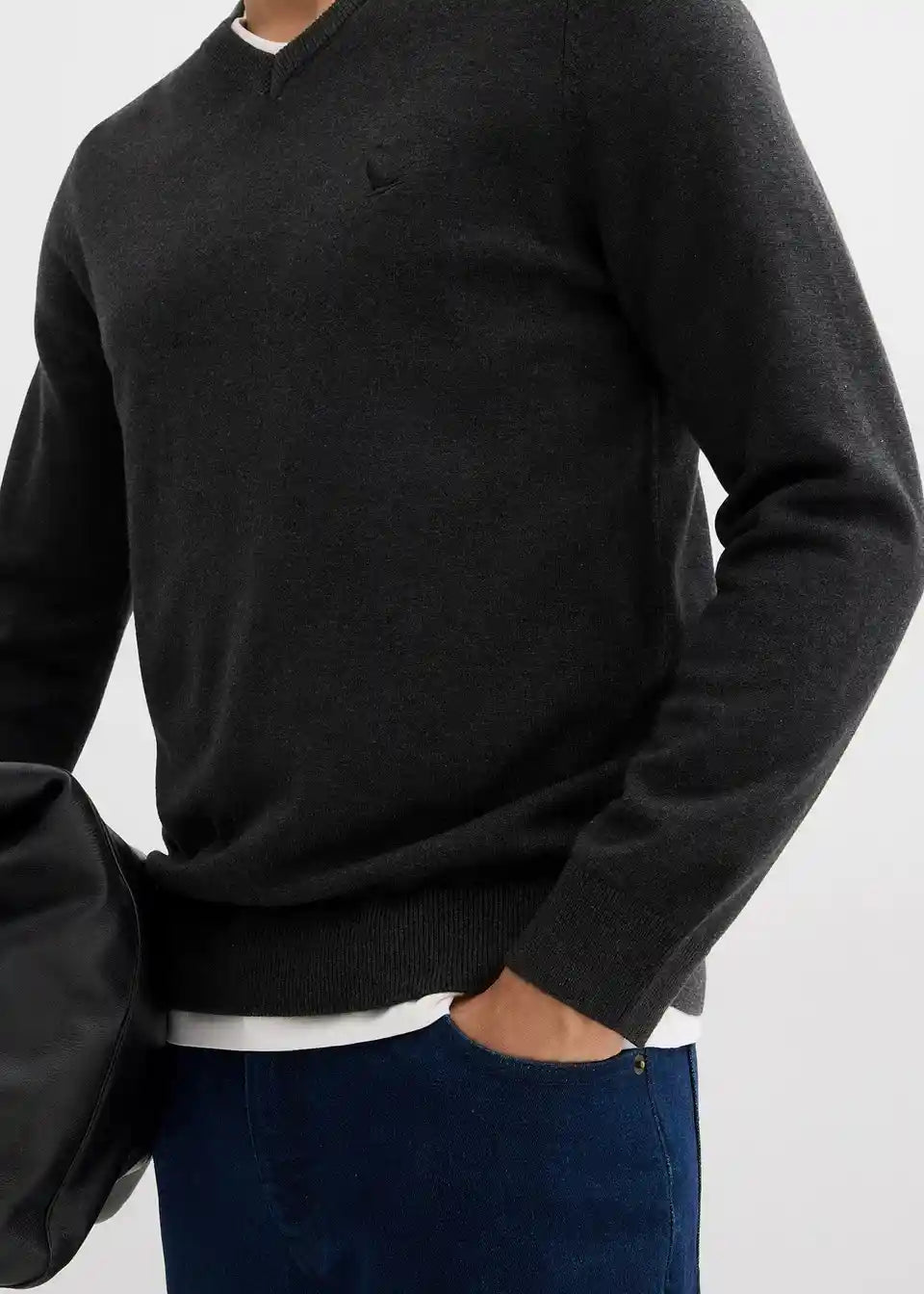 moderner Basic Pullover aus hautfreundlicher Baumwolle und kleiner Stickerei