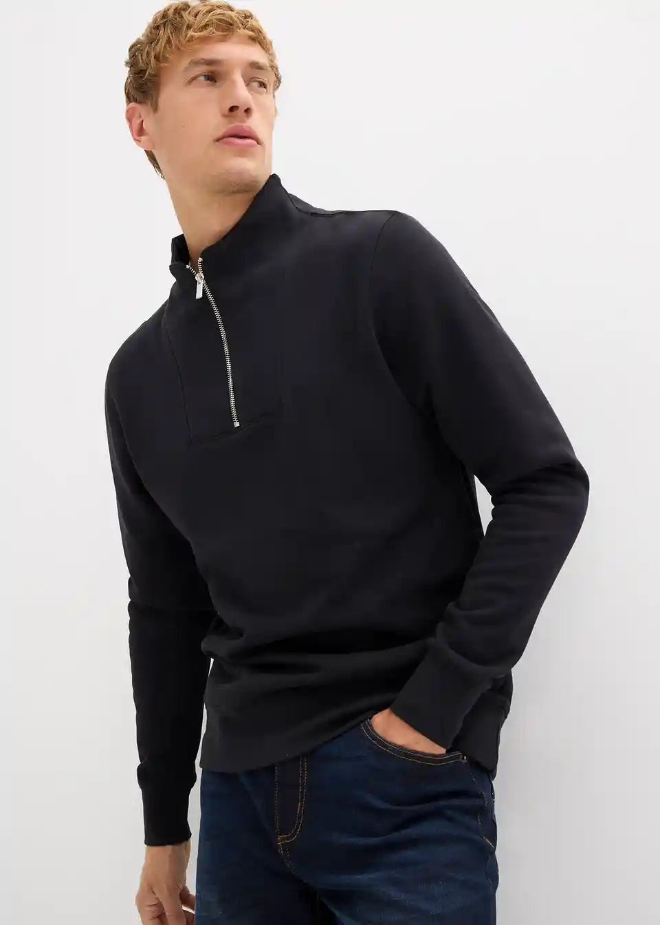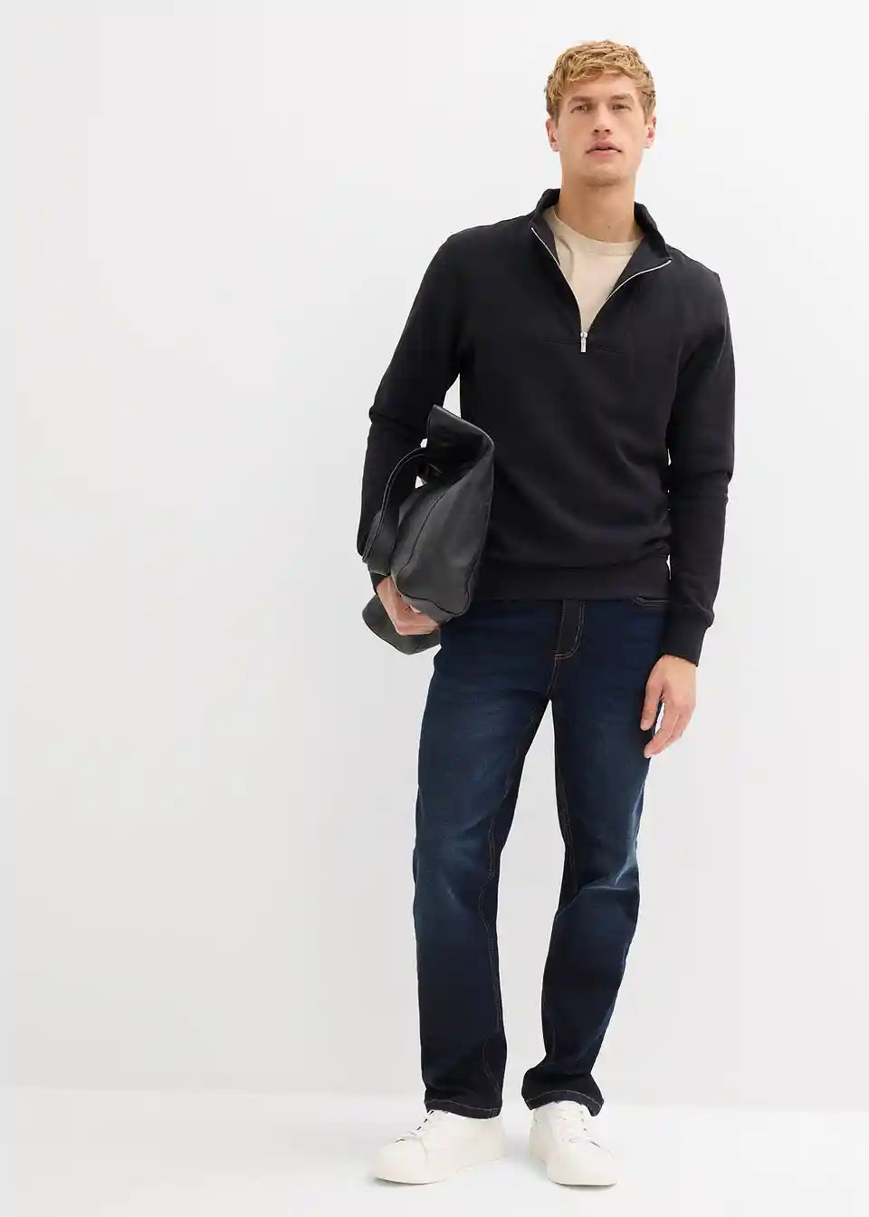 modernes Sweatshirt mit Troyerkragen und Reißverschlussöffnung, innen weich angeraut
