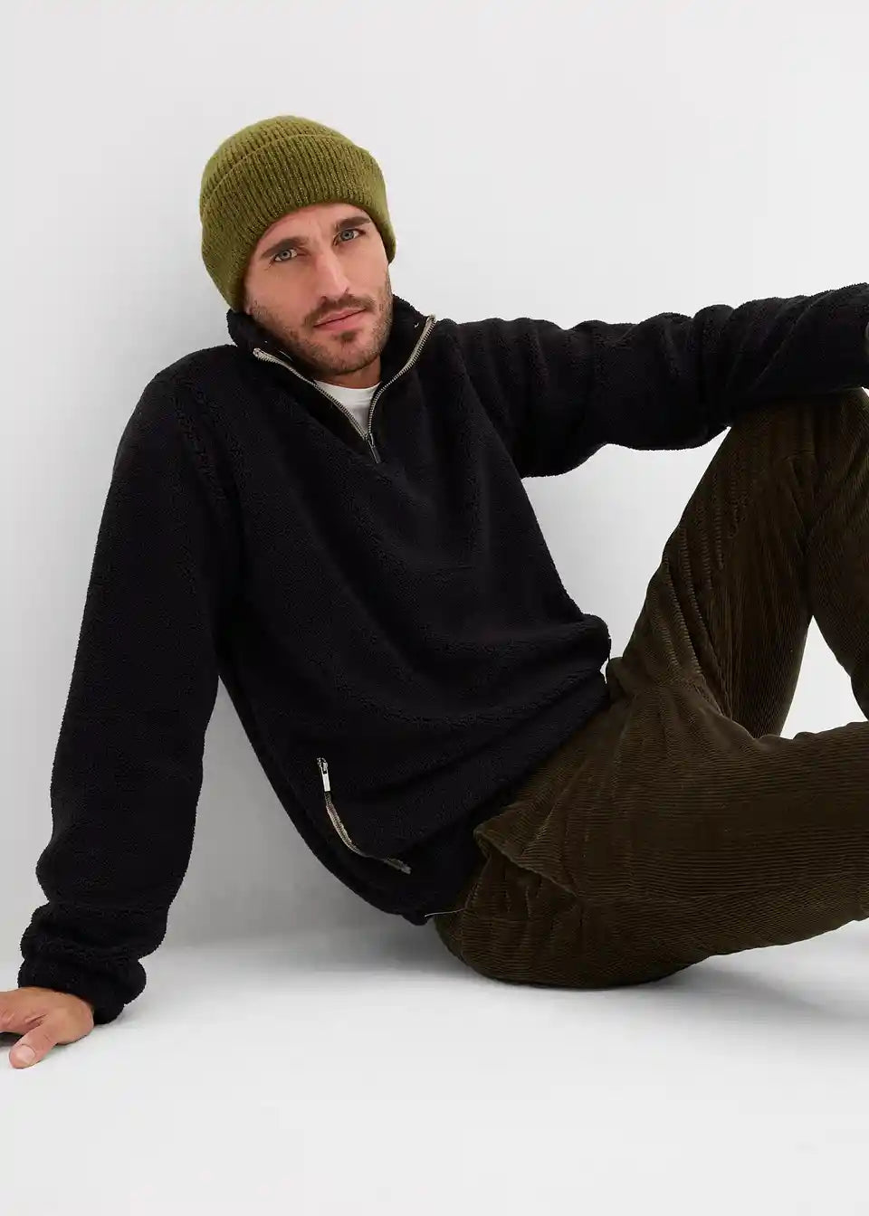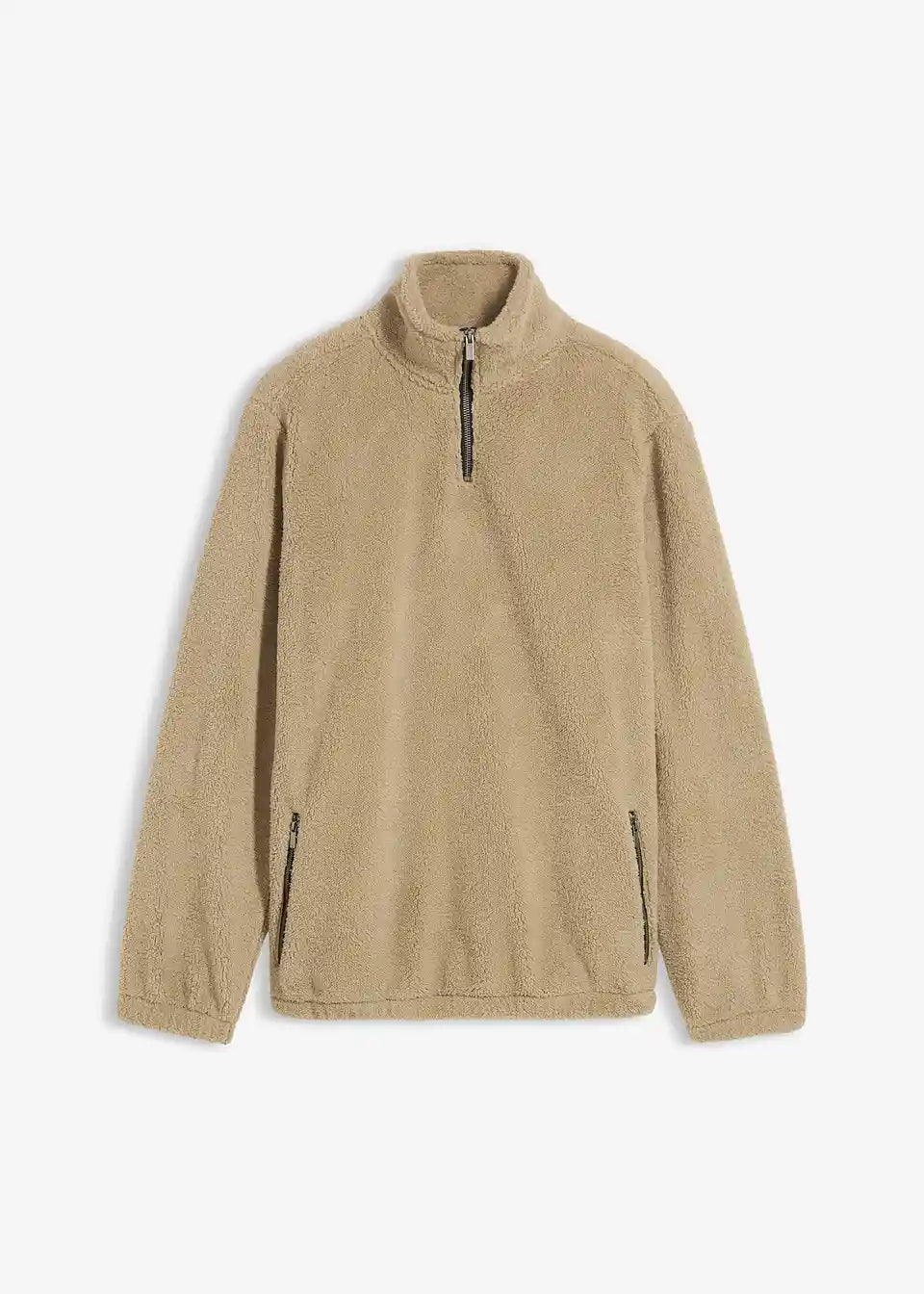 Teddy-Fleecepullover mit praktischen Reißverschlusstaschen