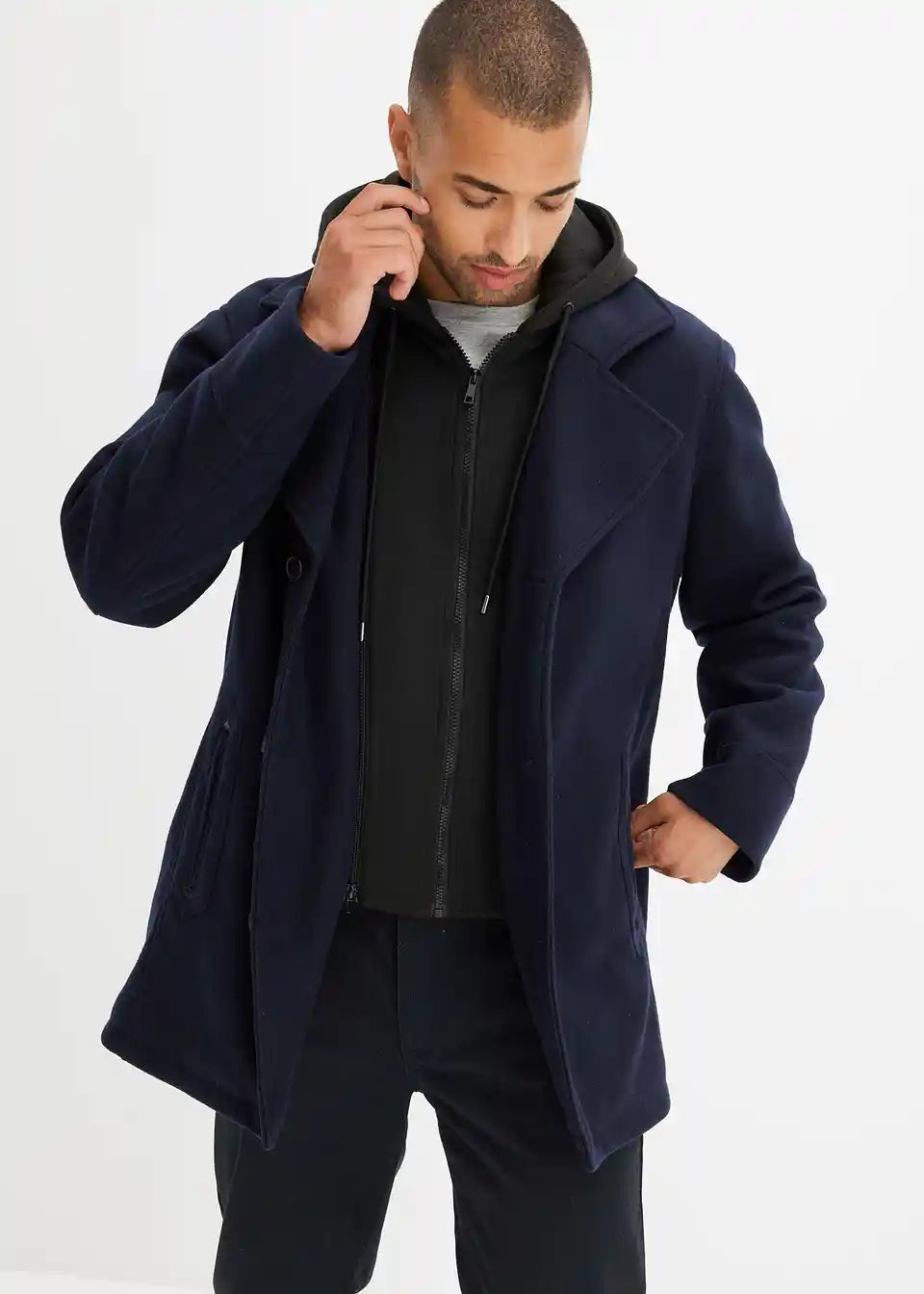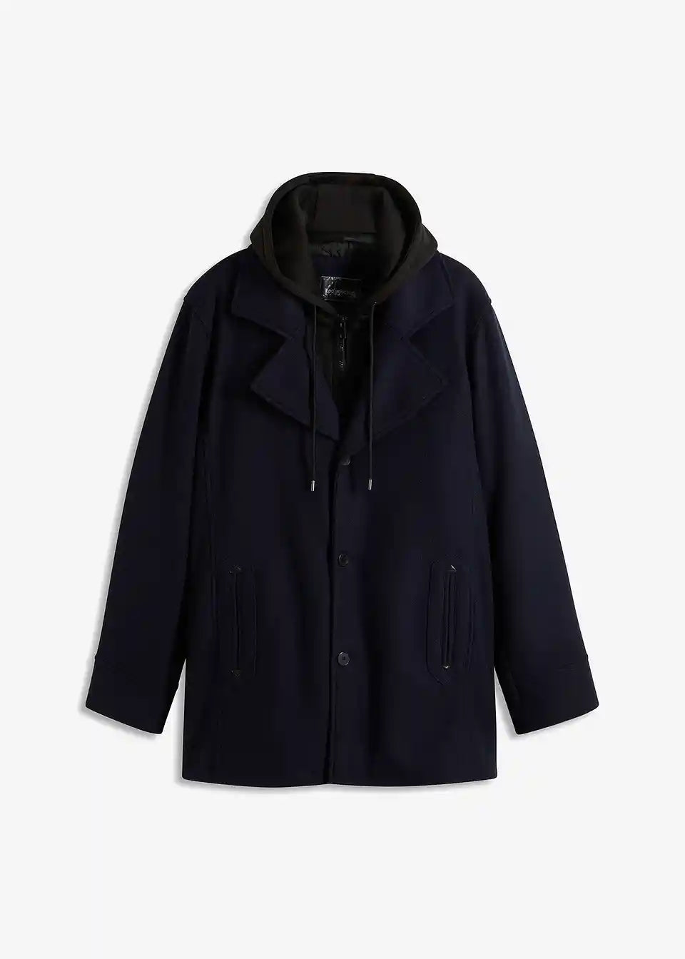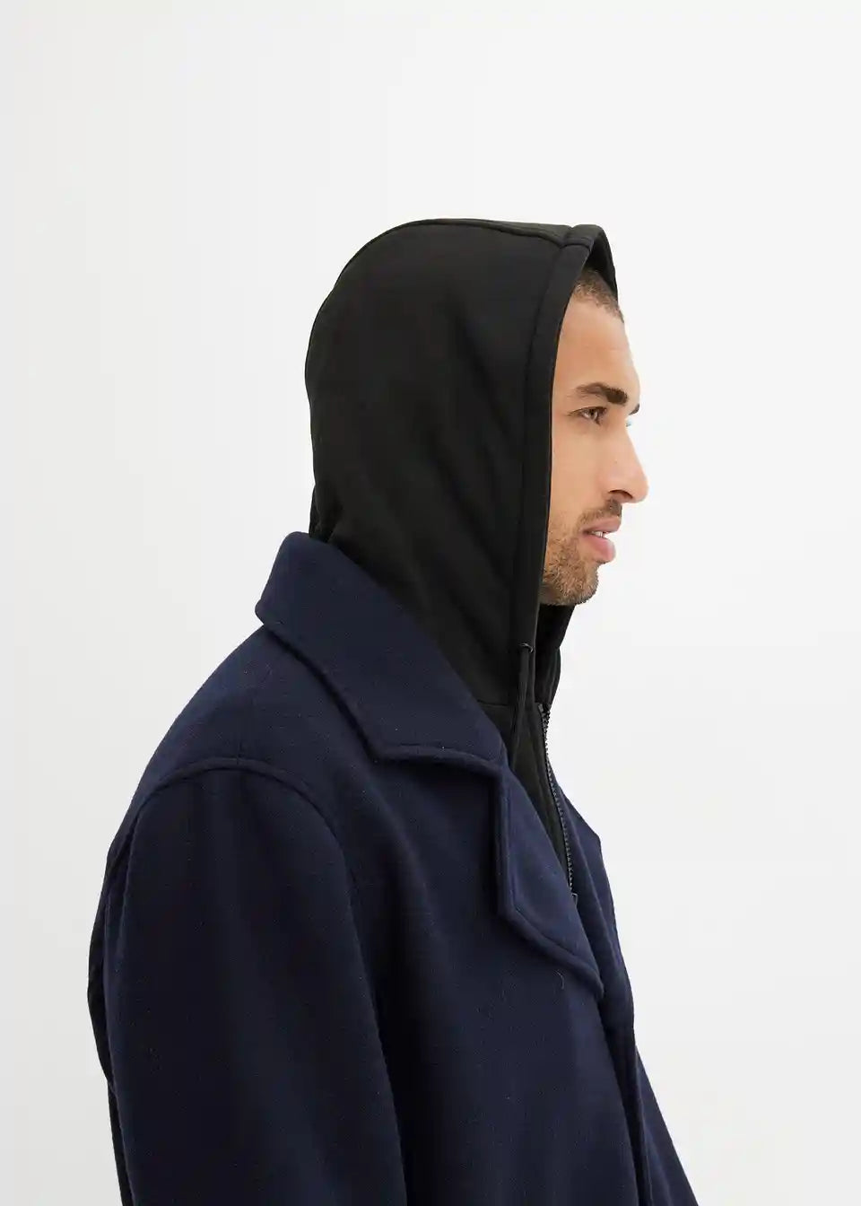Moderne Lang-Jacke in Wolloptik mit Sweateinsatz mit Kapuze