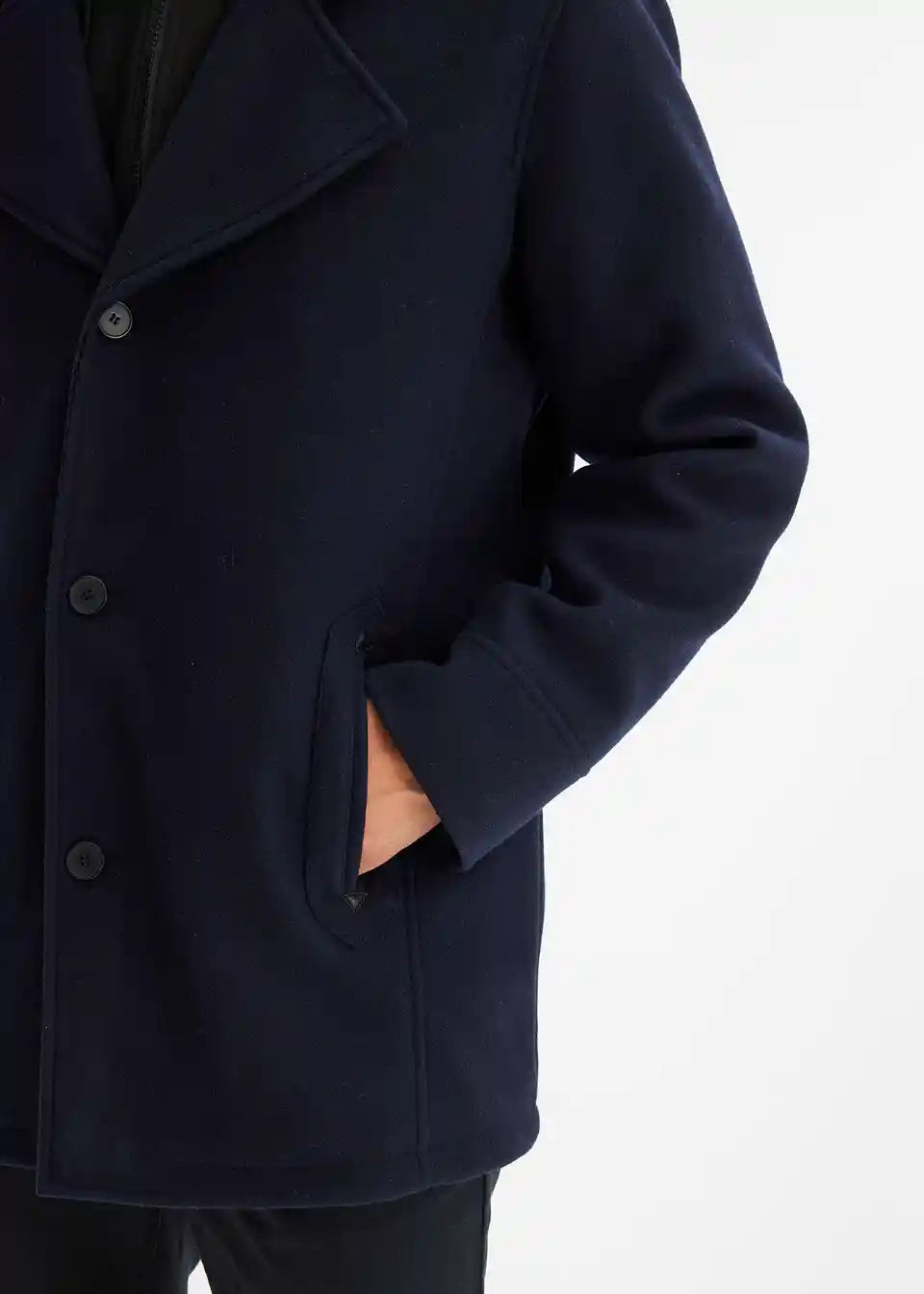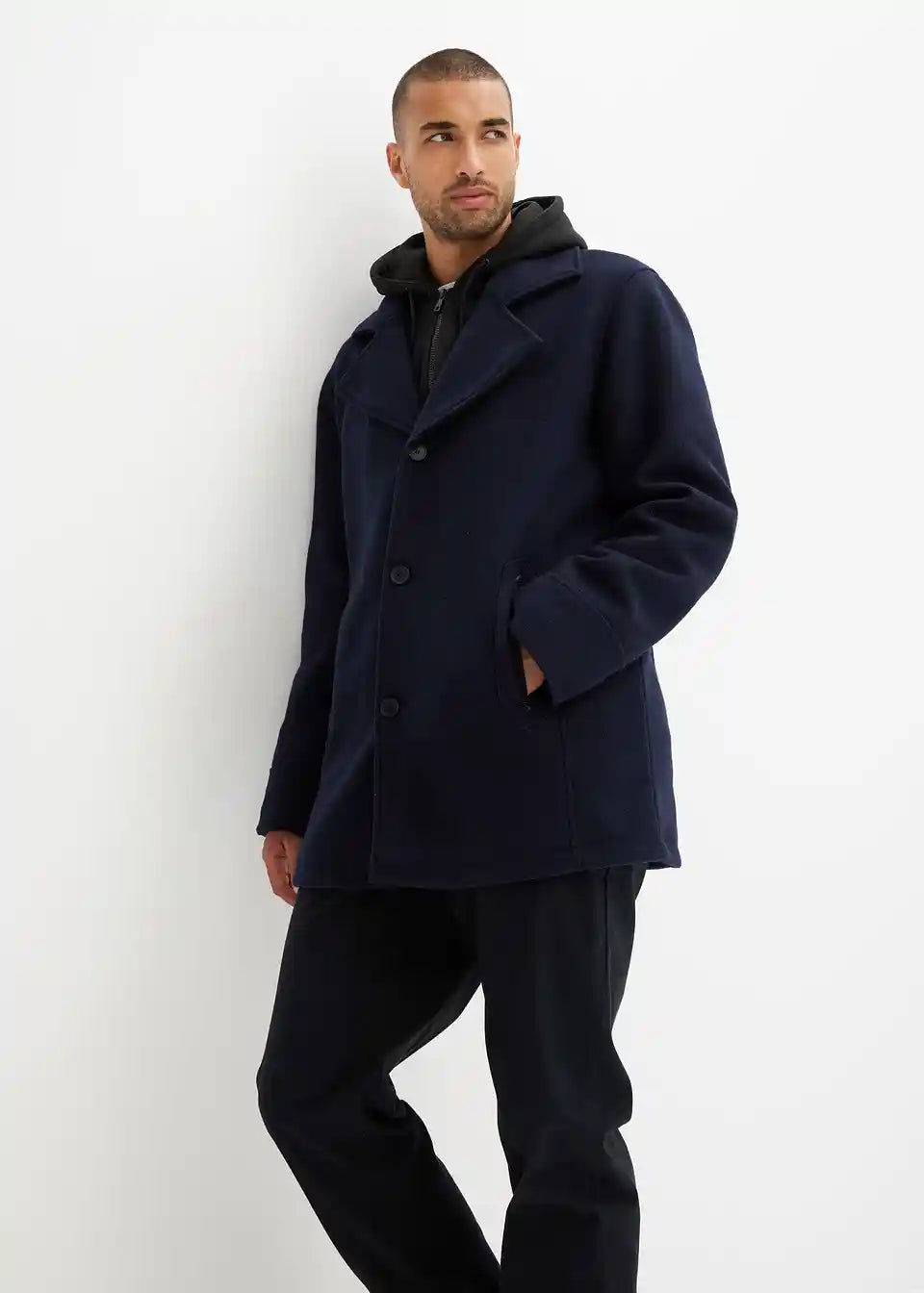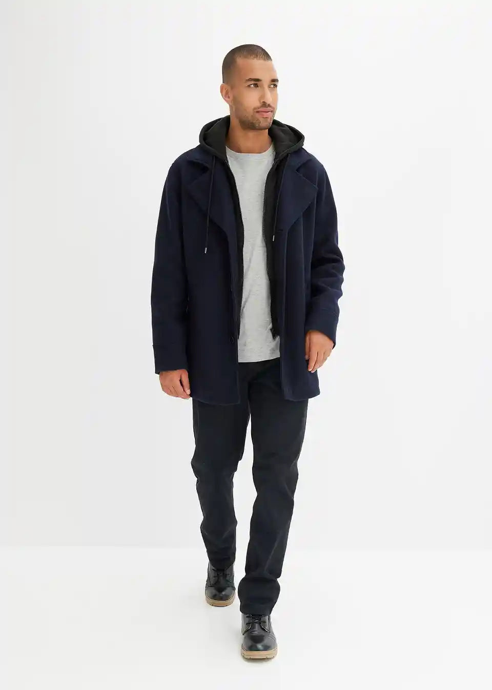 Moderne Lang-Jacke in Wolloptik mit Sweateinsatz mit Kapuze