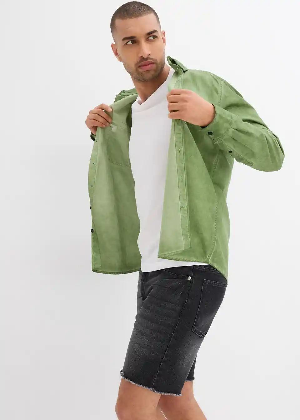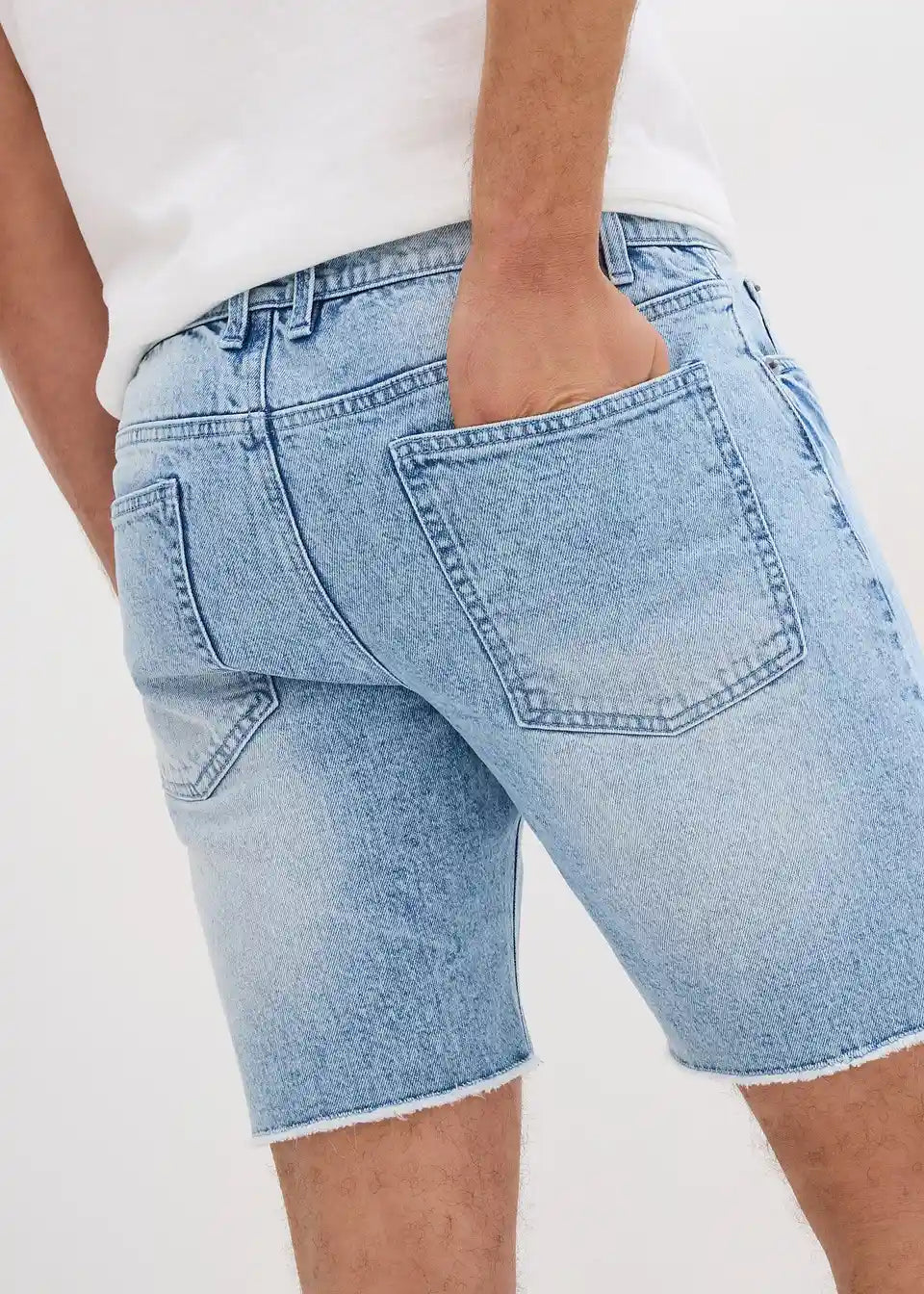 Stretch-Jeans-Shorts mit offenen Saumkanten, Relaxed Fit