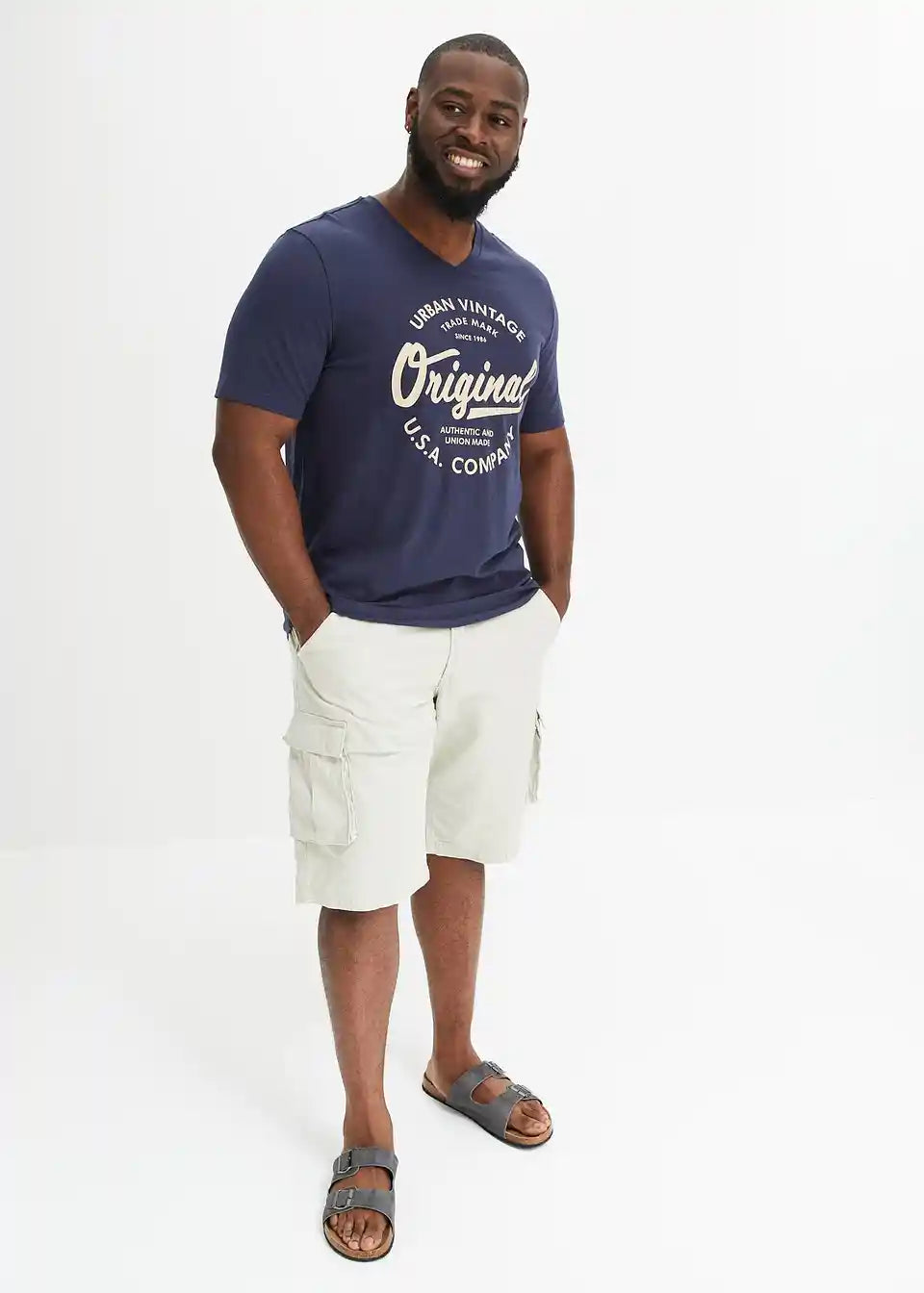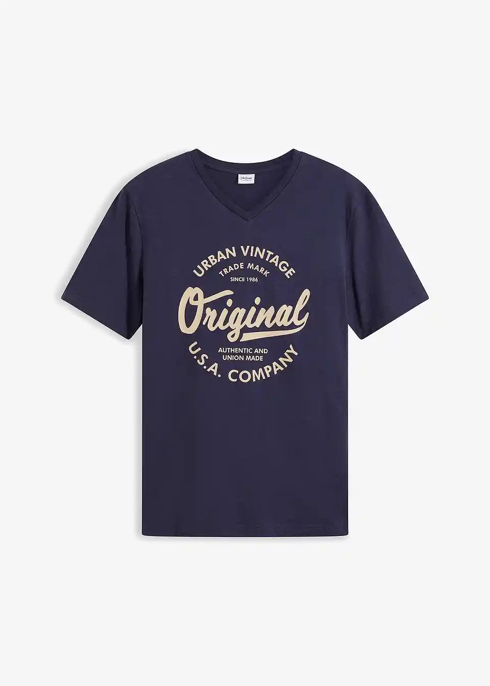 Kerniges V-T-Shirt aus pflegeleichter Baumwolle