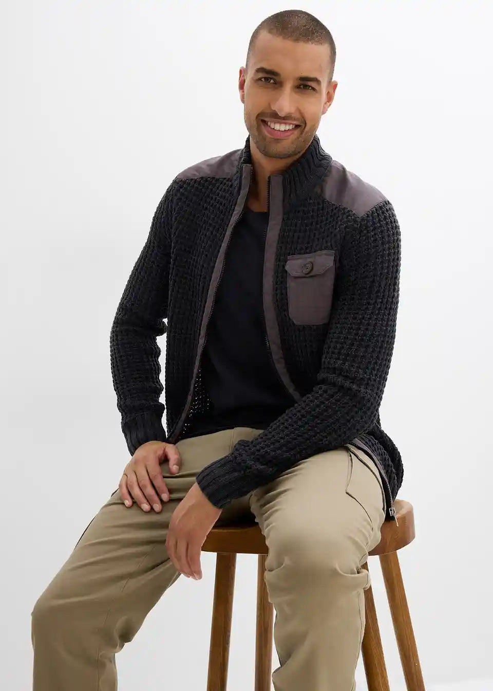 Lässige Grobstrickjacke mit einer Brusttasche