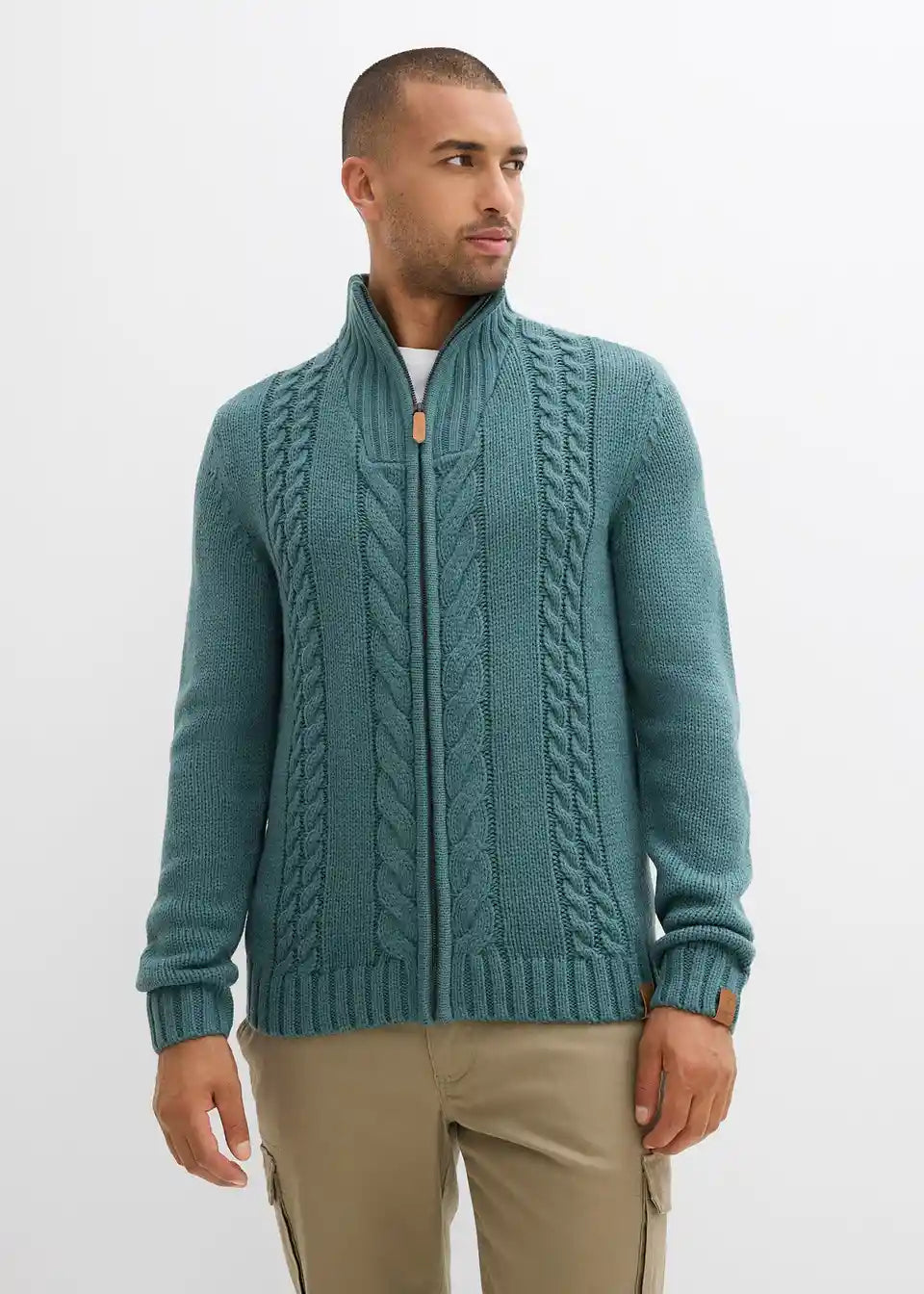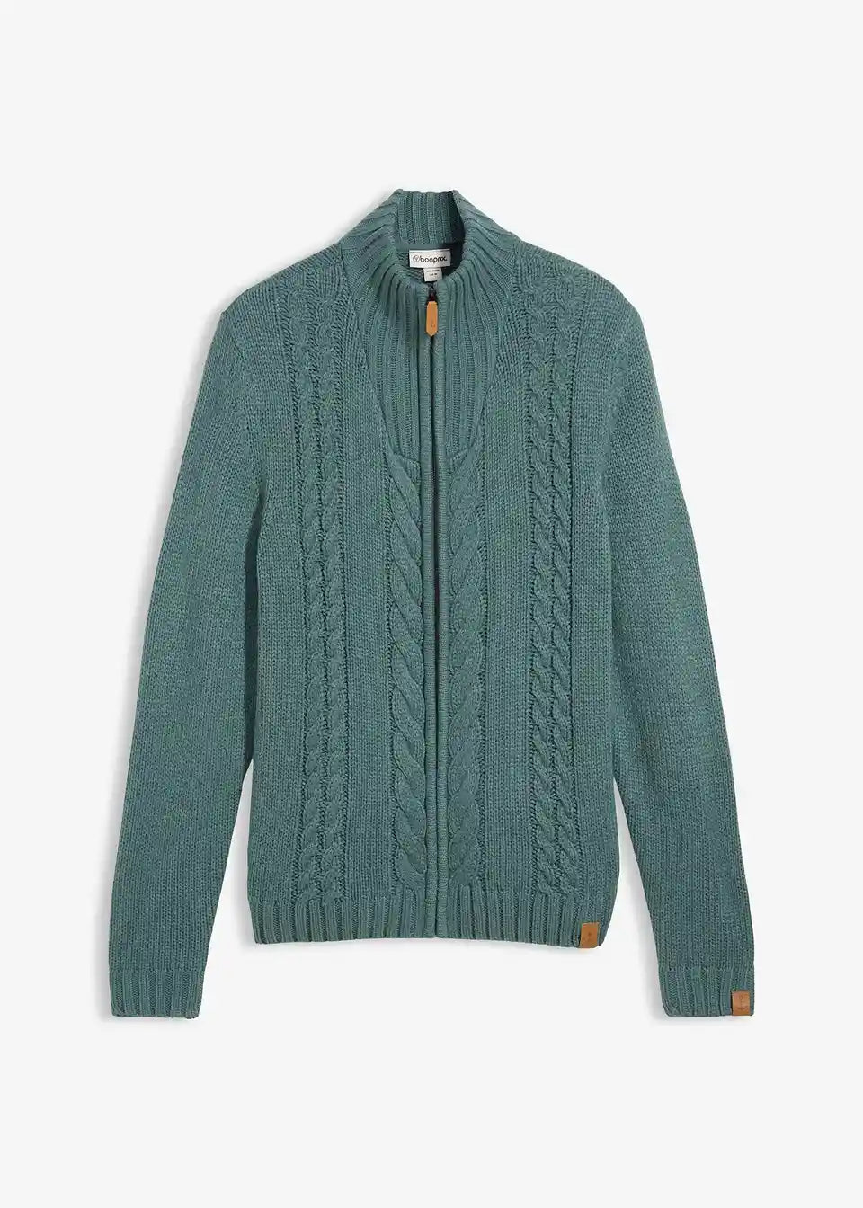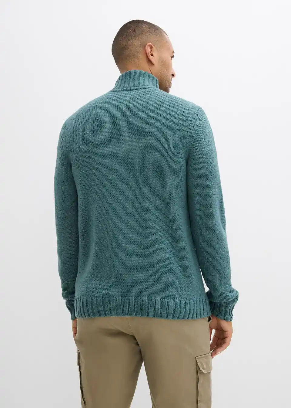 Lässige Strickjacke mit Stehkragen und Lederimitatdetails