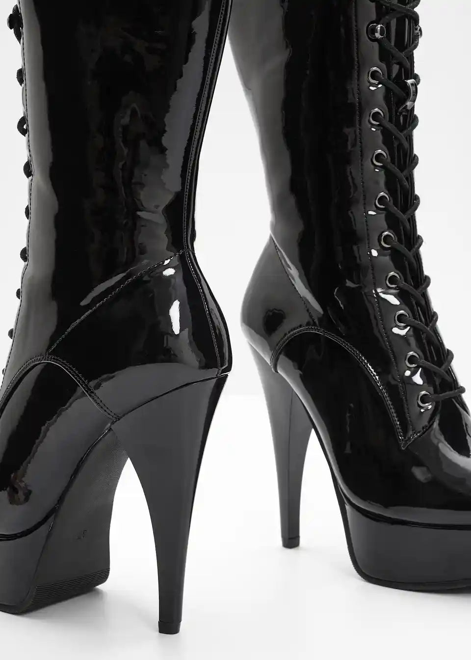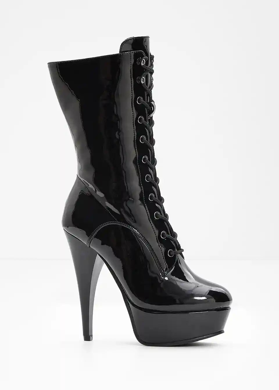 Erotische Plateau Schnür Stiefelette in Lackoptik