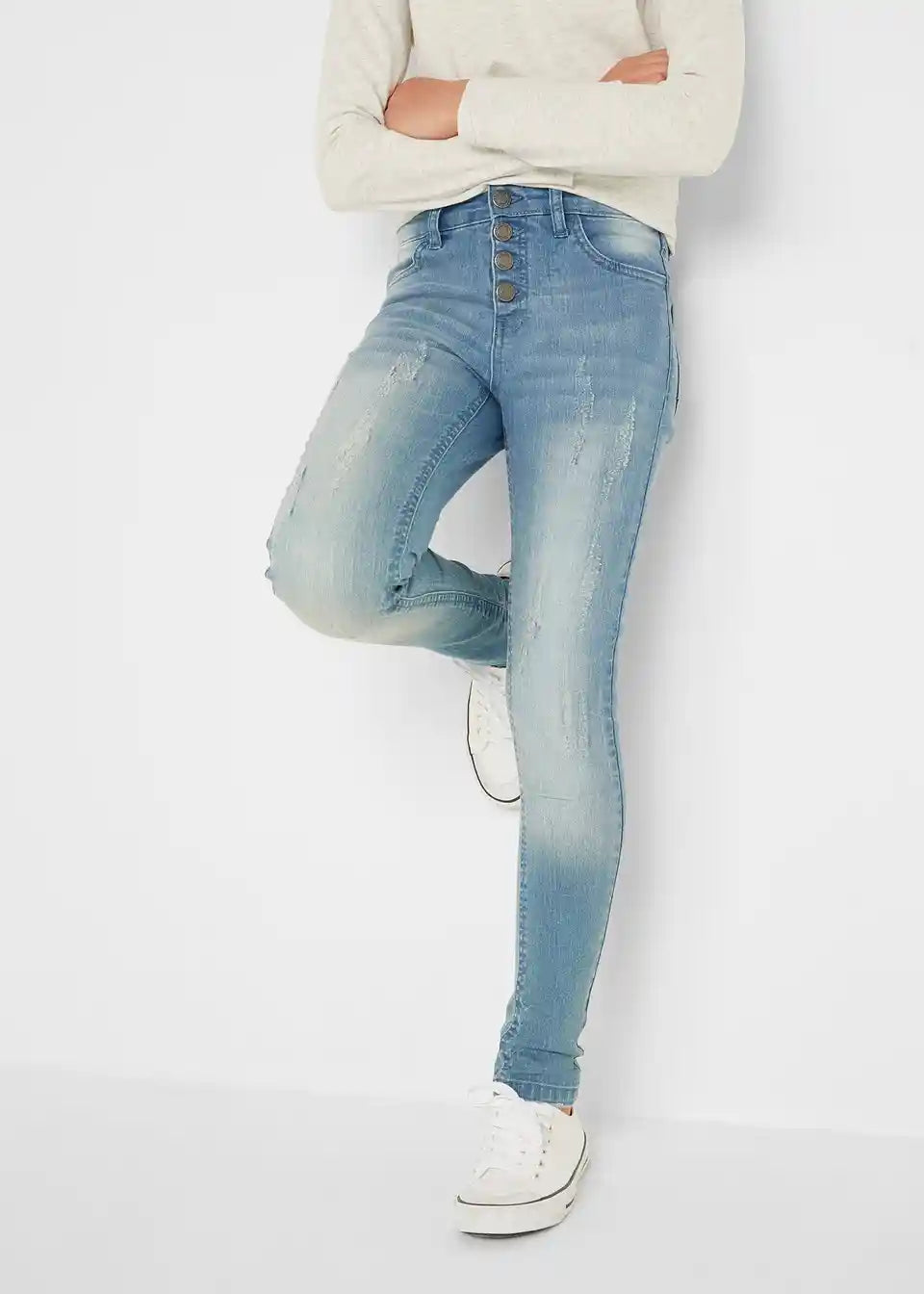 Diese Strech-Jeans für Mädchen ist eine bequeme Wahl für den Alltag. Aufgrund des schlichten Designs ist sie ein echtes Kombinationstalent und lässt sich mit schicken Tops und Blusen, als auch mit coolen Sweatshirts und Pullovern tragen.