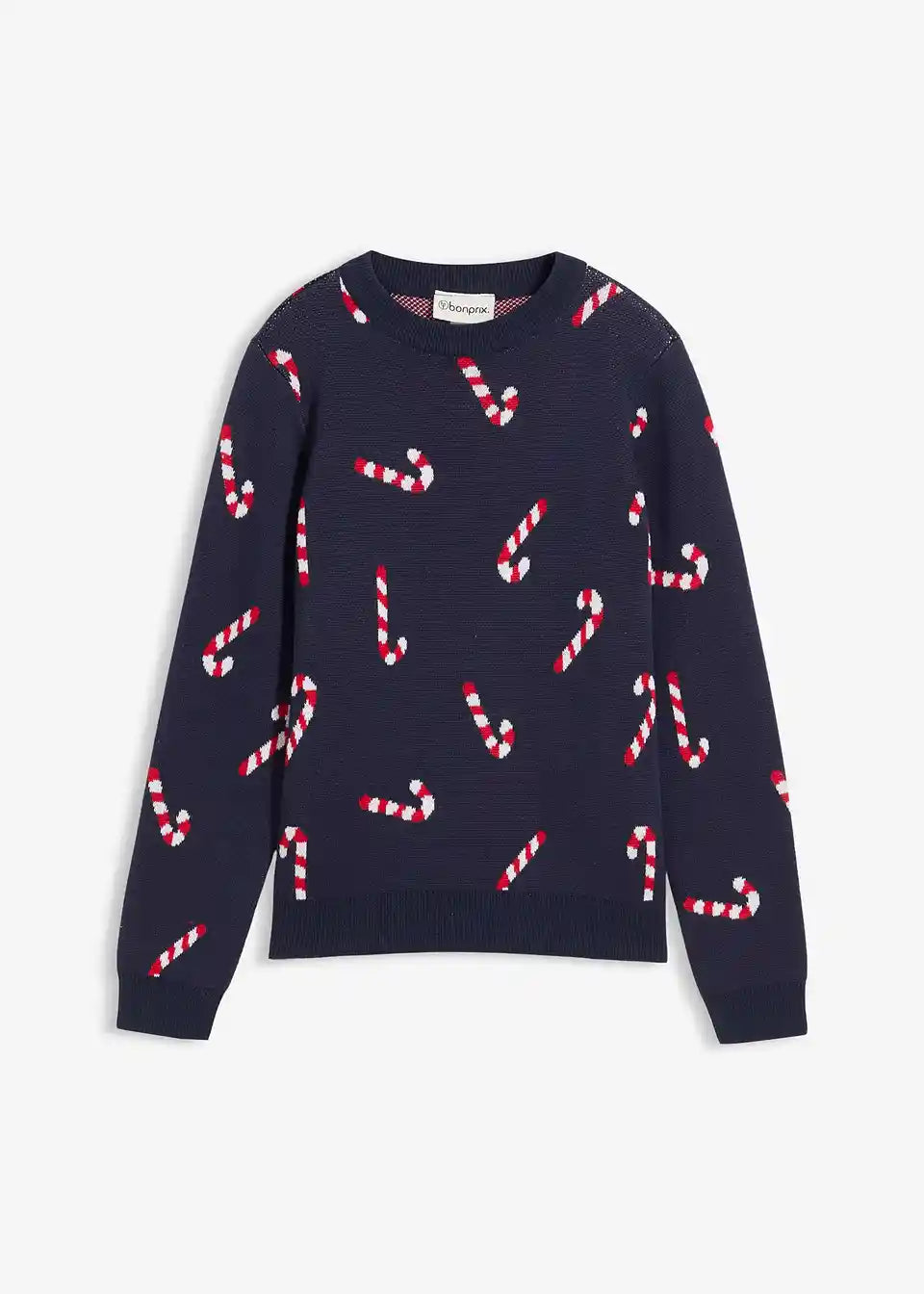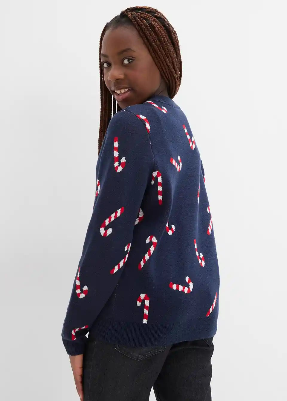 Dieser bezaubernde Weihnachtspullover bringt festliche Stimmung in die kalte Jahreszeit! Mit einem hohen runden Halsausschnitt und langen, eingesetzten Ärmeln bietet er eine bequeme Passform, die bis zur Hüfte reicht.Der Pullover ist mit einem Allover-Jacquard-Muster verziert, das fröhliche Zuckerstangen zeigt, und sorgt für einen echten Hingucker. Die Rippabschlüsse an den Ärmeln und am Saum runden das Design ab. Ideal für Weihnachtsfeiern oder gemütliche Feiertage – einfach anziehen und genießen!