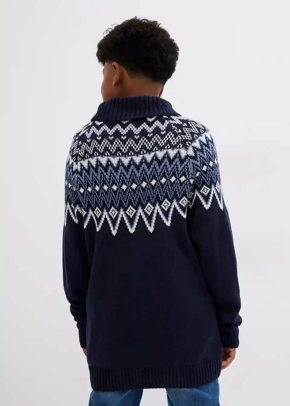 Warmer Norweger-Pullover mit Rollkragen und Ripp-Bündchen