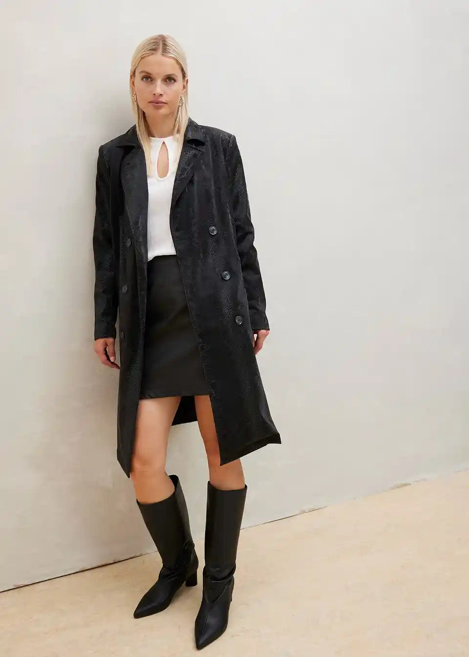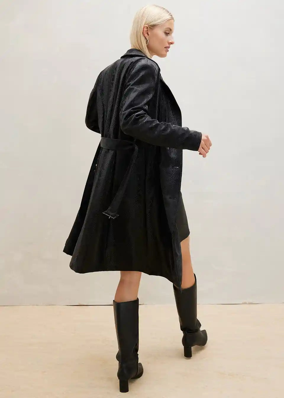 Moderne Doppelreihiger Trenchcoat in Schlangen Optik