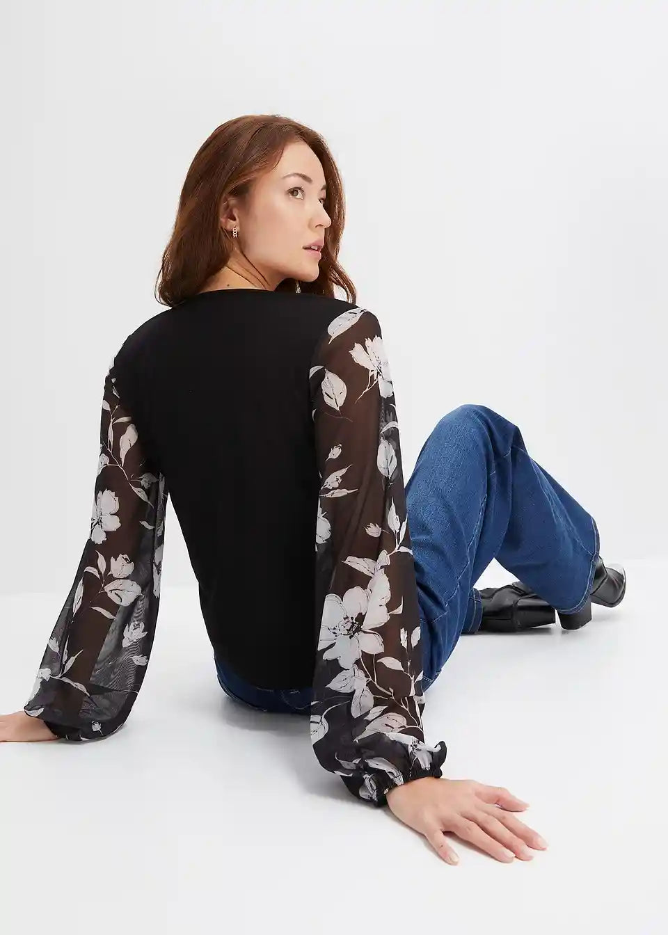 Modisches Shirt aus nachhaltiger Viskose. Die weiten Ärmel aus schönem Mesh sind leicht transparent.