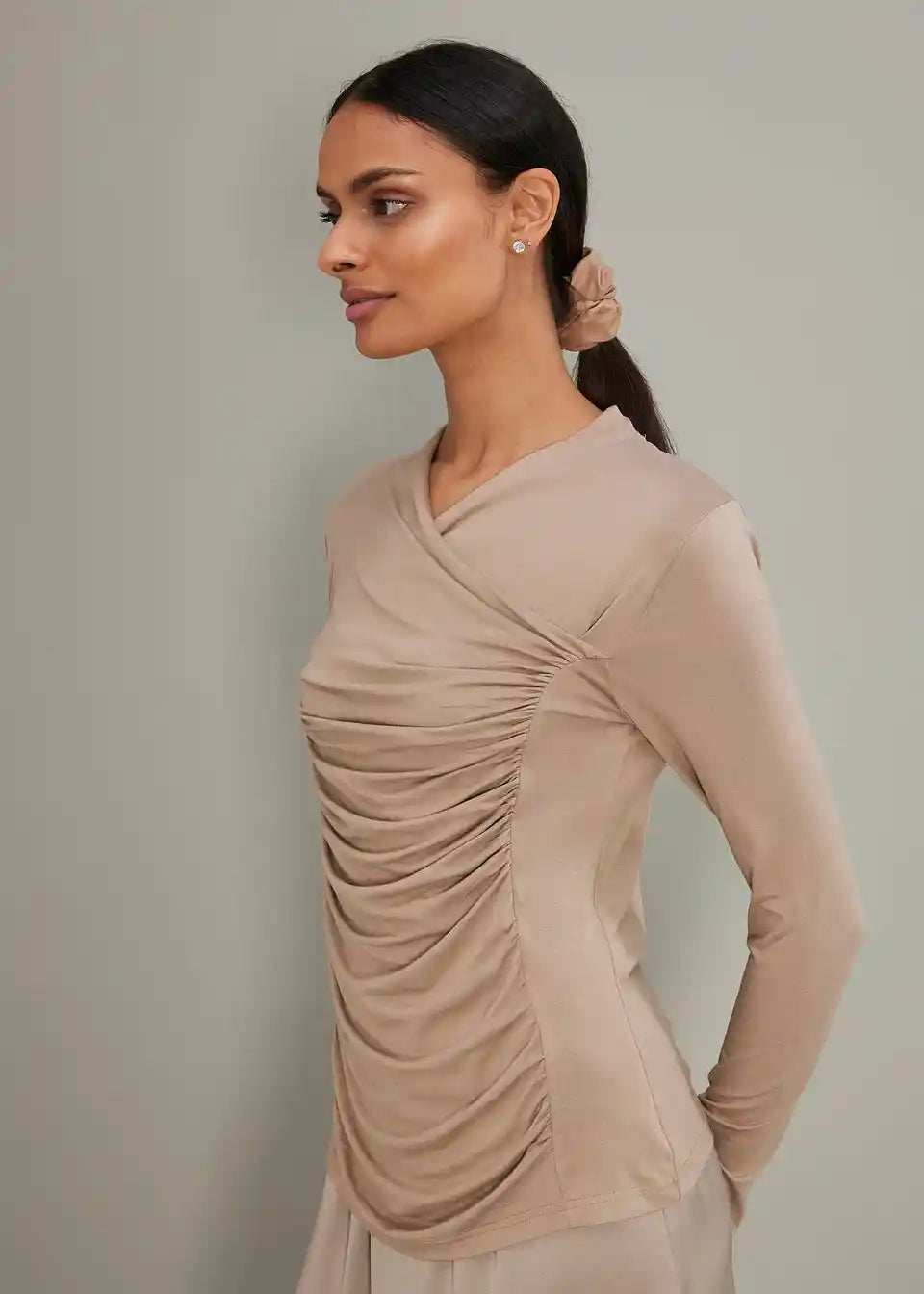 Feminines Langarmshirt mit schönen Raffungen, figurnahe Passform.