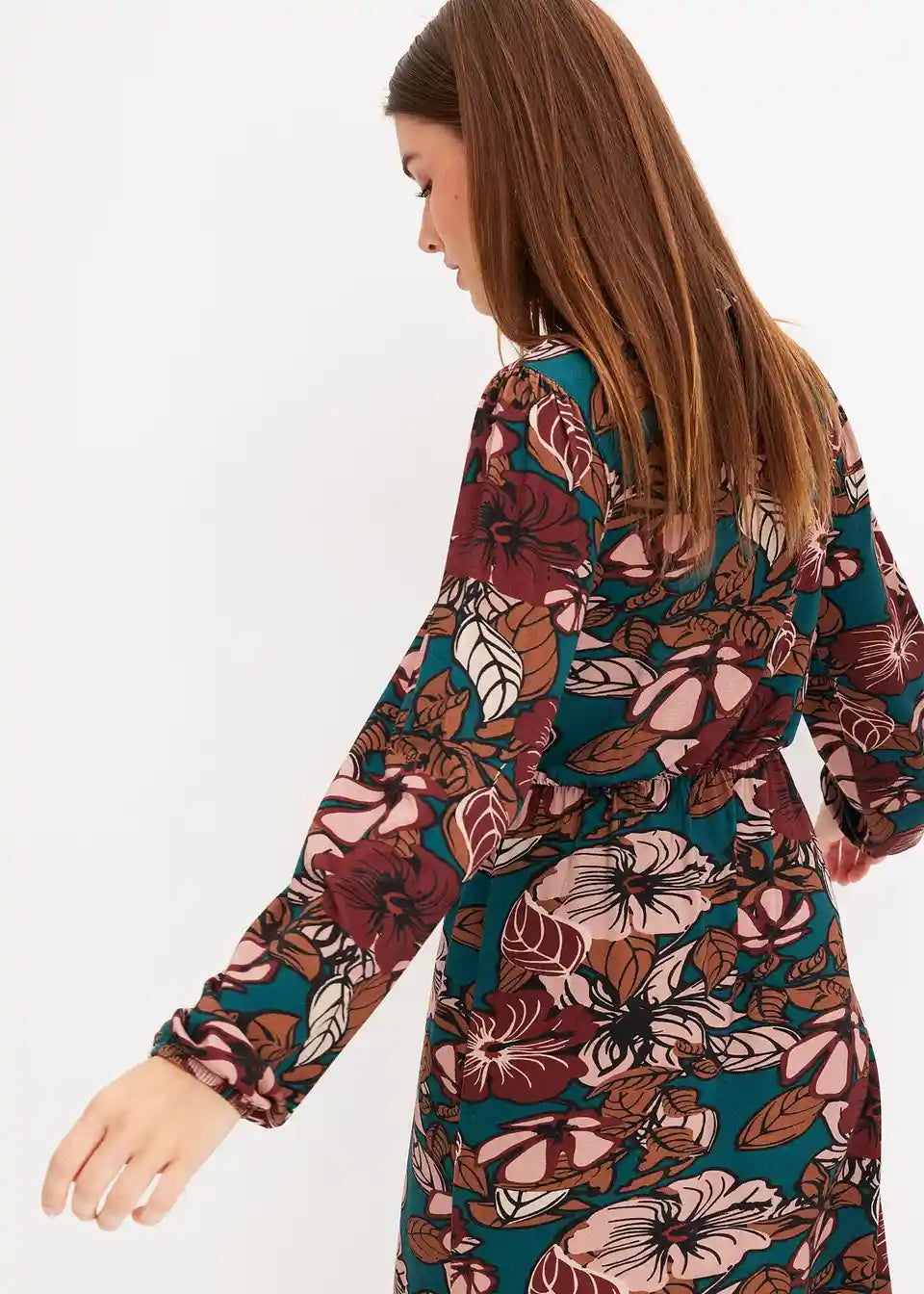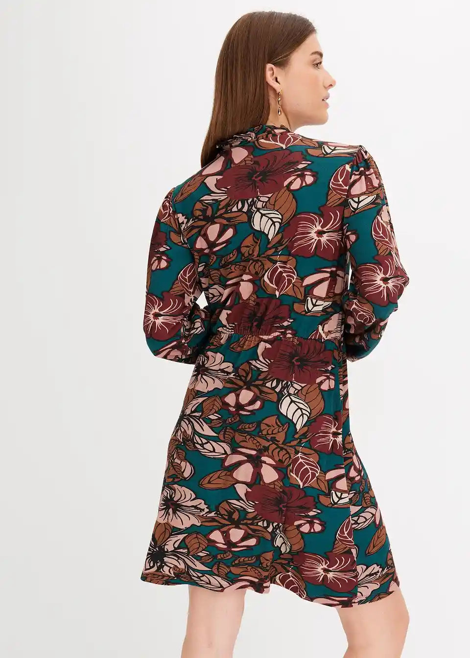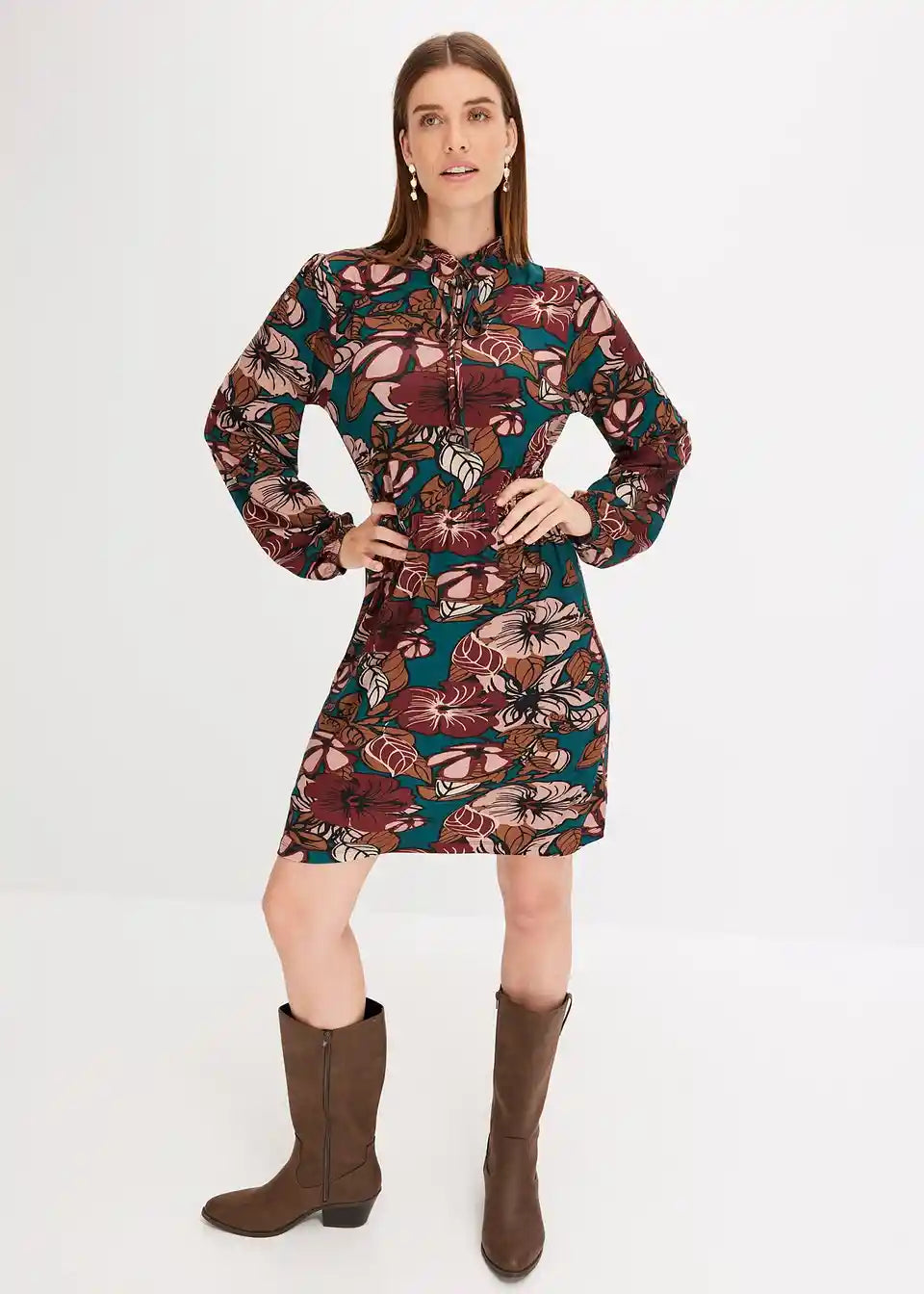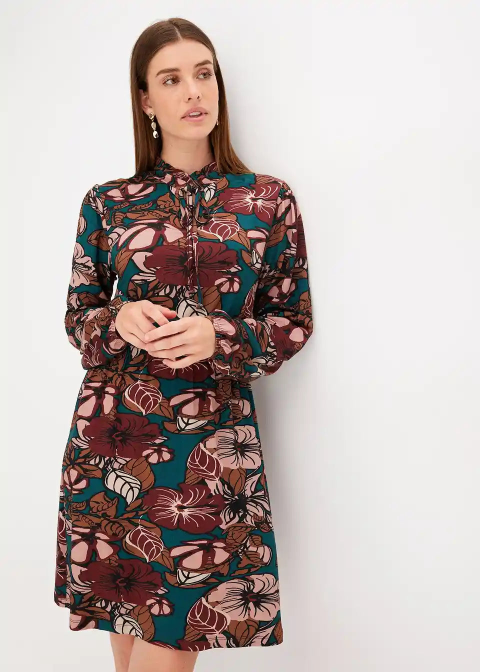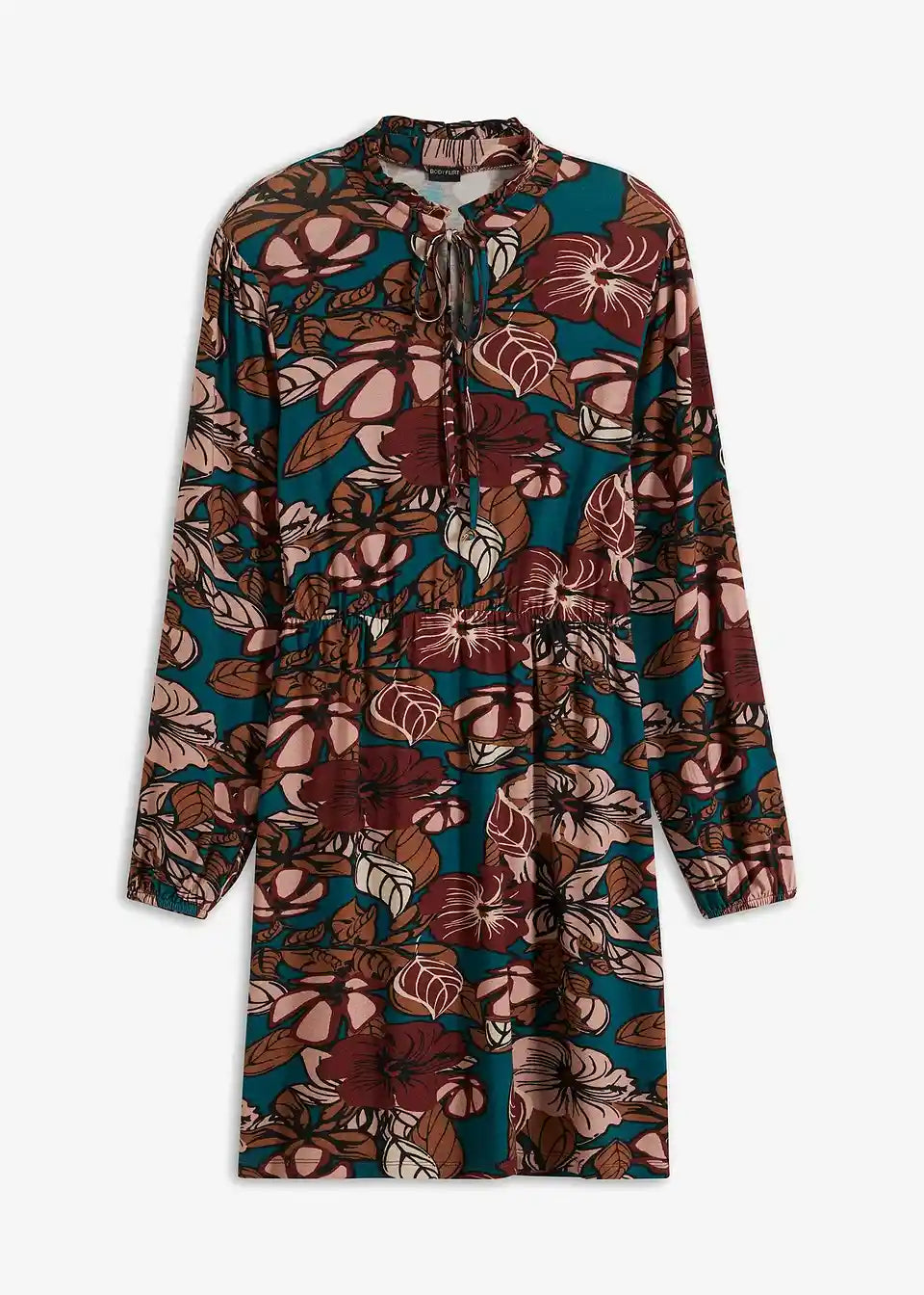 bedrucktes Kleid mit Bindebändern am Ausschnitt