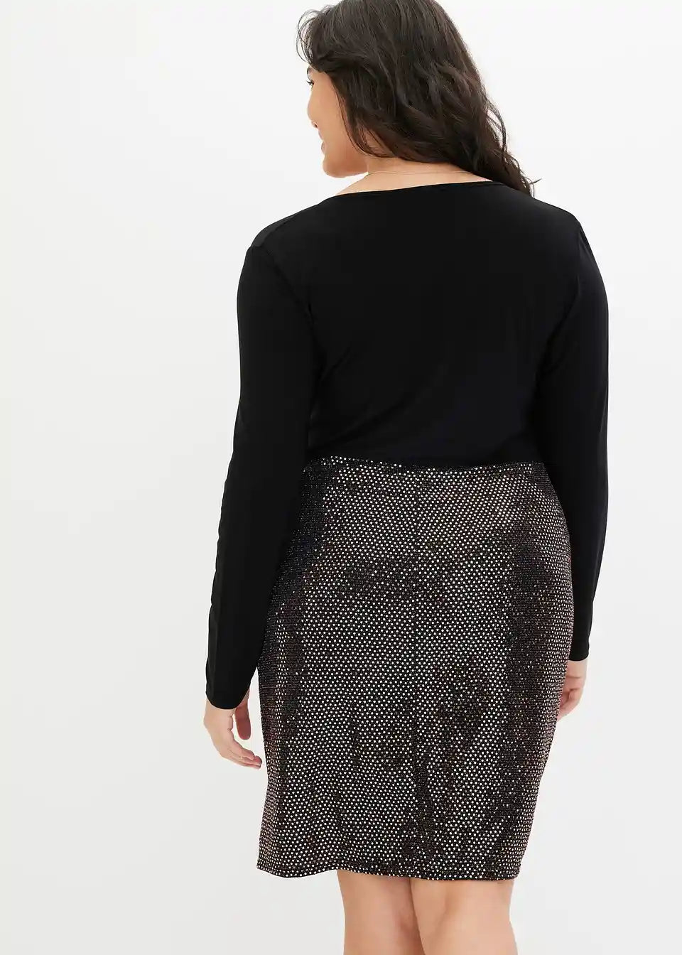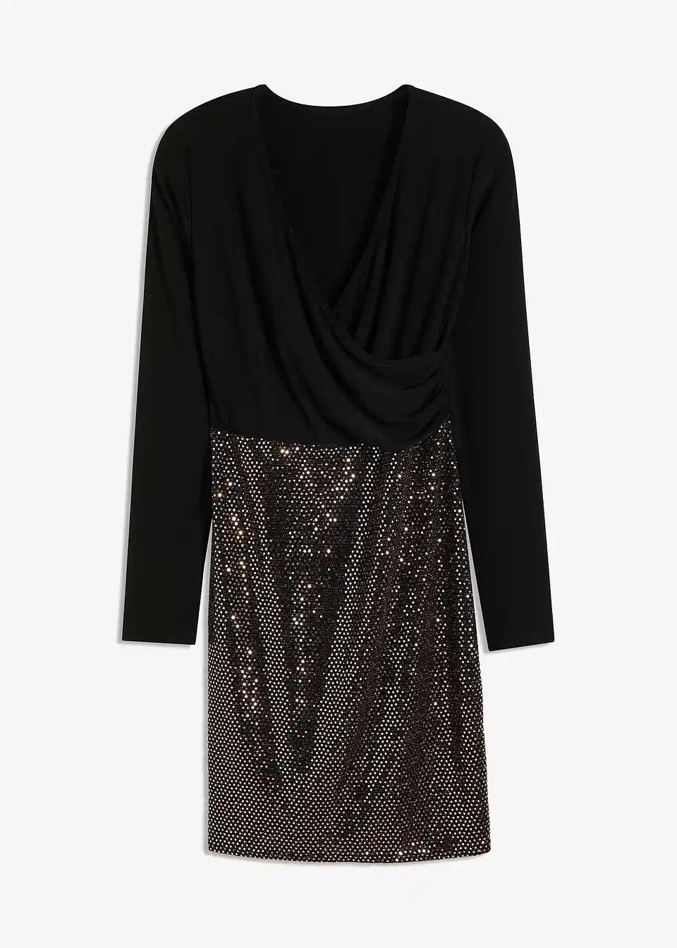 modisches Kleid mit Pailletten am Rock und tiefem V-Ausschnitt vorne