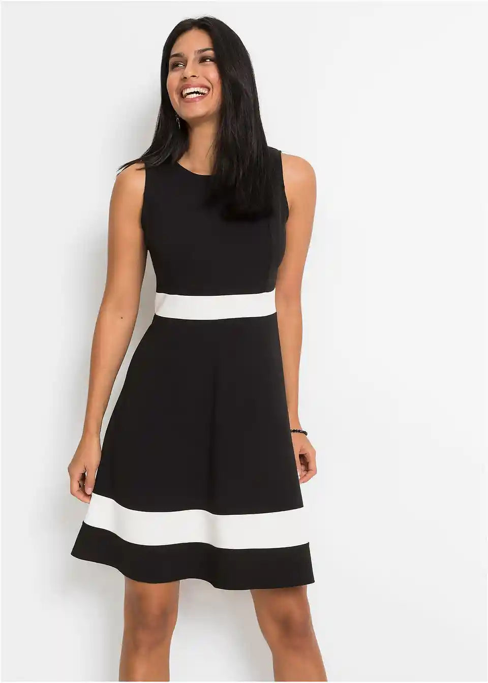 Modernes Kleid von BODYFLIRT. Das figurbetonte Kleid ist mit einem ausgestellten Rockteil gefertigt. Länge in Gr. 36/38 ca. 94 cm.
