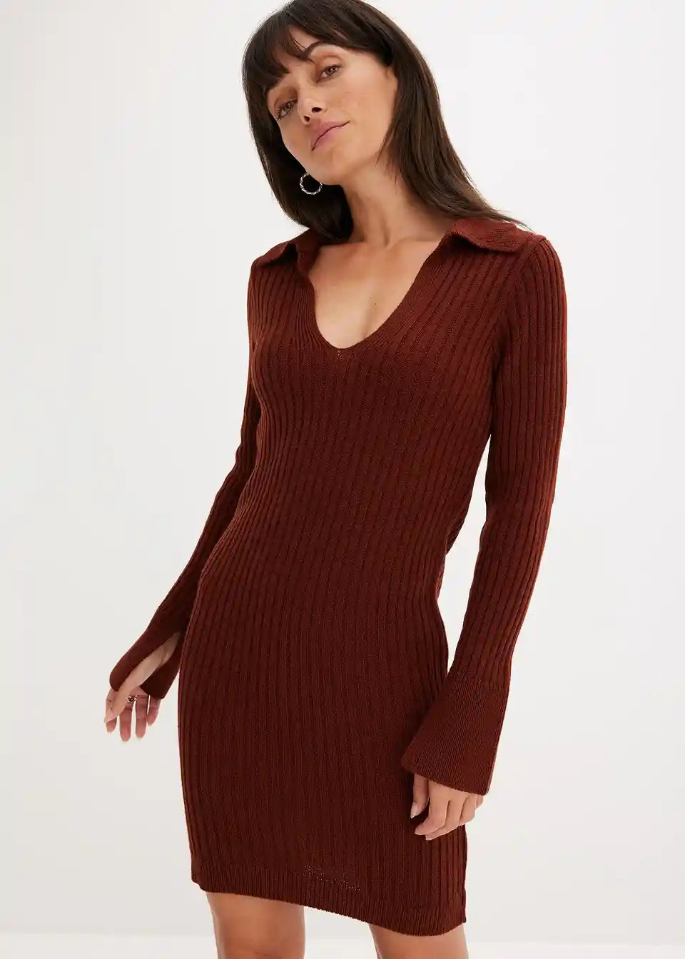 modisches Strickkleid mit Polo-Kragen