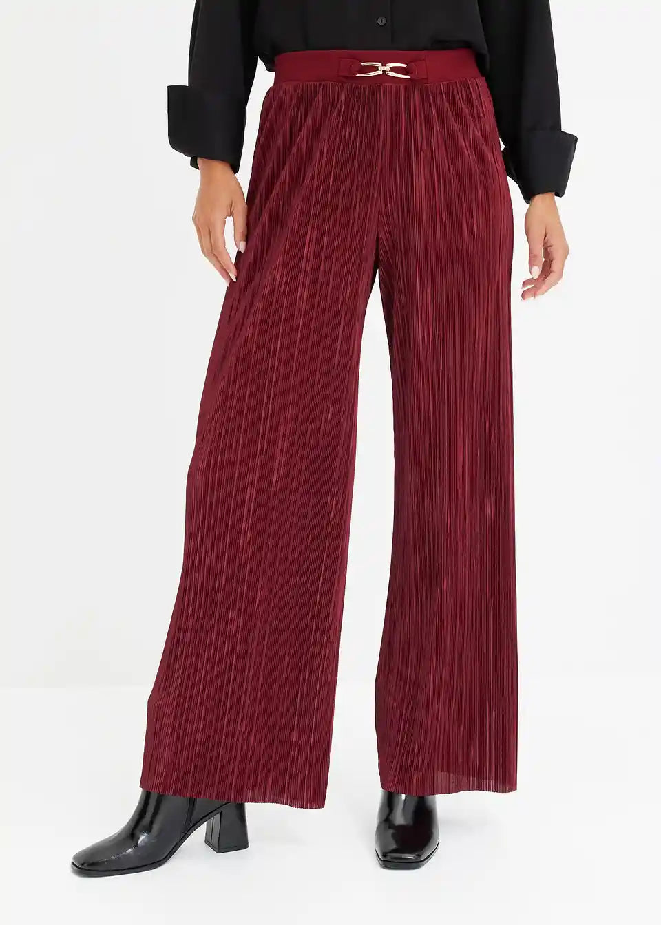 modische Plissée-Hose mit dekorativer Schnalle vorne am Bund