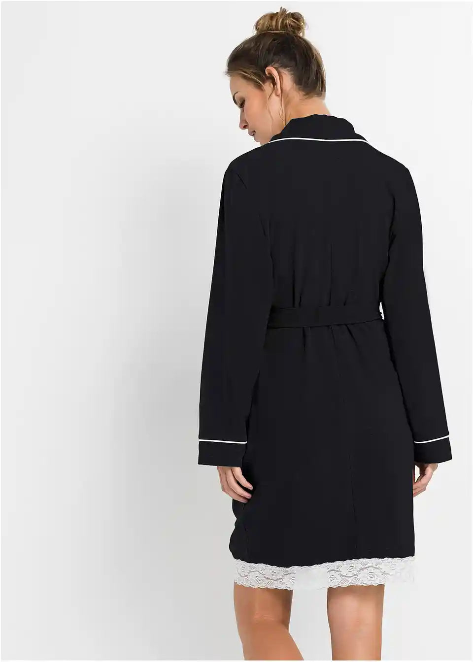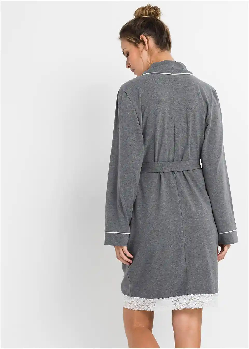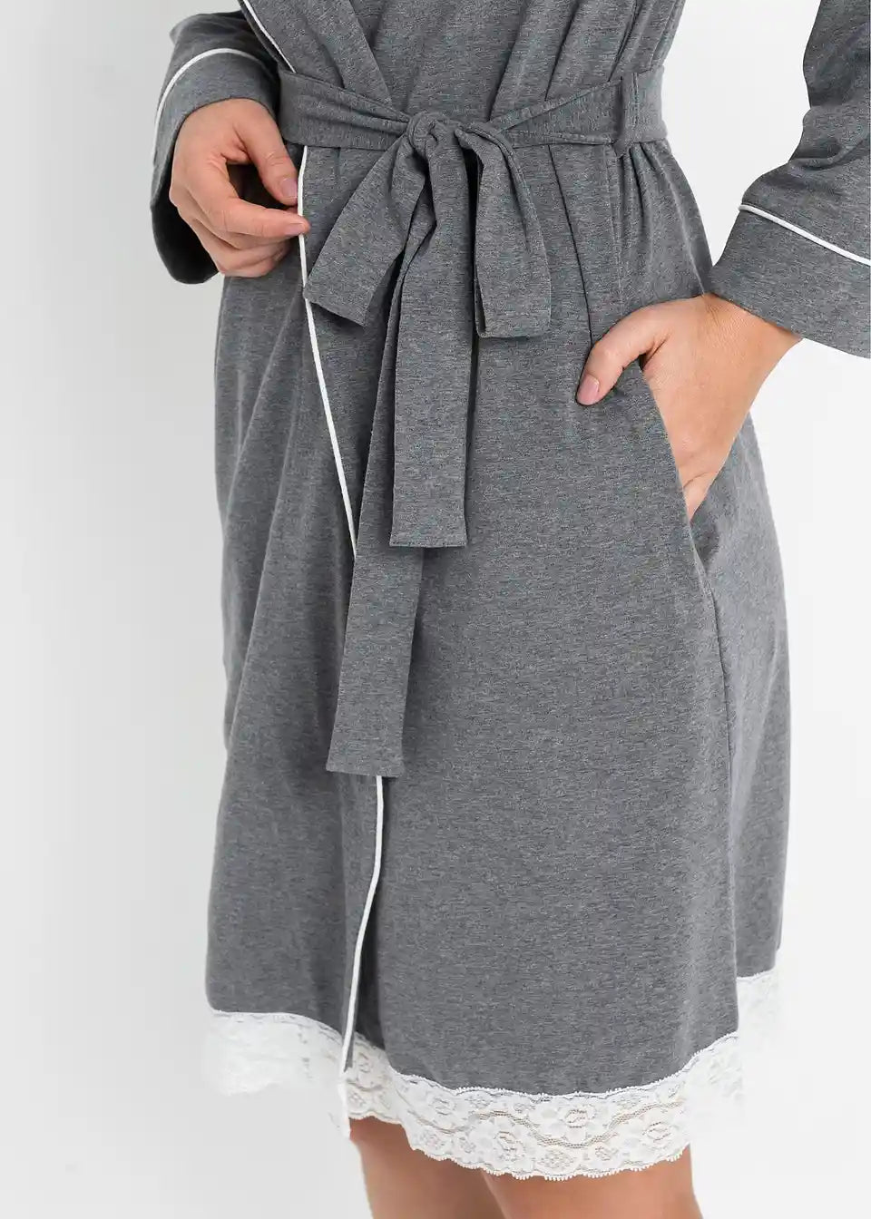 Schlichter Morgenmantel mit dekorativer Spitze am Saum