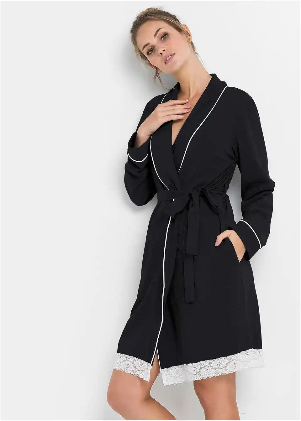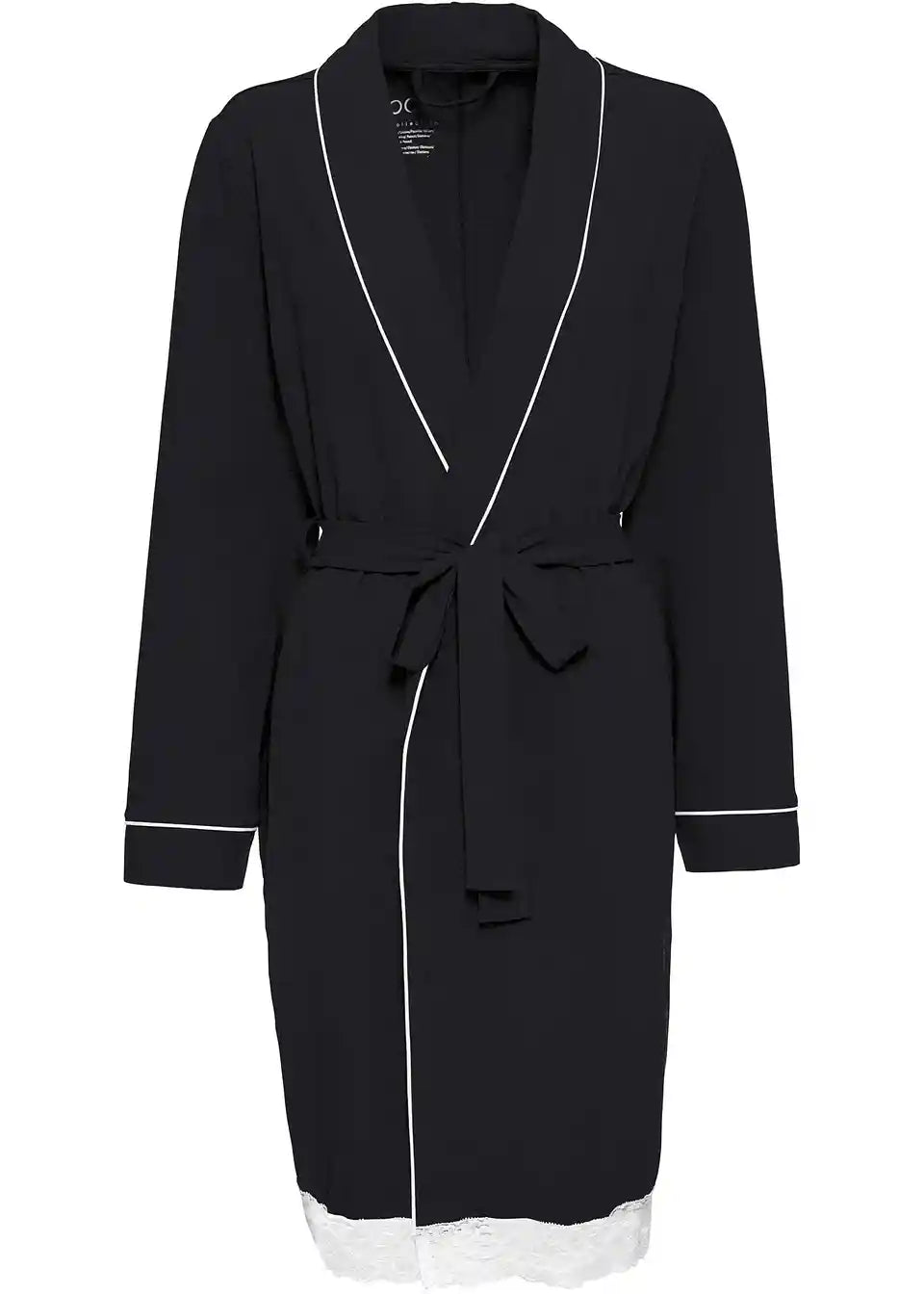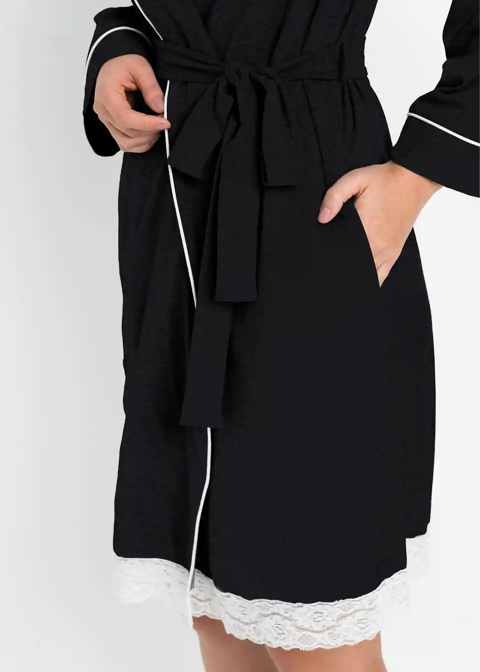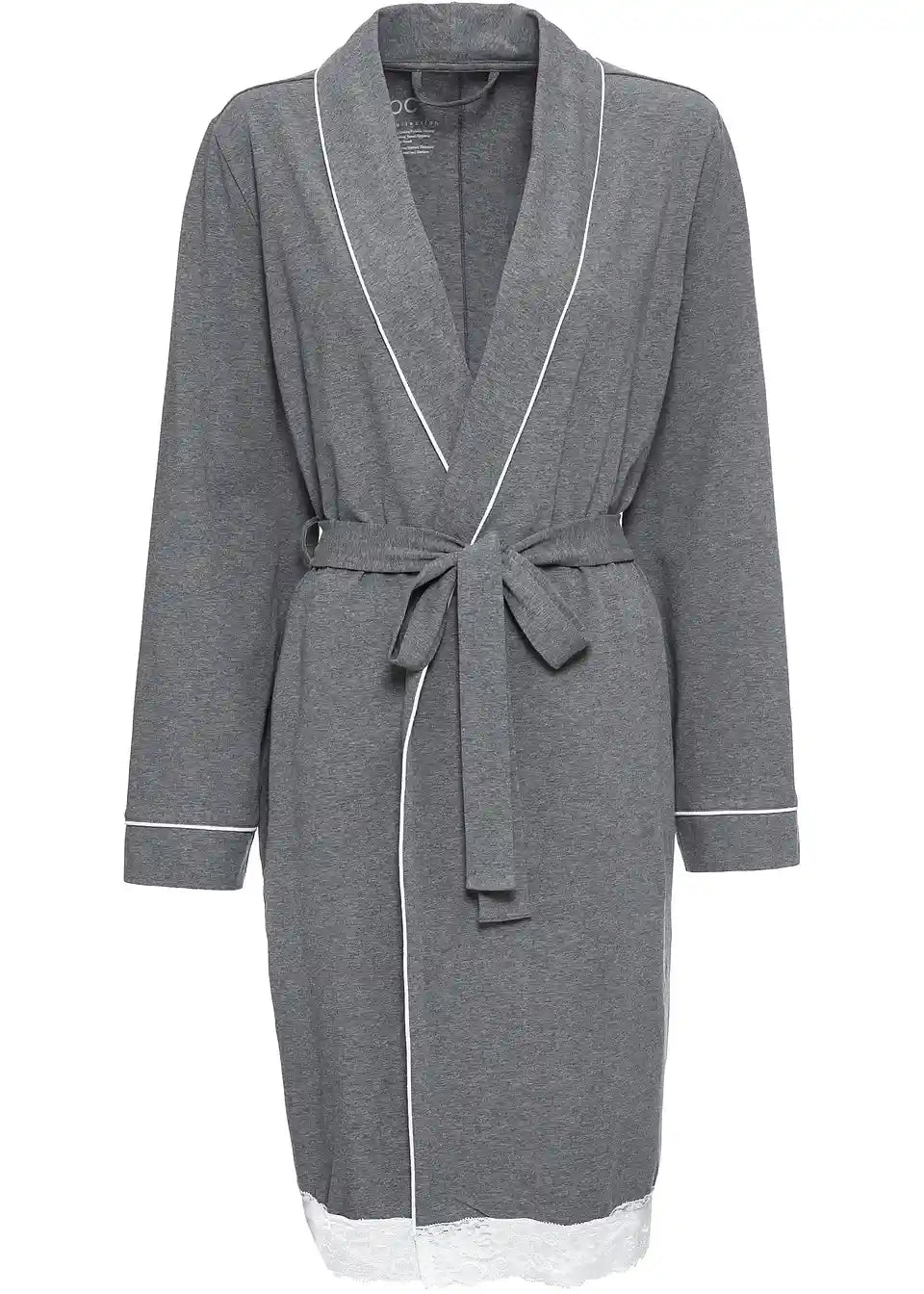 Schlichter Morgenmantel mit dekorativer Spitze am Saum
