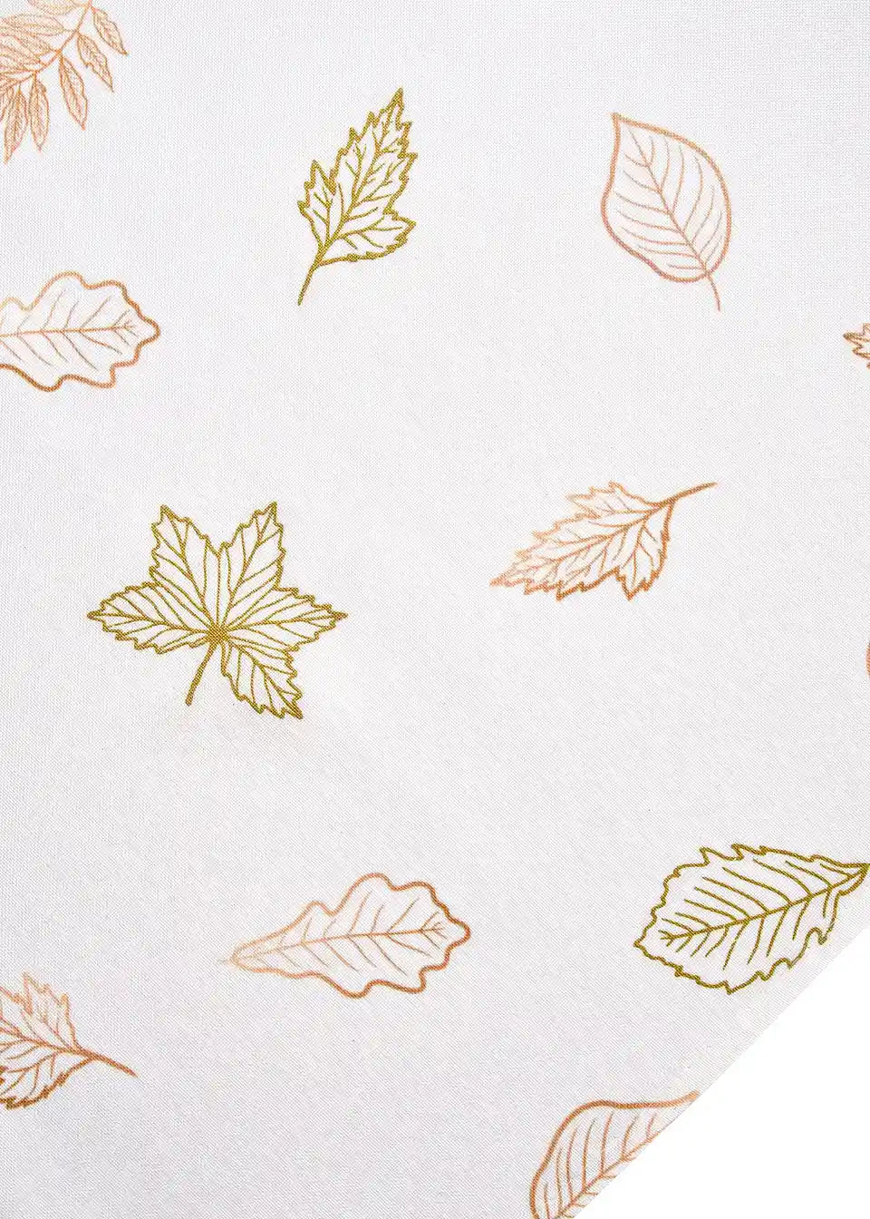 Dieser elegante Tischläufer schmückt Deine Tafel auf besondere Art. Der Tischläufer hat einen Blätterdruck mit Glanz.
