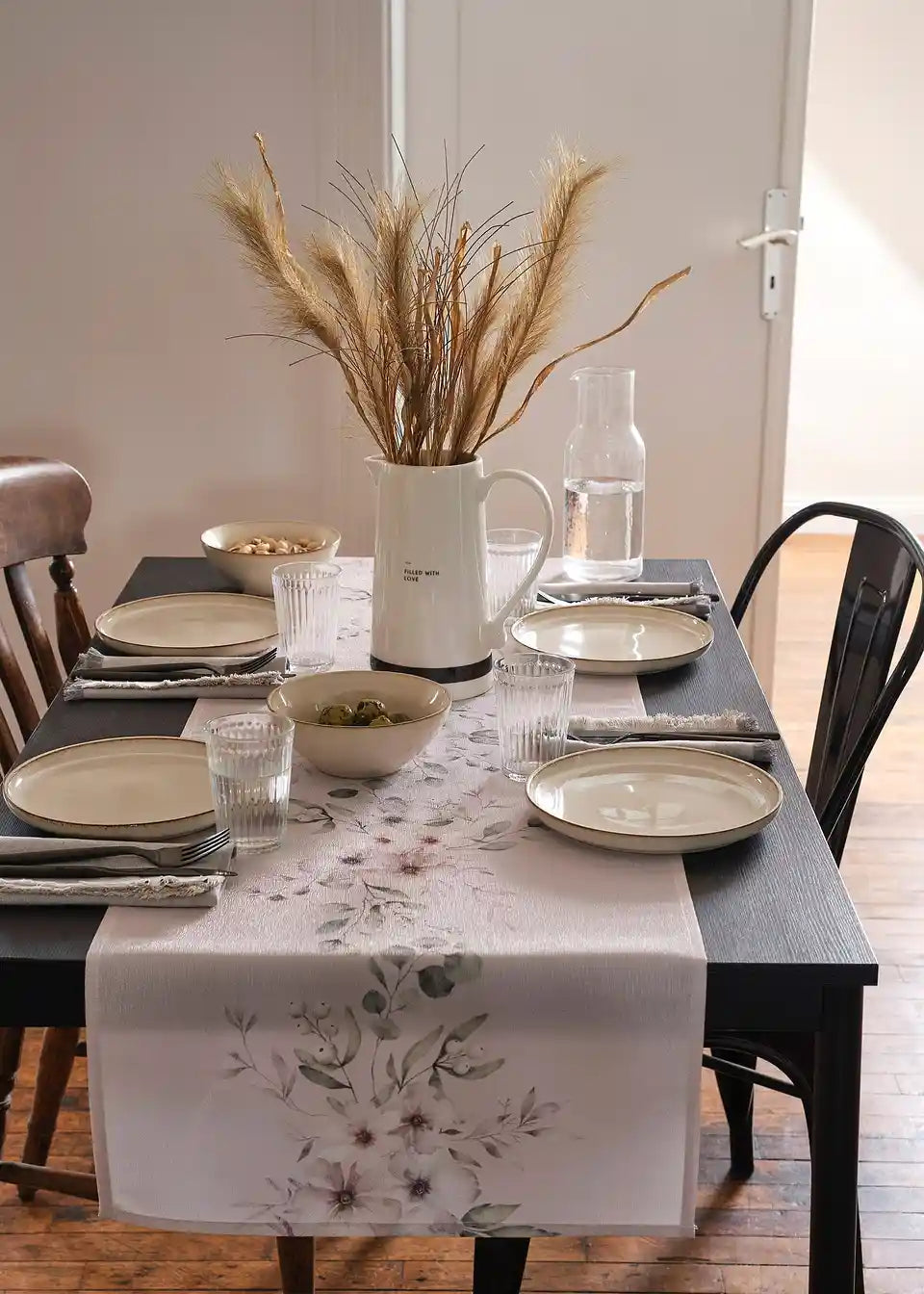 Tischläufer mit winterlichem Druck zum Abrunden Deiner Tafel.