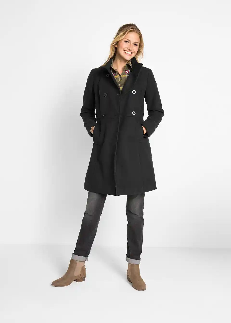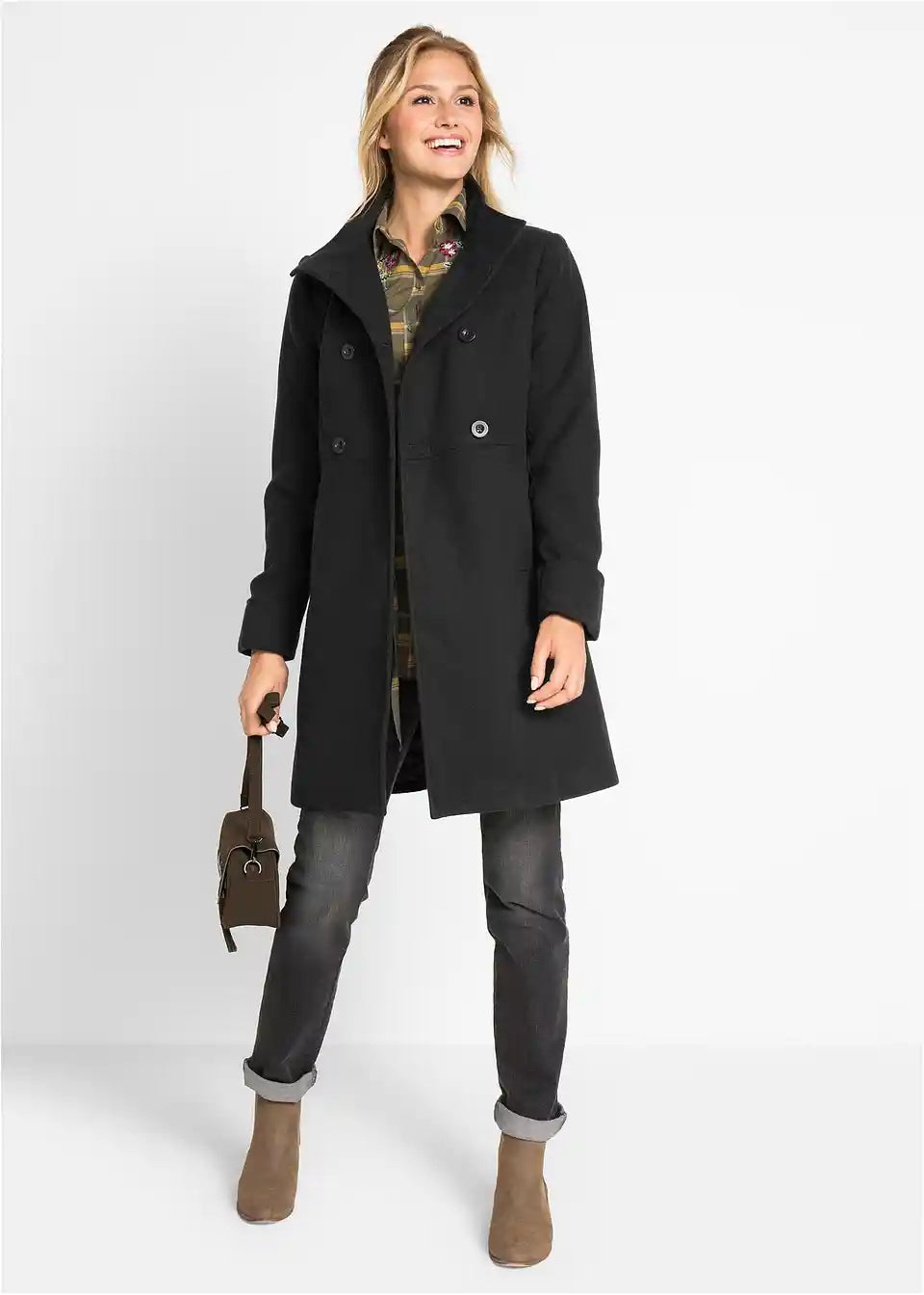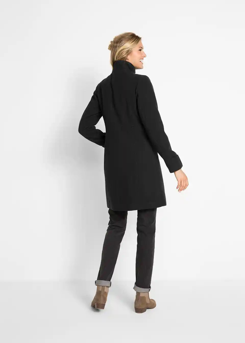 Dieser gefütterte Mantel erweitert die Garderobe um ein Kleidungsstück für viele alltagstaugliche Kombinationen. Optisch überzeugt der Mantel mit seinen dekorativen Steppnähten sowie zwei Eingrifftaschen vorne.Zu schließen ist der Mantel der Marke bpc mit farblich passenden Knöpfen. Mit seiner schönen Länge wirkt er gut zu geraden Jeans oder zu Hosen mit leicht ausgestelltem Bein.