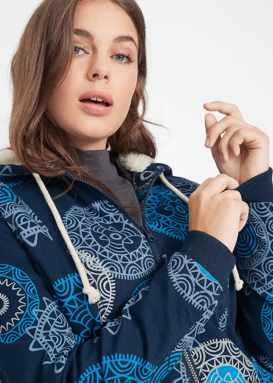 Bedruckter Baumwoll-Parka mit Kapuze