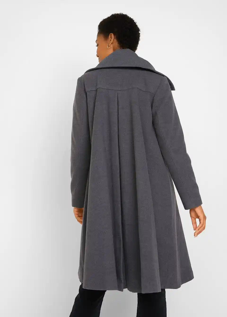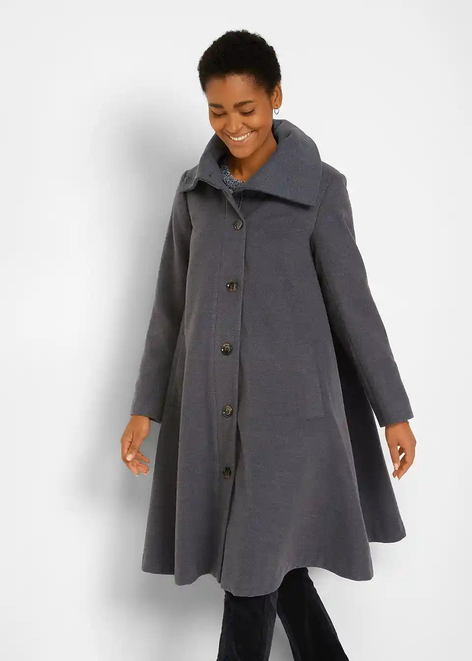 Wollimitat Mantel in A-Linie mit weitem Stehkragen