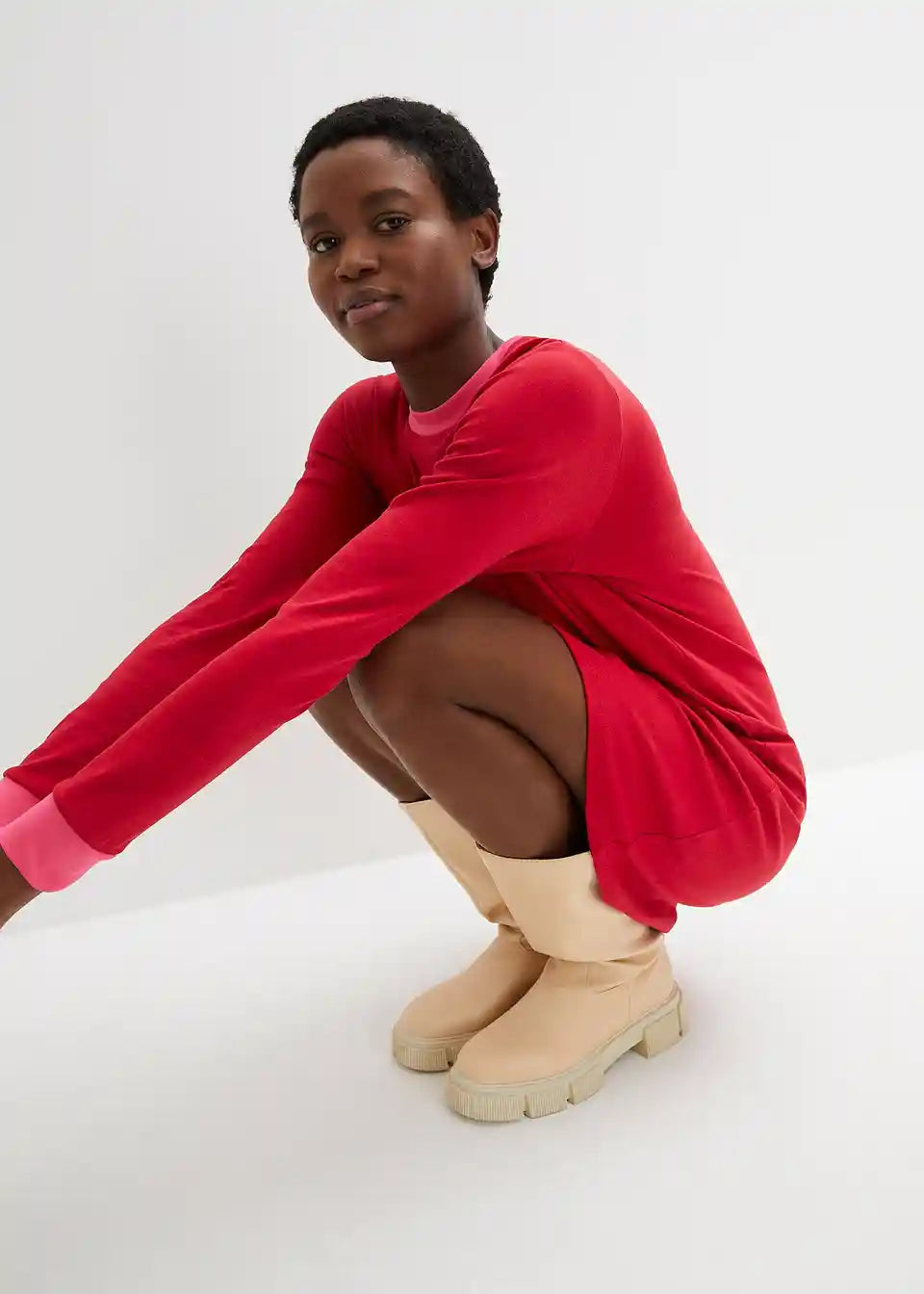 Shirtkleid mit Rundhalsausschnitt, langarm