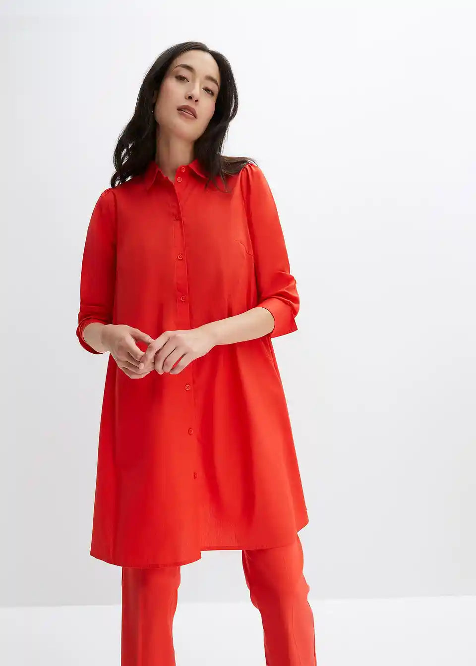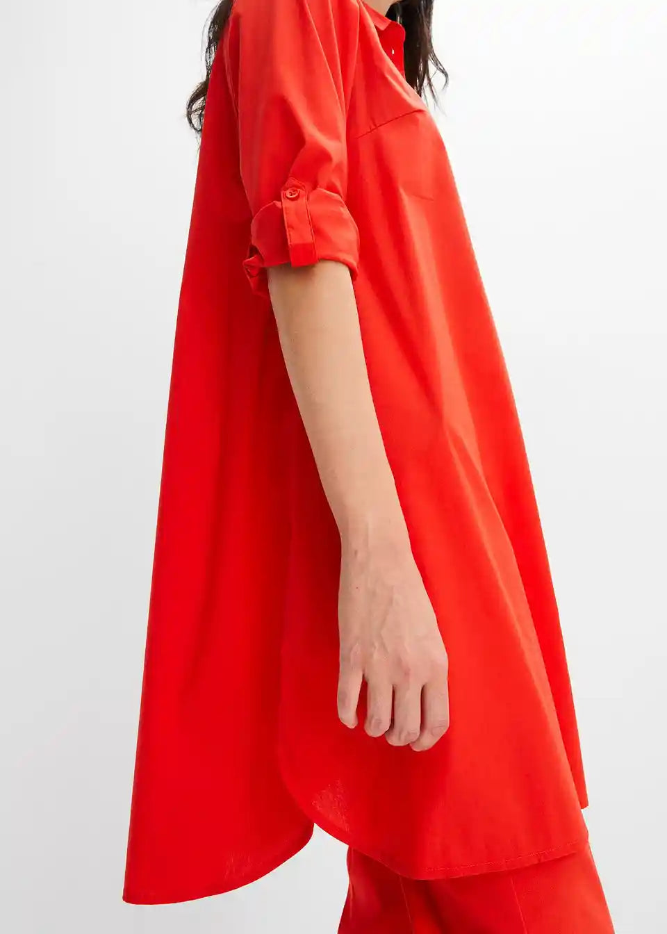 Web-Blusenkleid in A-Linie und Turn-Up-Funktion am Ärmel für individuelle Ärmellänge