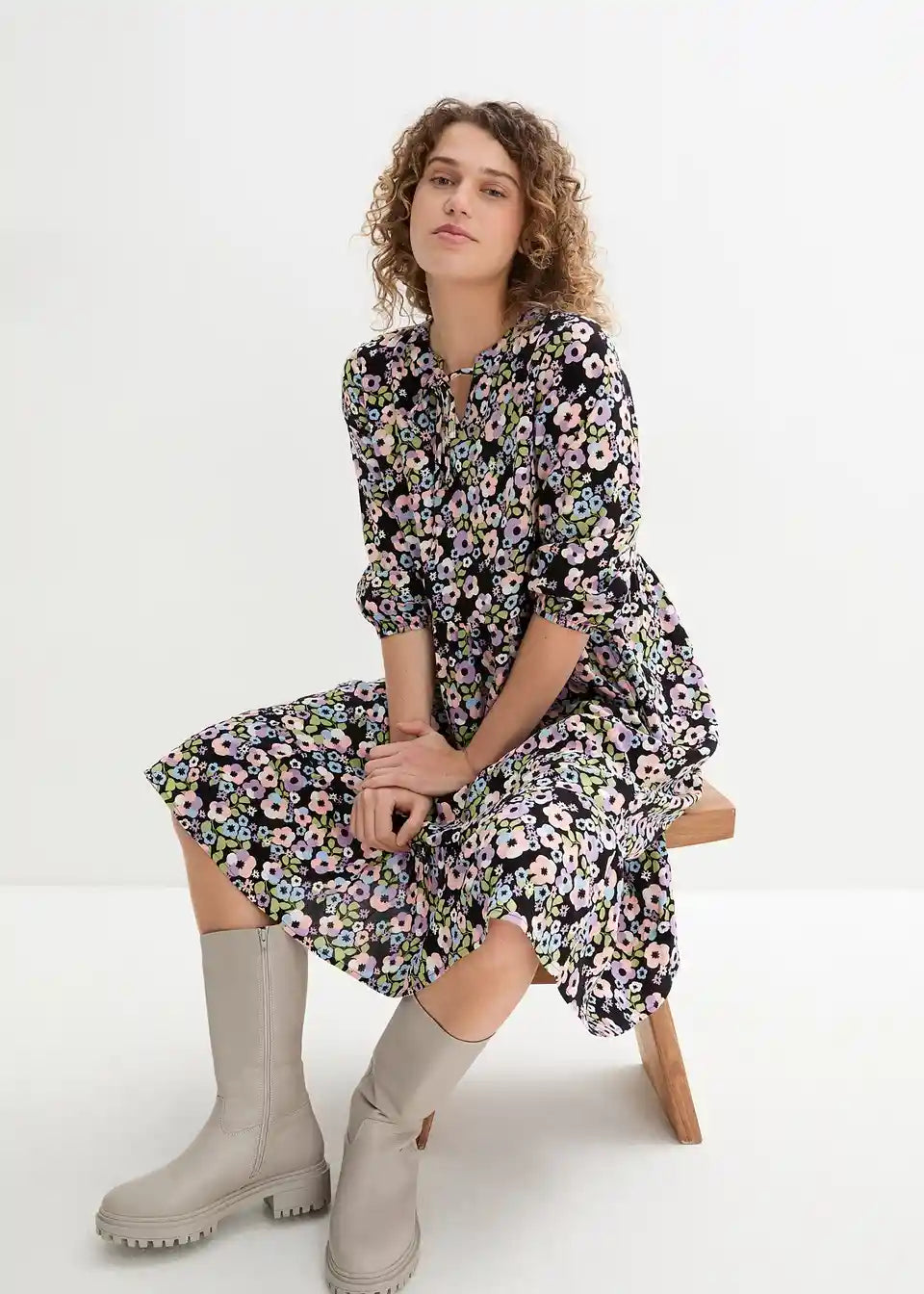 Weites Midi-Kleid bietet durch Viskose ein angenehmes Tragegefühl