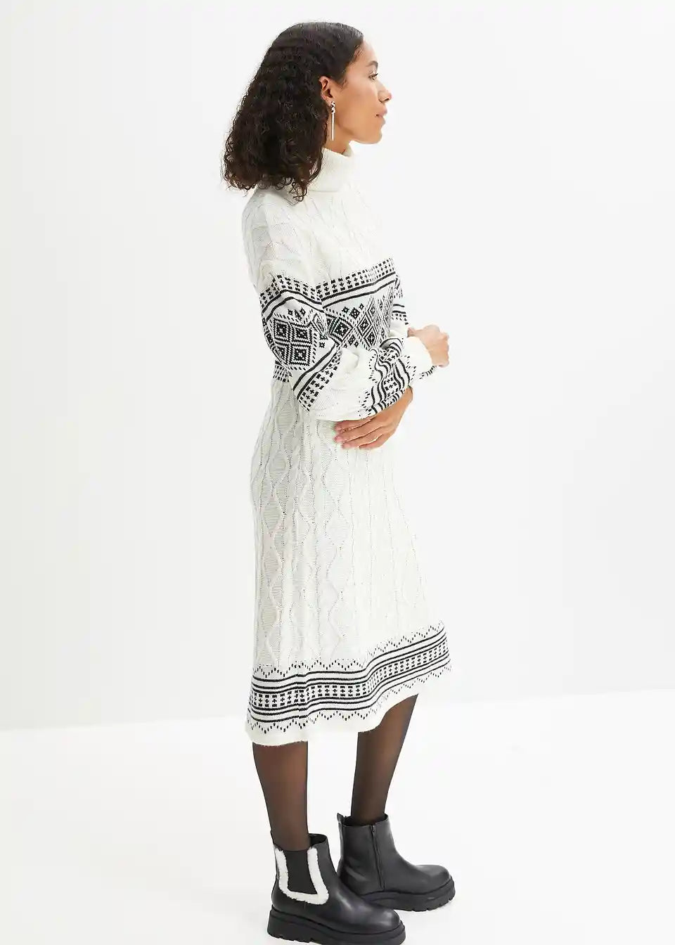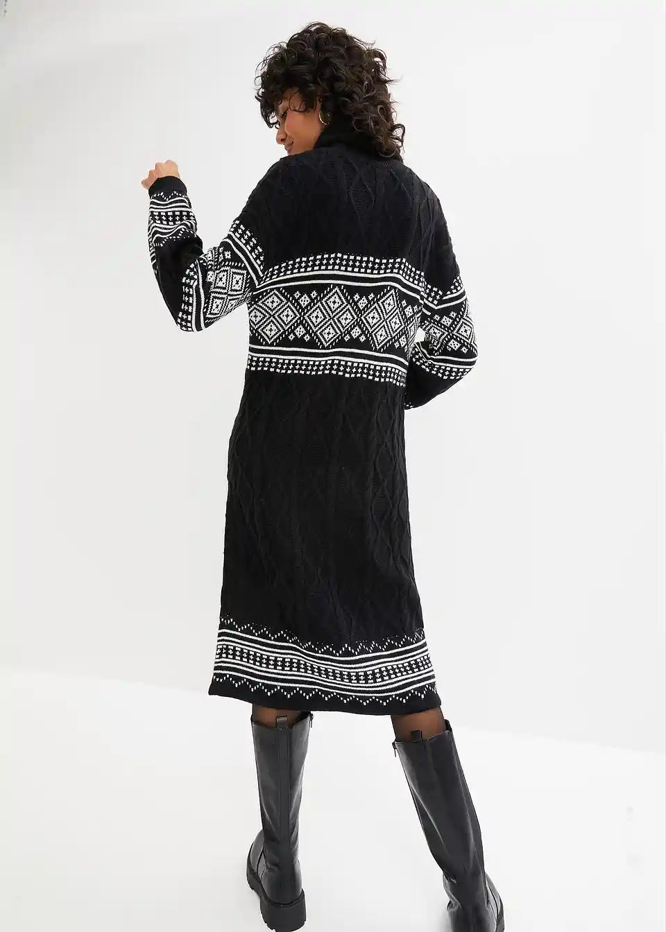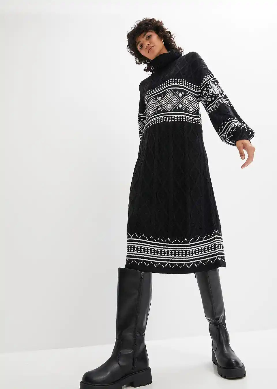 Strickkleid mit Norweger-Muster und Ballonärmeln
