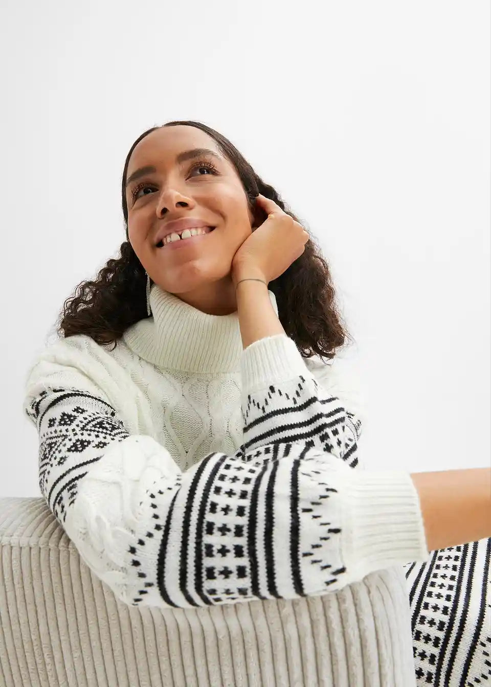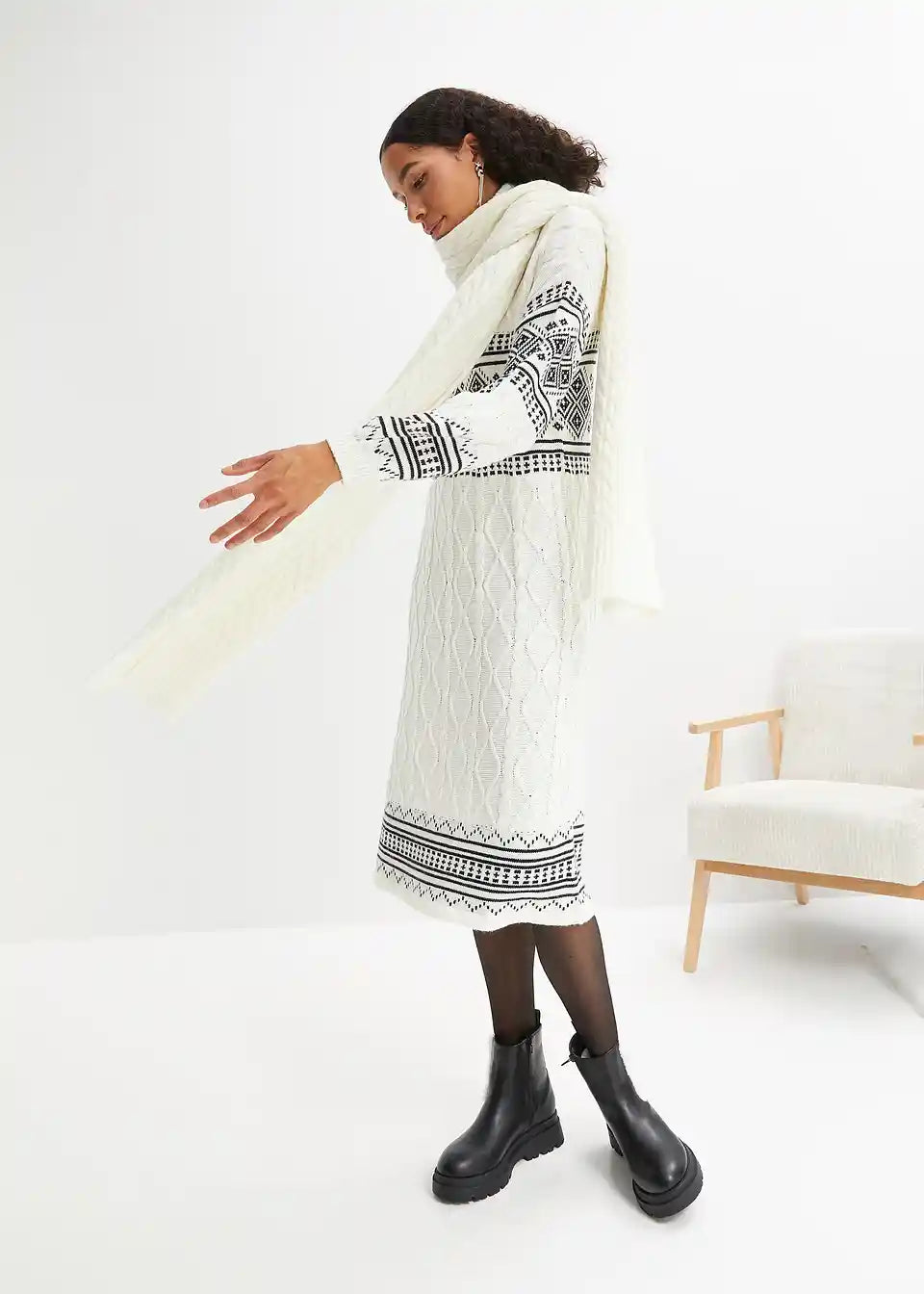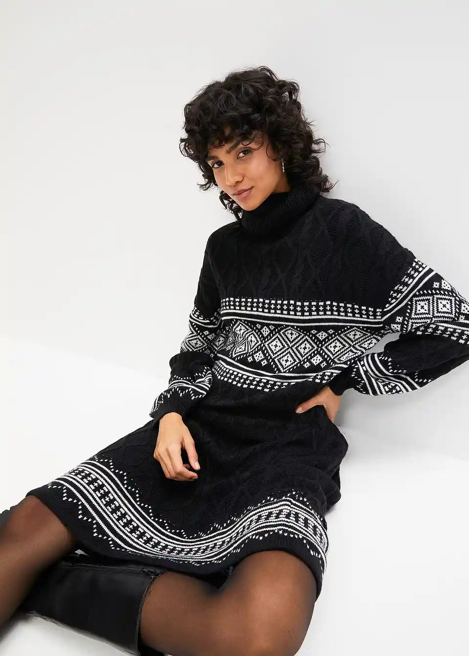 Strickkleid mit Norweger-Muster und Ballonärmeln