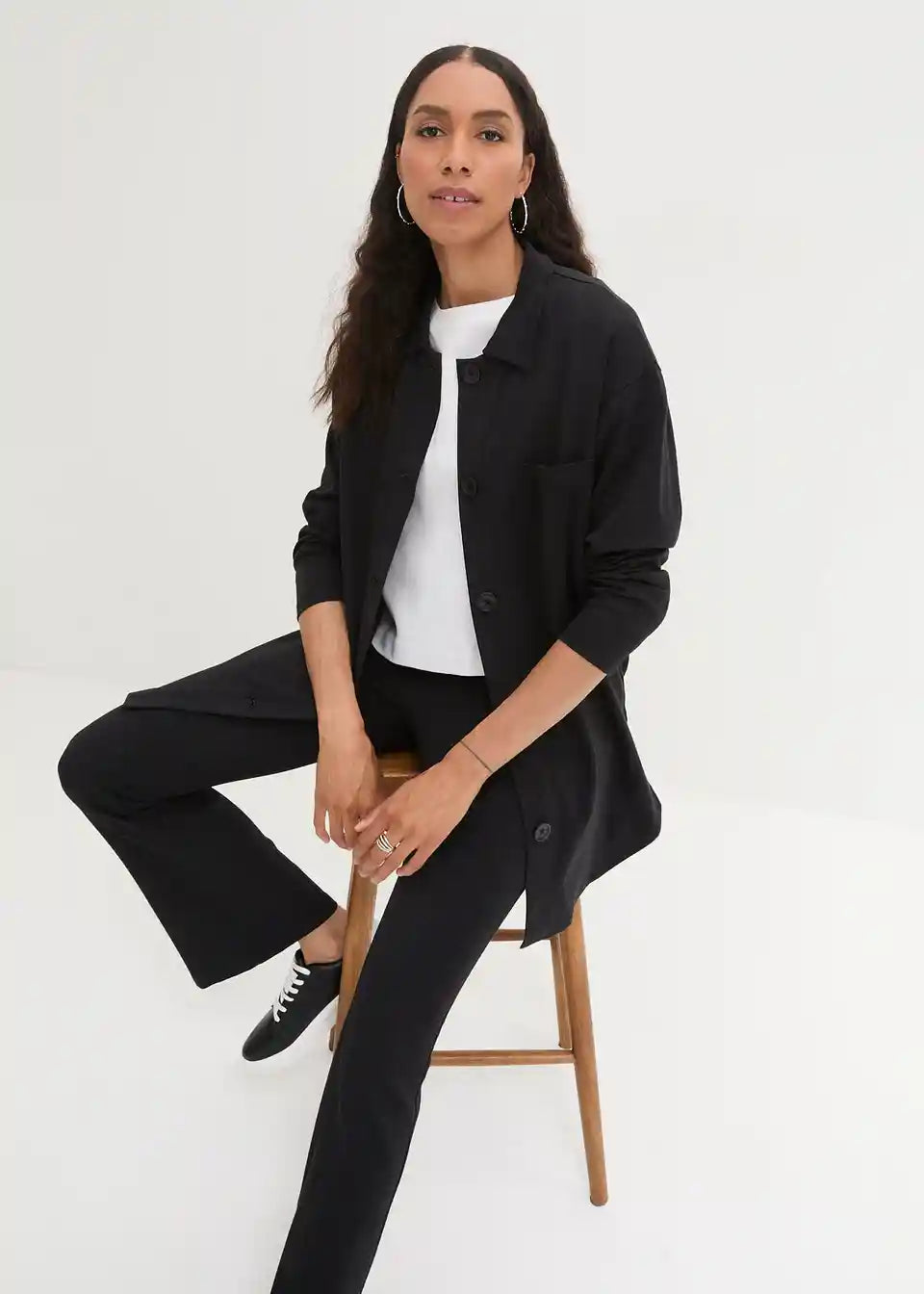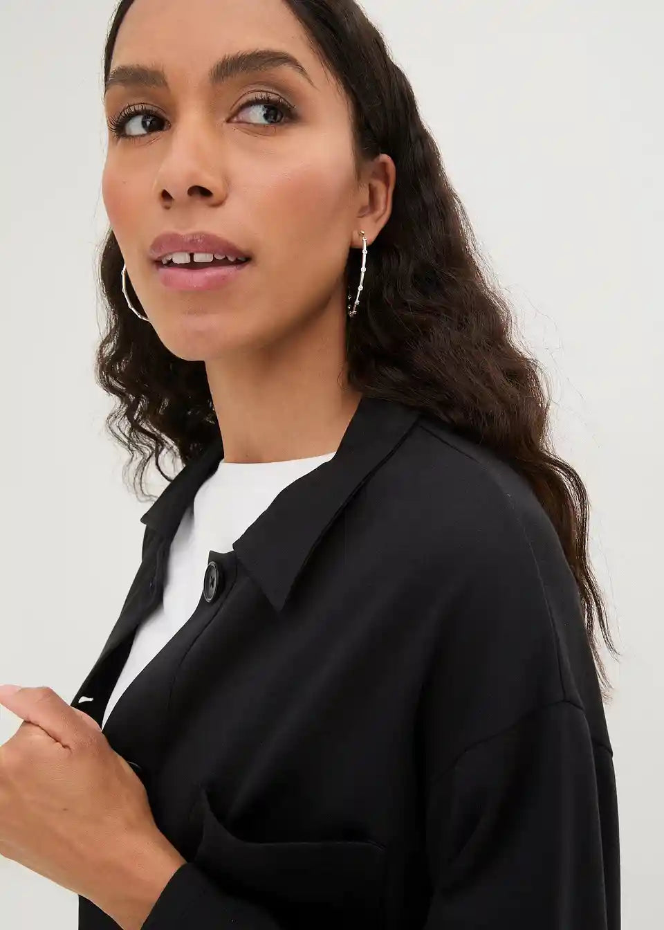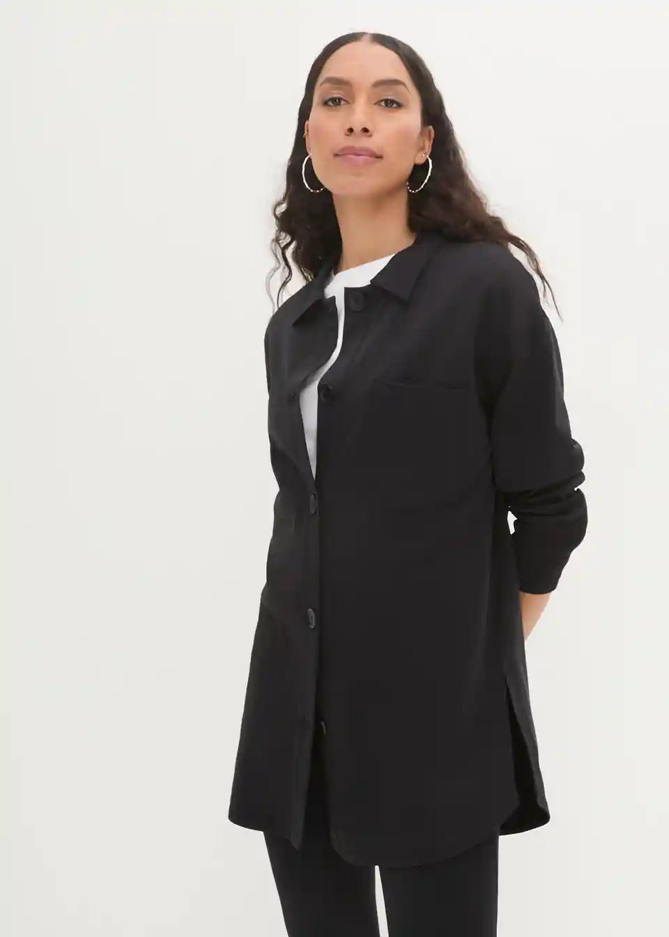 Lässiges Long-Shacket mit Knopfleiste fällt locker auf die Figur