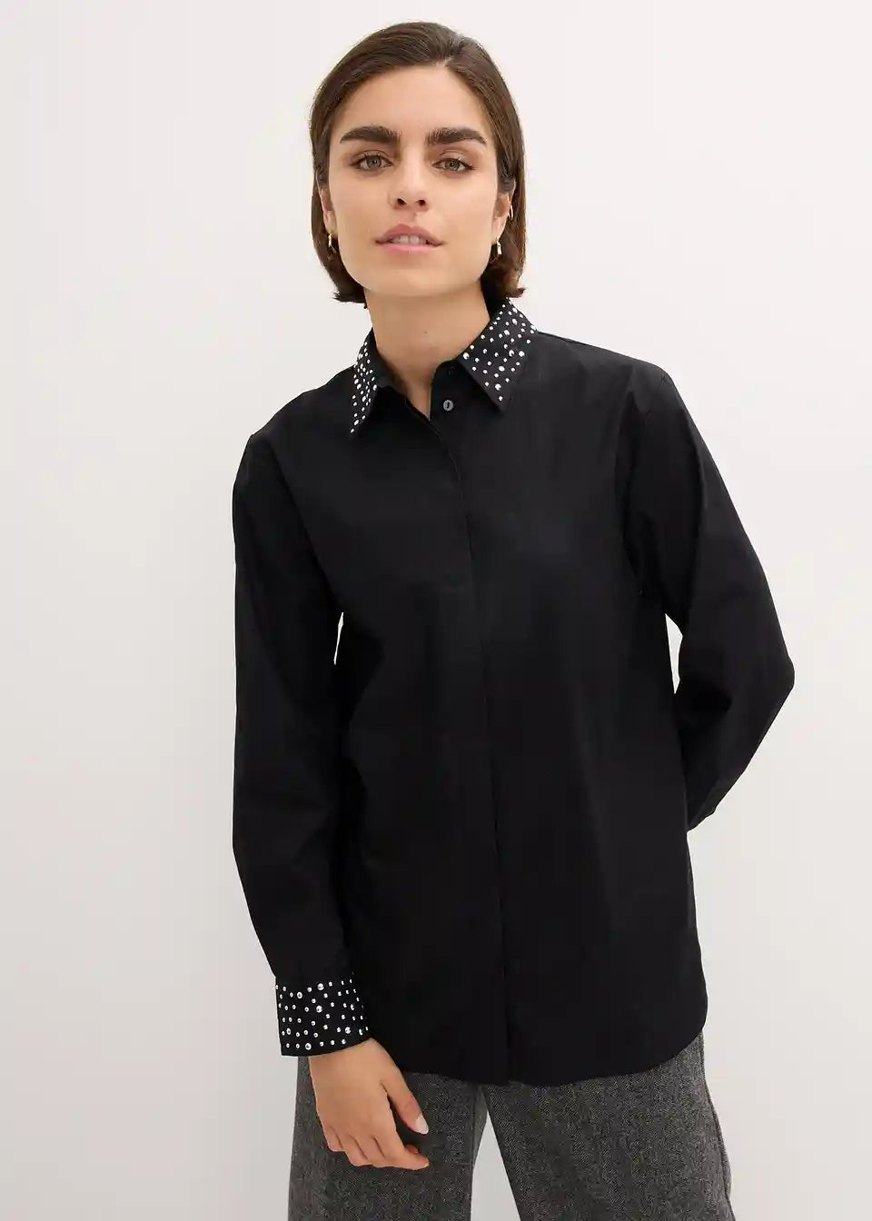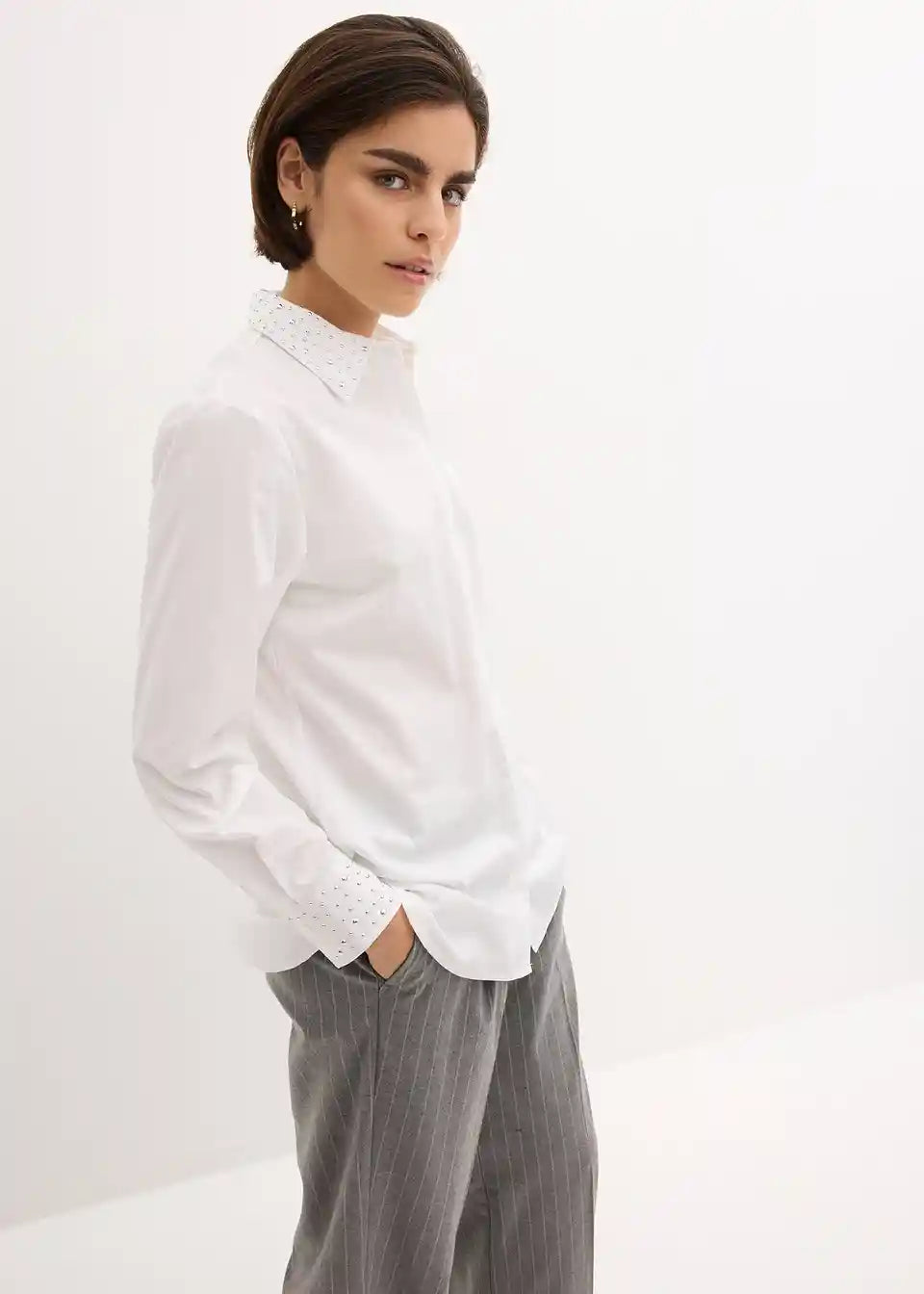 zeitlose Hemdbluse mit dekorativen Ziernieten