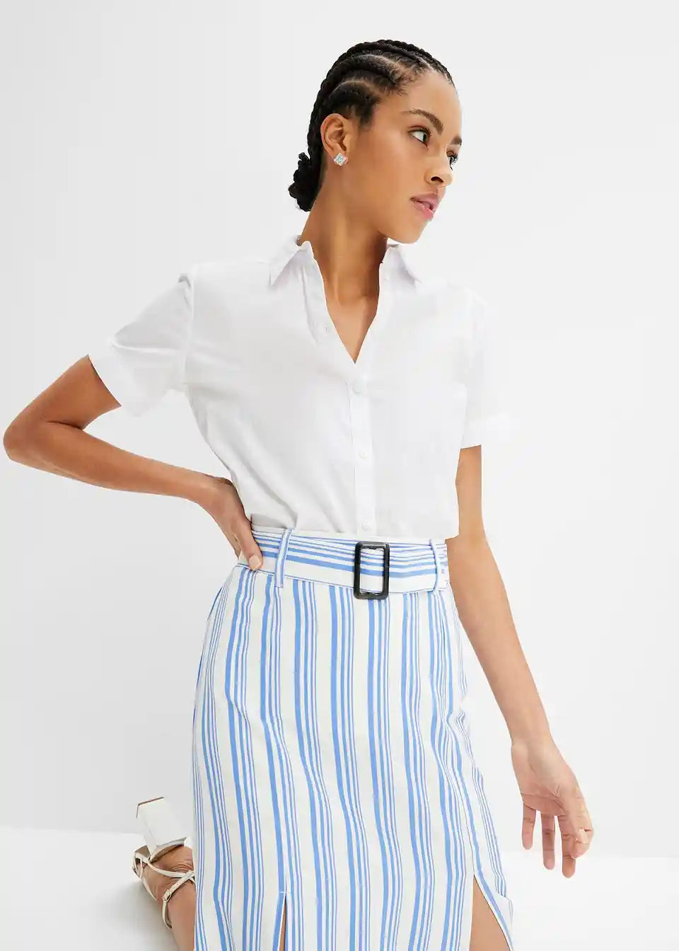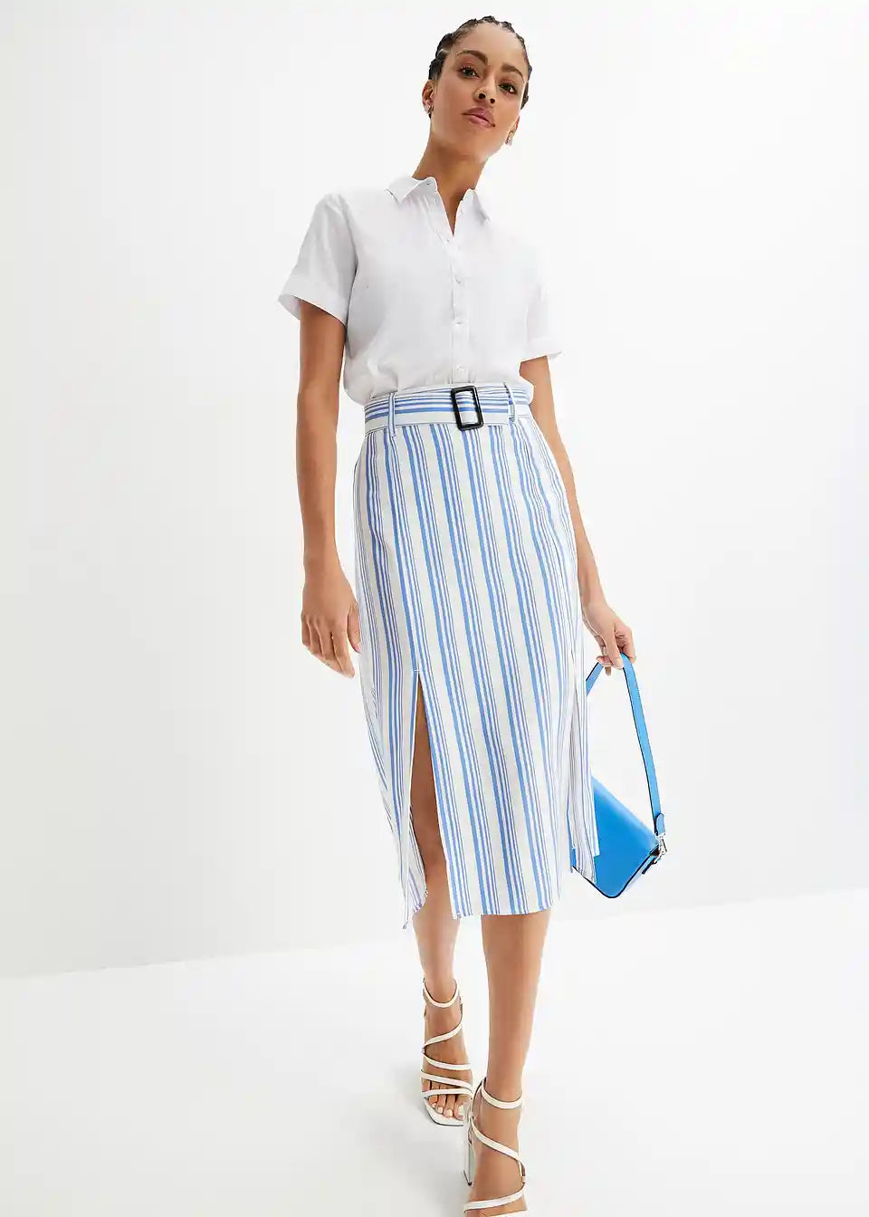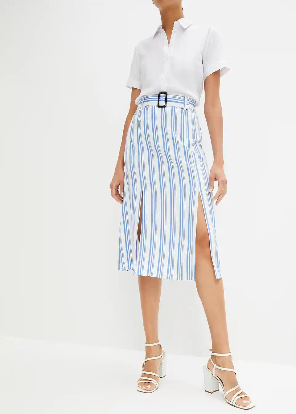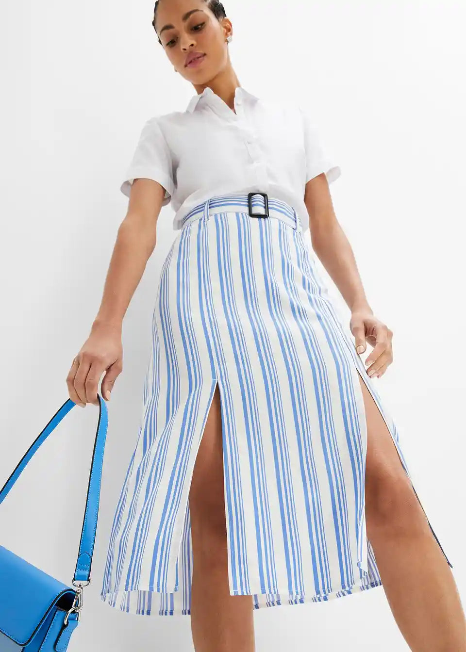 Auffallender gestreifter Midi-Rock mit Gürtel